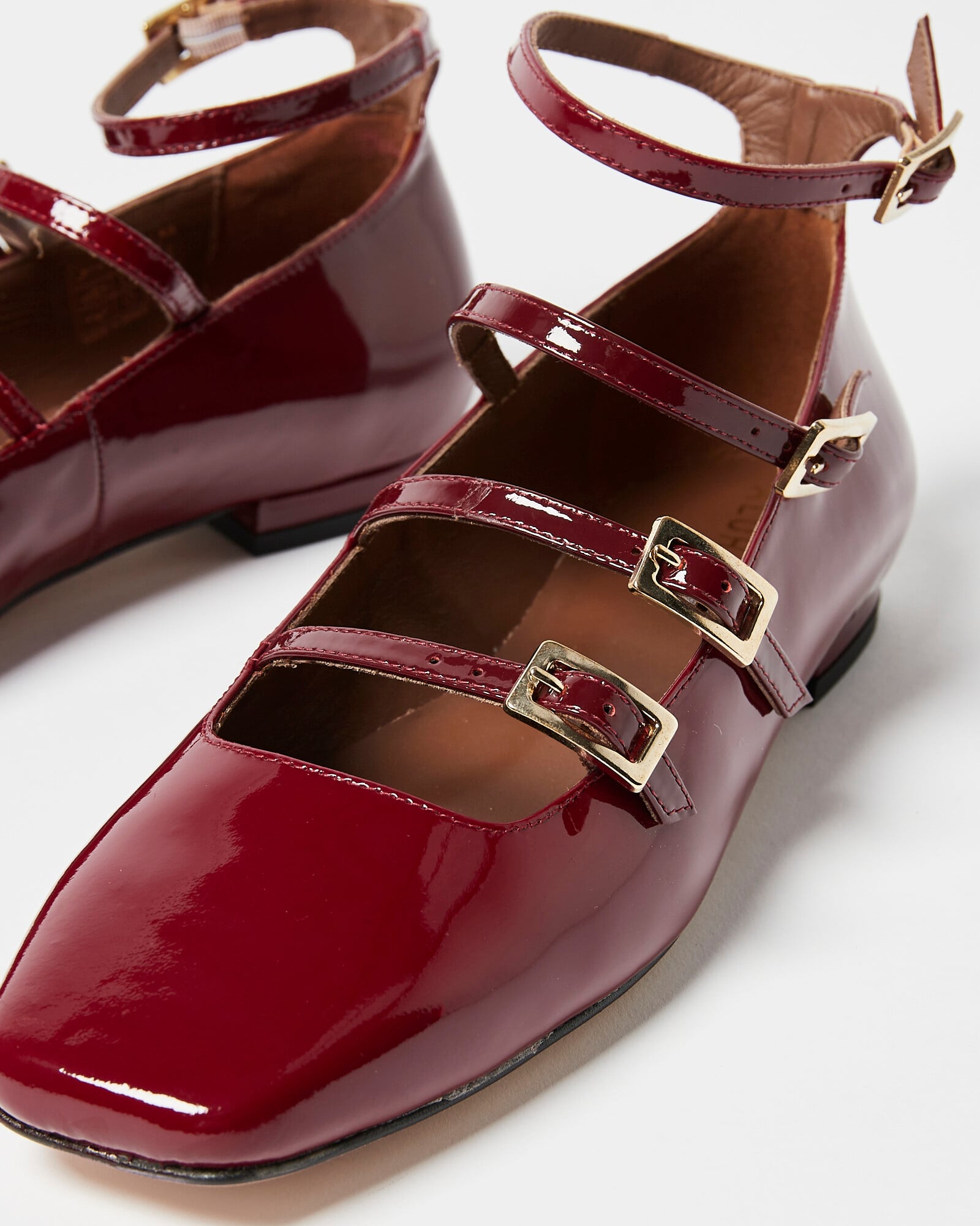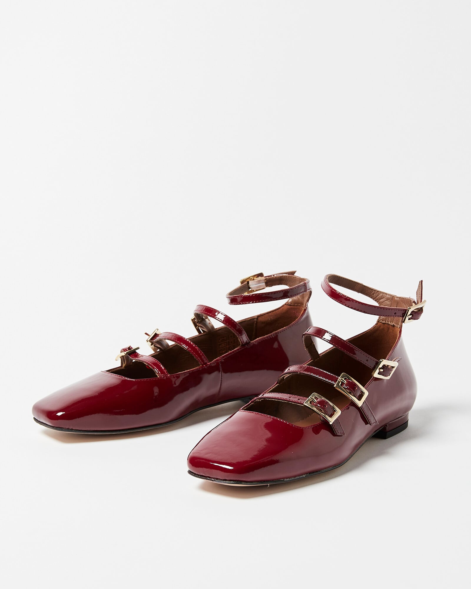 Inspired by the classic Mary Jane shape, these ballet flats have a glossy burgundy leather finish with four parallel straps. All of Alohas' shoes are made using Leather Working Group Certified Leather, meaning low impact dying and less pollution.