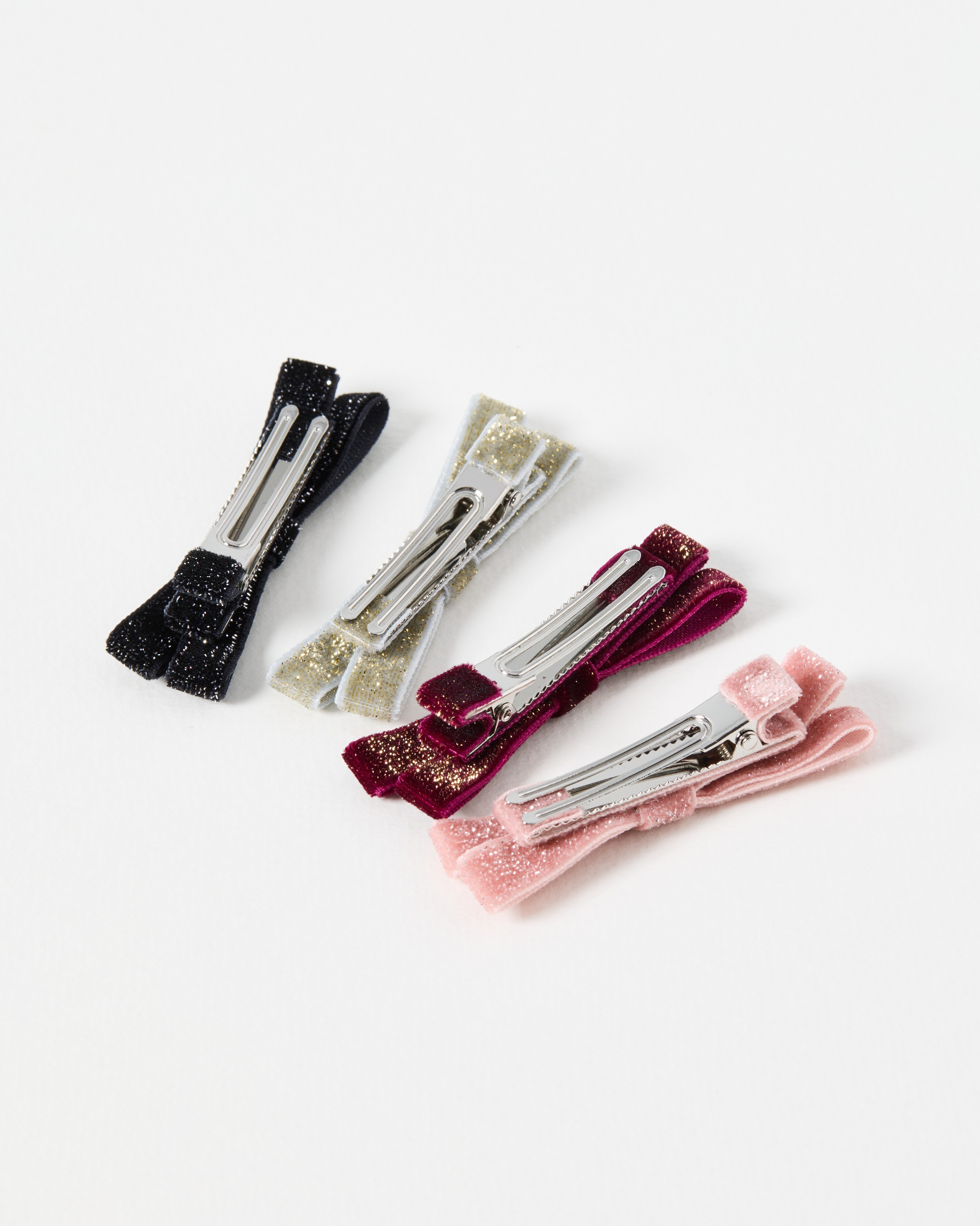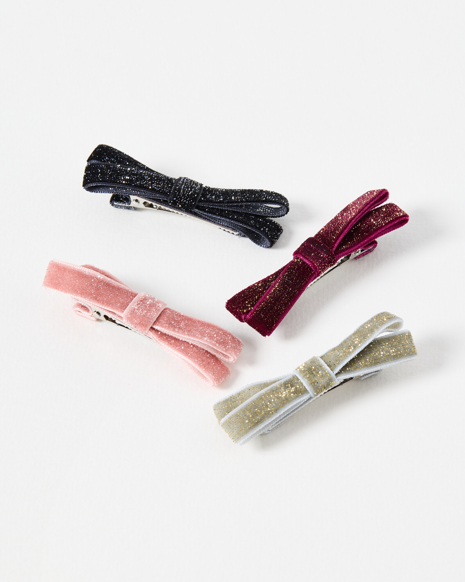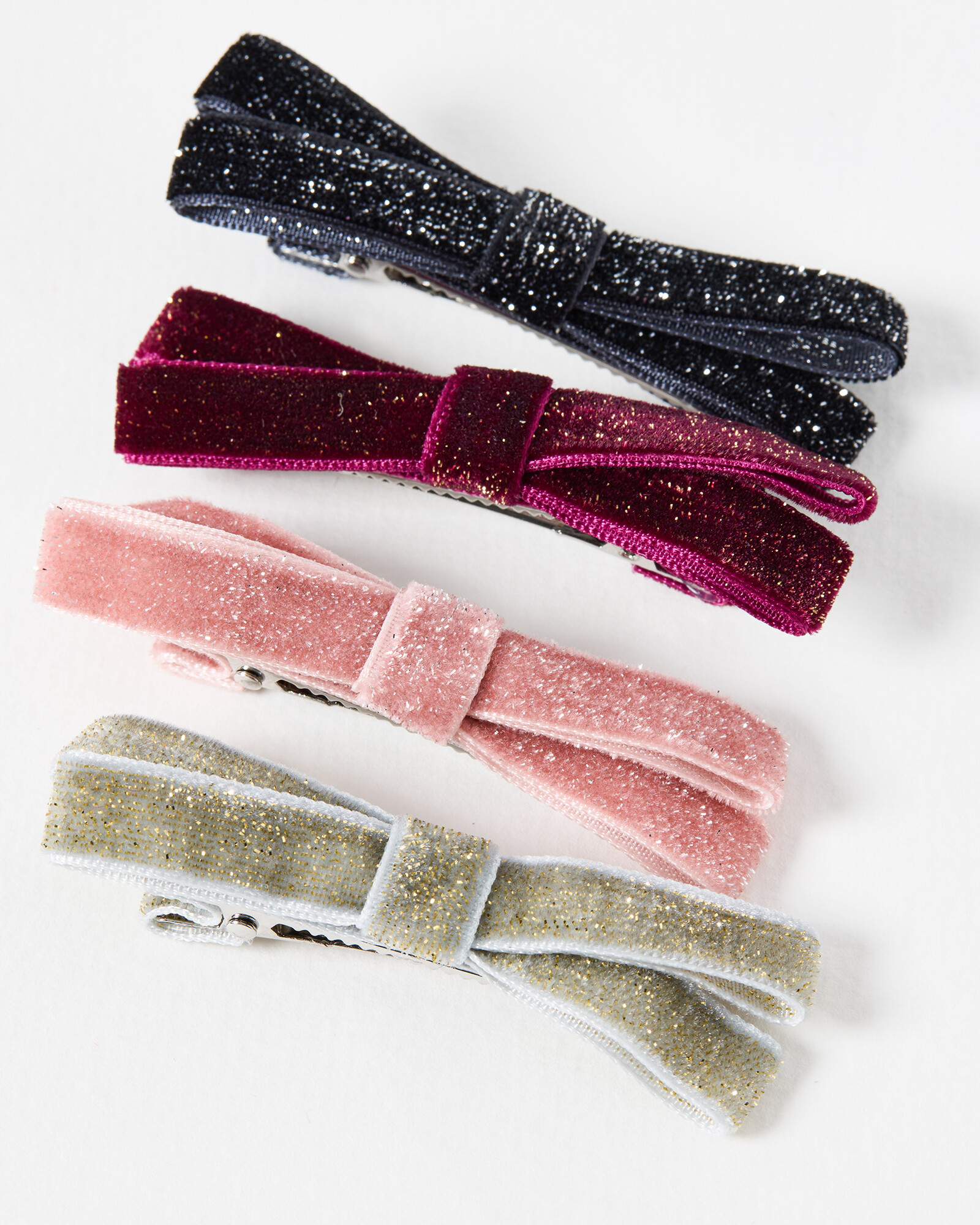 Anya Glitter Velvet Bow Hair Clips Set of Four