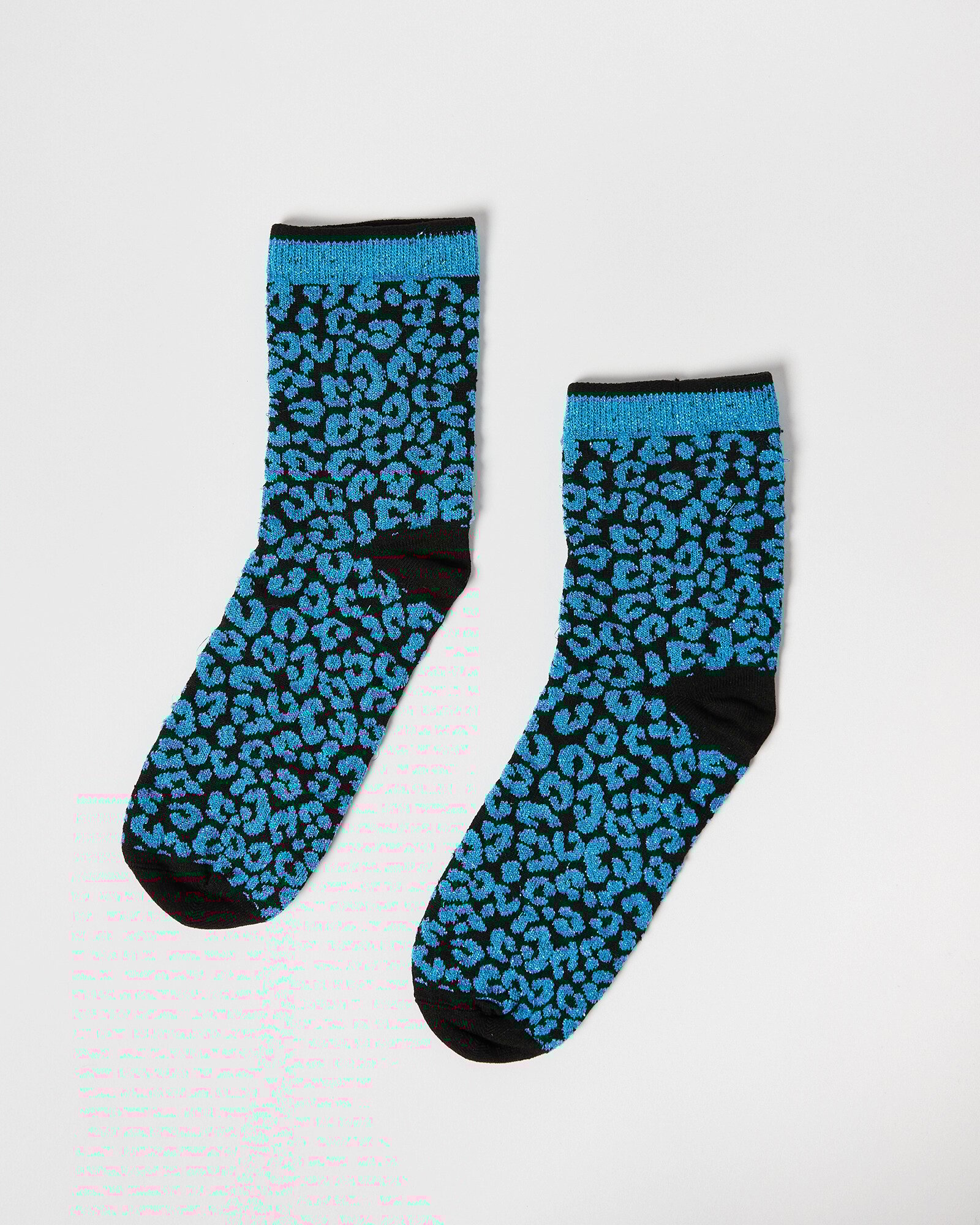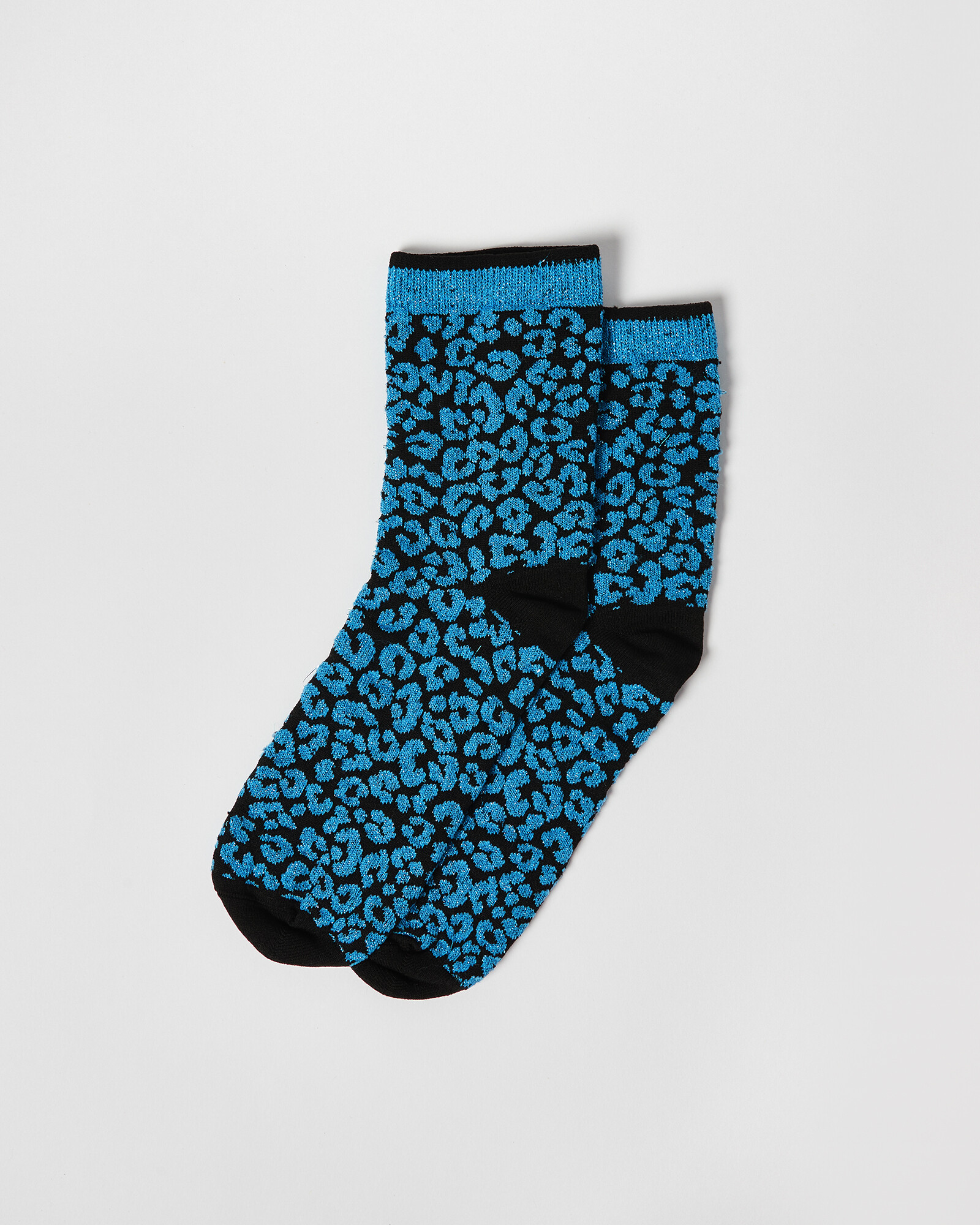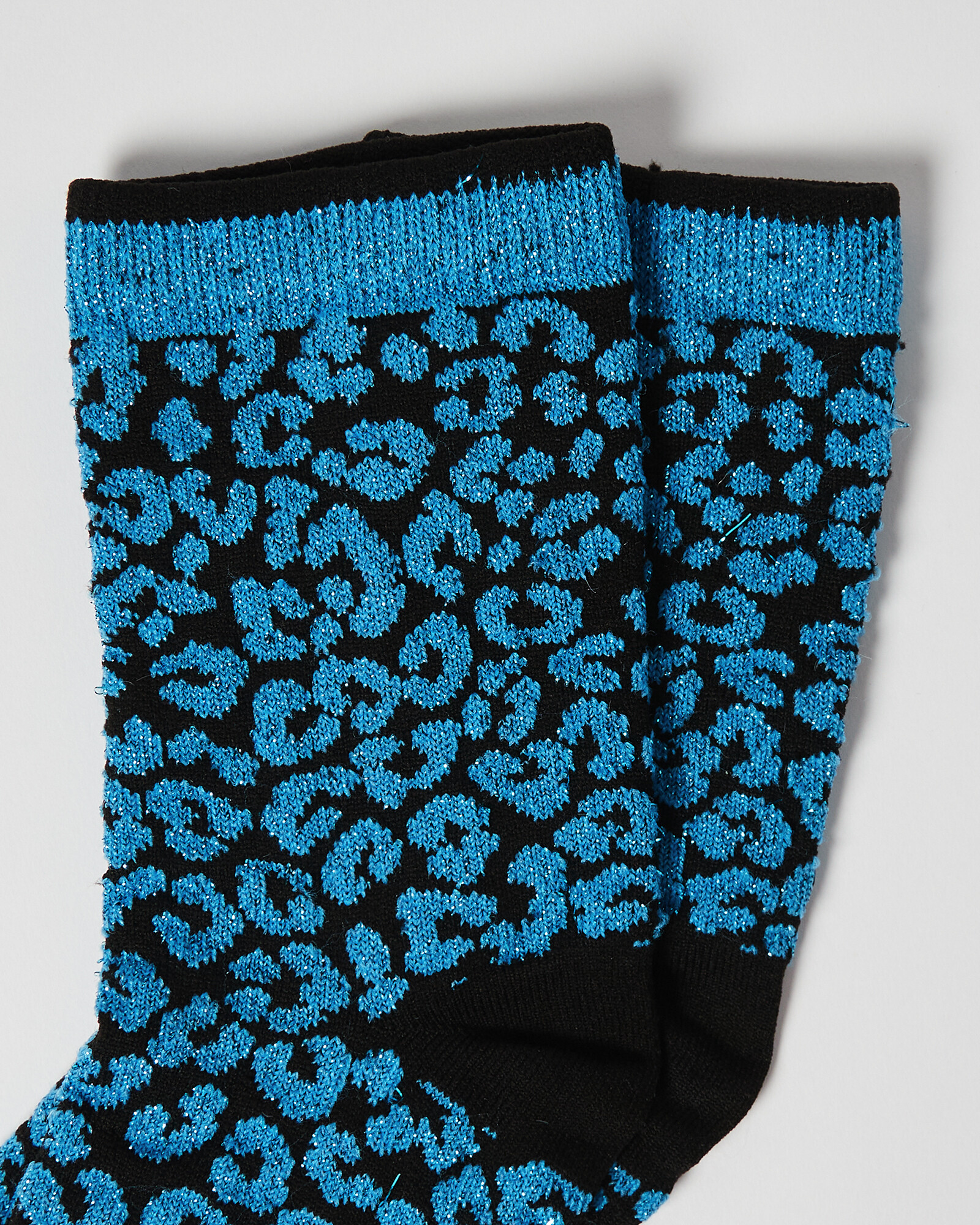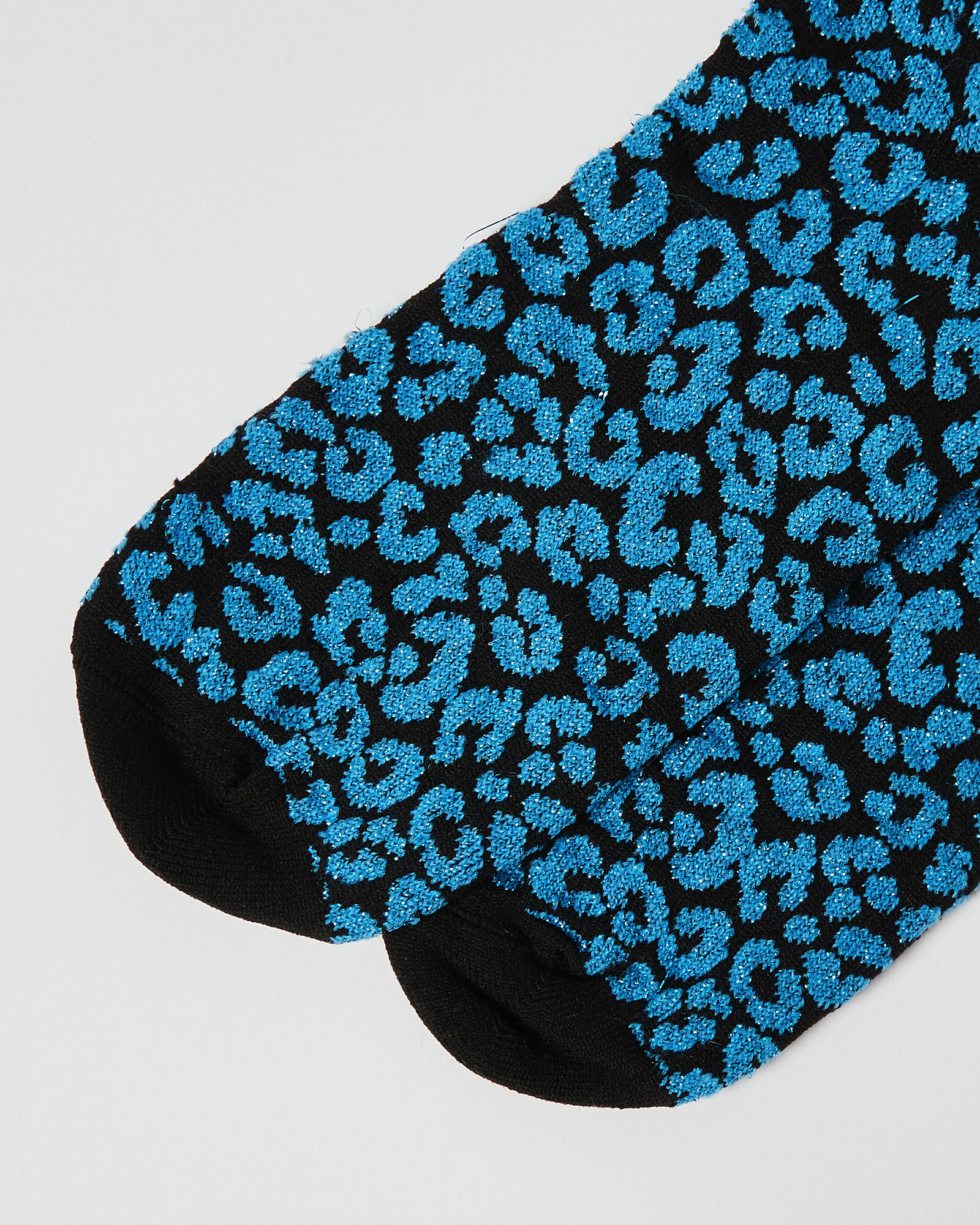 Home | Accessories | Blue Leopard Glitter Ankle Socks