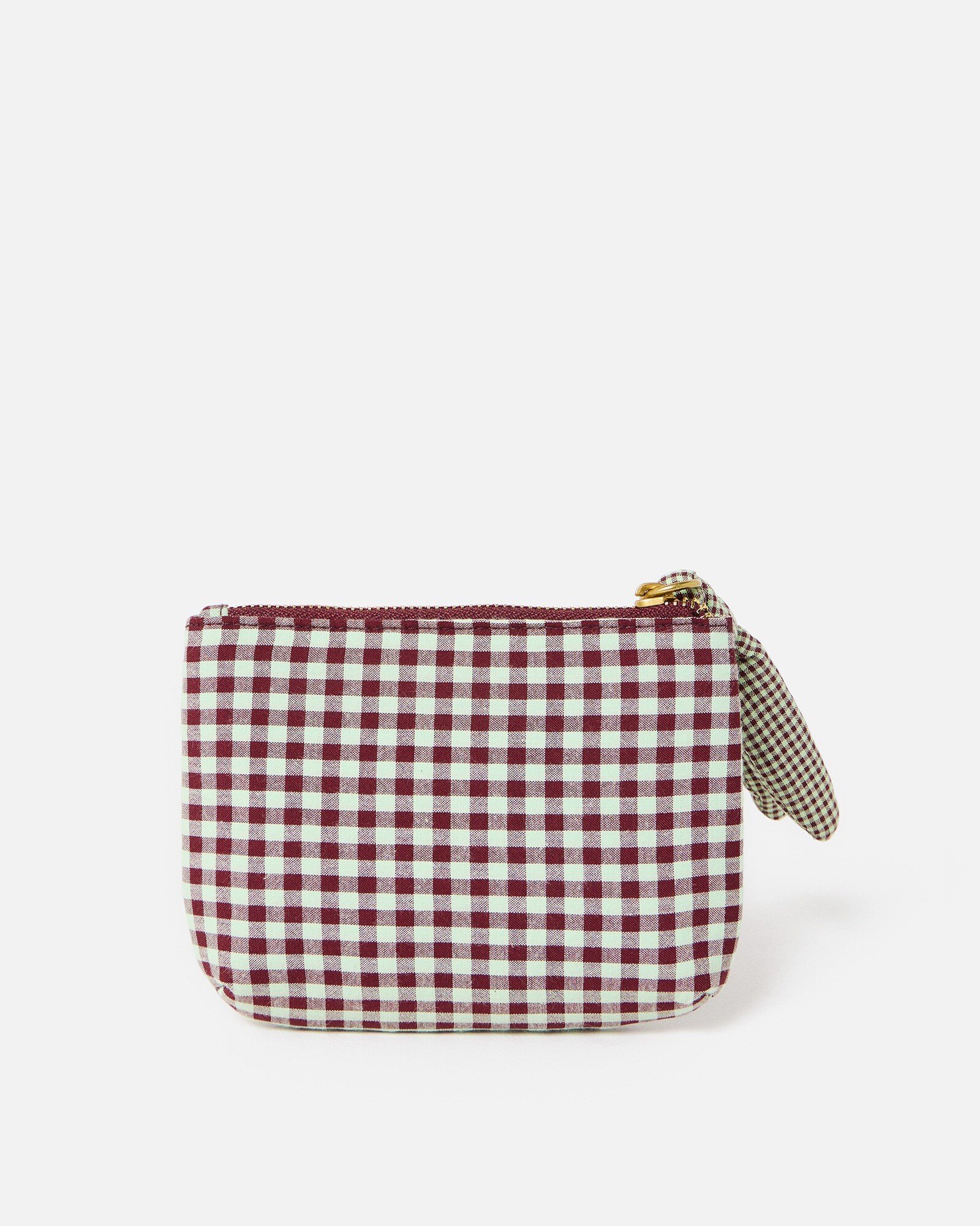 Bree Burgundy & Green Gingham Bow Zipped Pouch