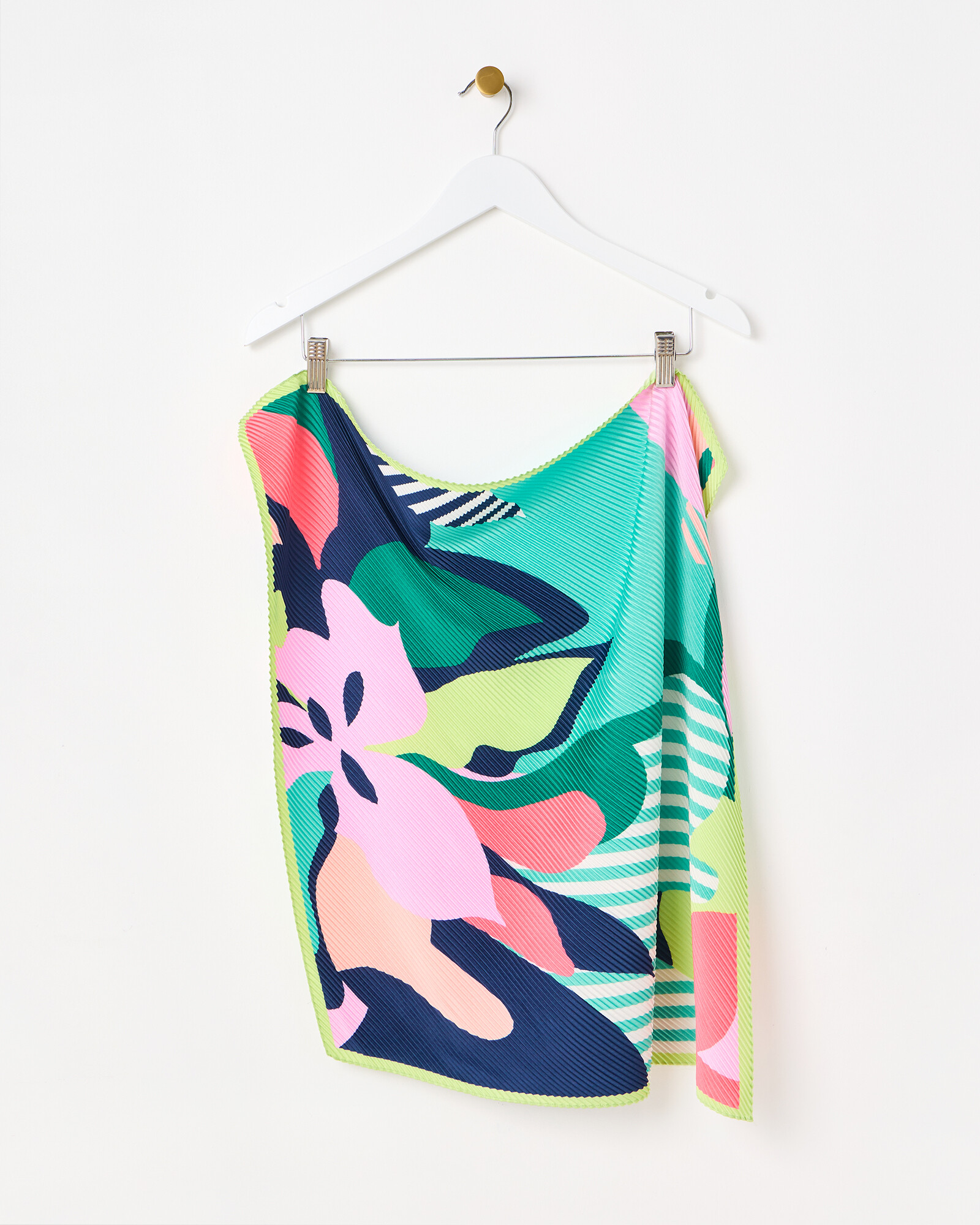 Bright Abstract Floral & Striped Pleated Square Scarf