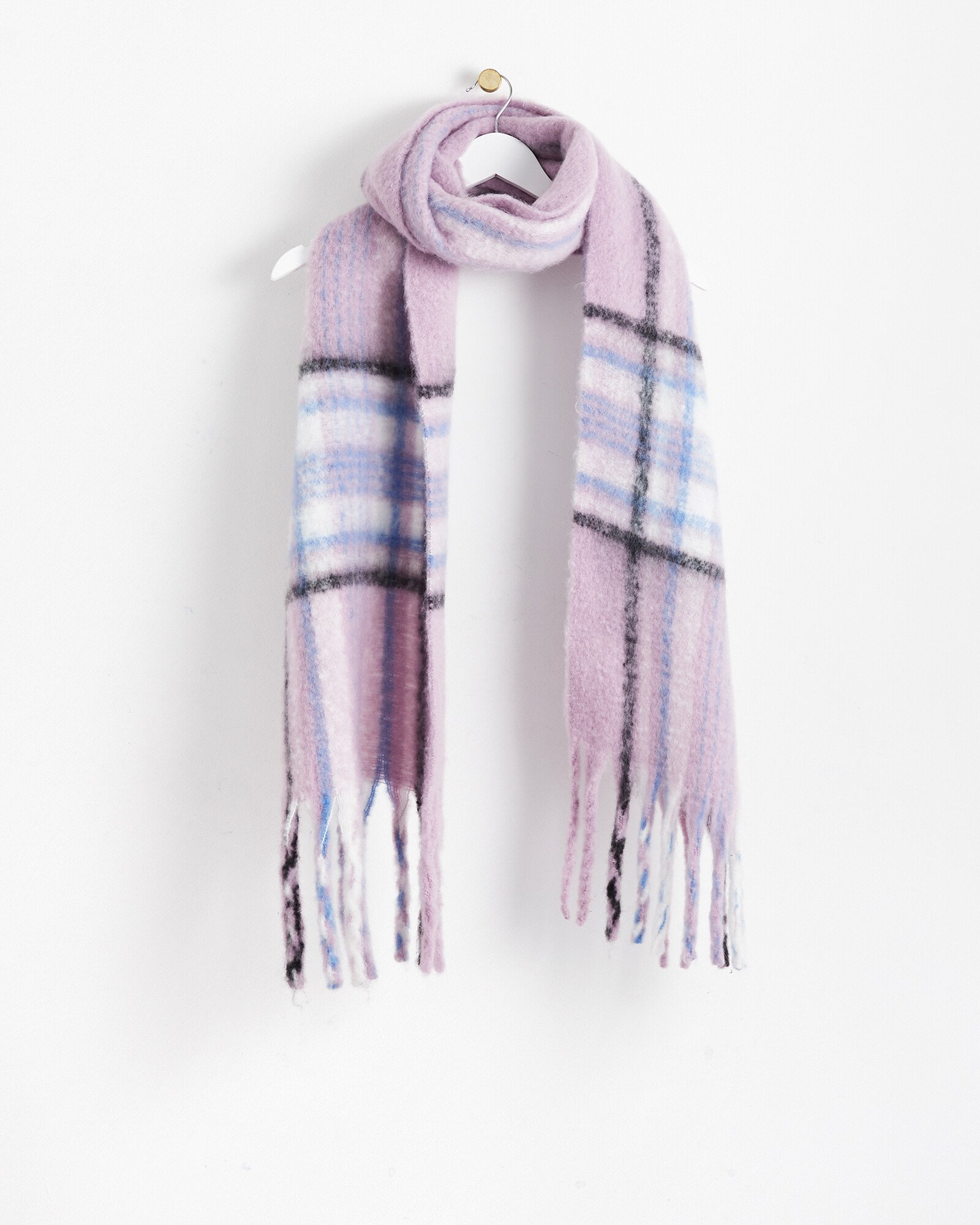 Look lovely in lilac with this check print heavyweight scarf. Made in a brushed fabric, this scarf has chunky tassel edges.