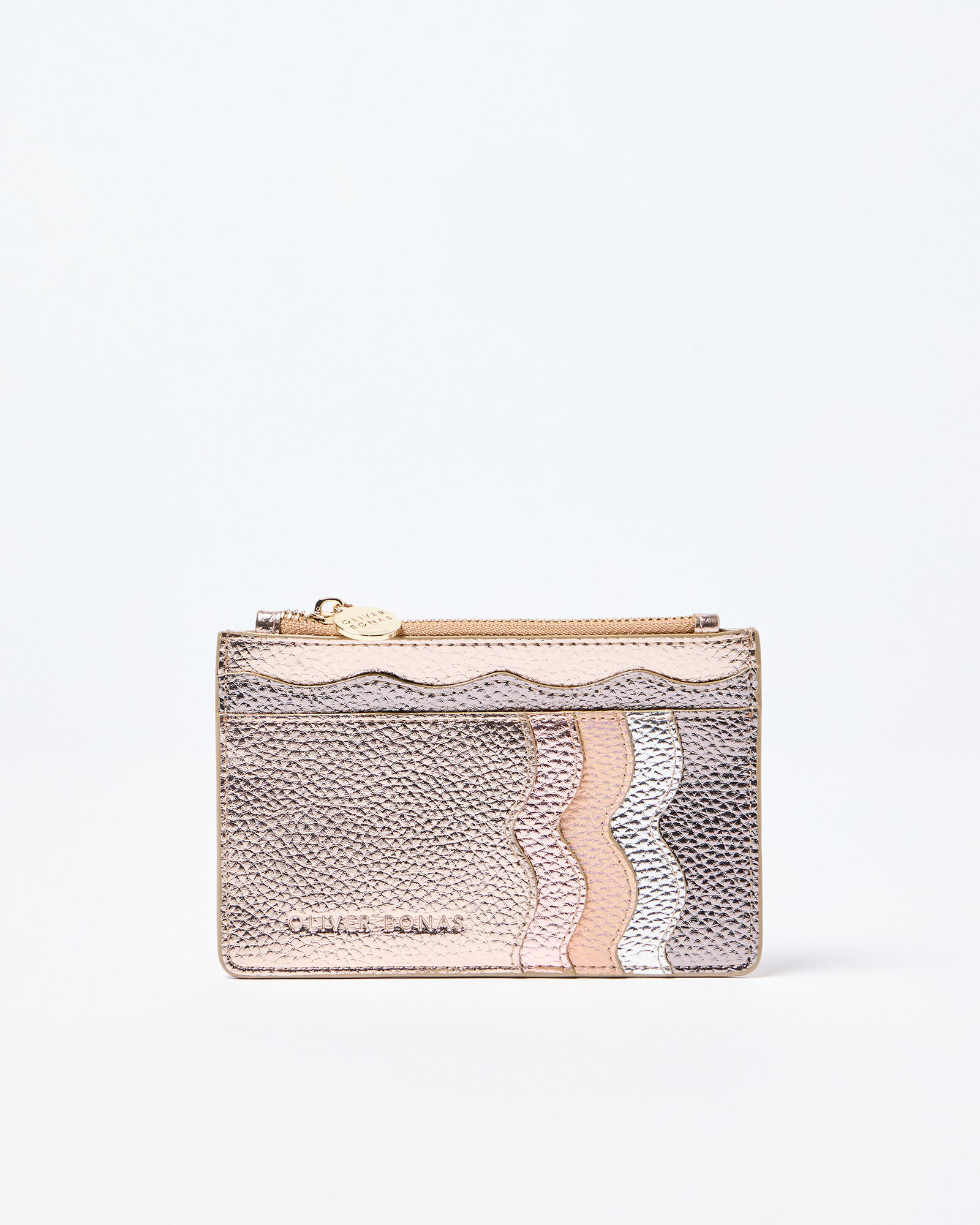 Choose a metallic cardholder with zip up compartment to keep the bare necessities safe whilst adding playful print to your look. Coordinate with matching metallic accessories or go solo for a stand out piece.