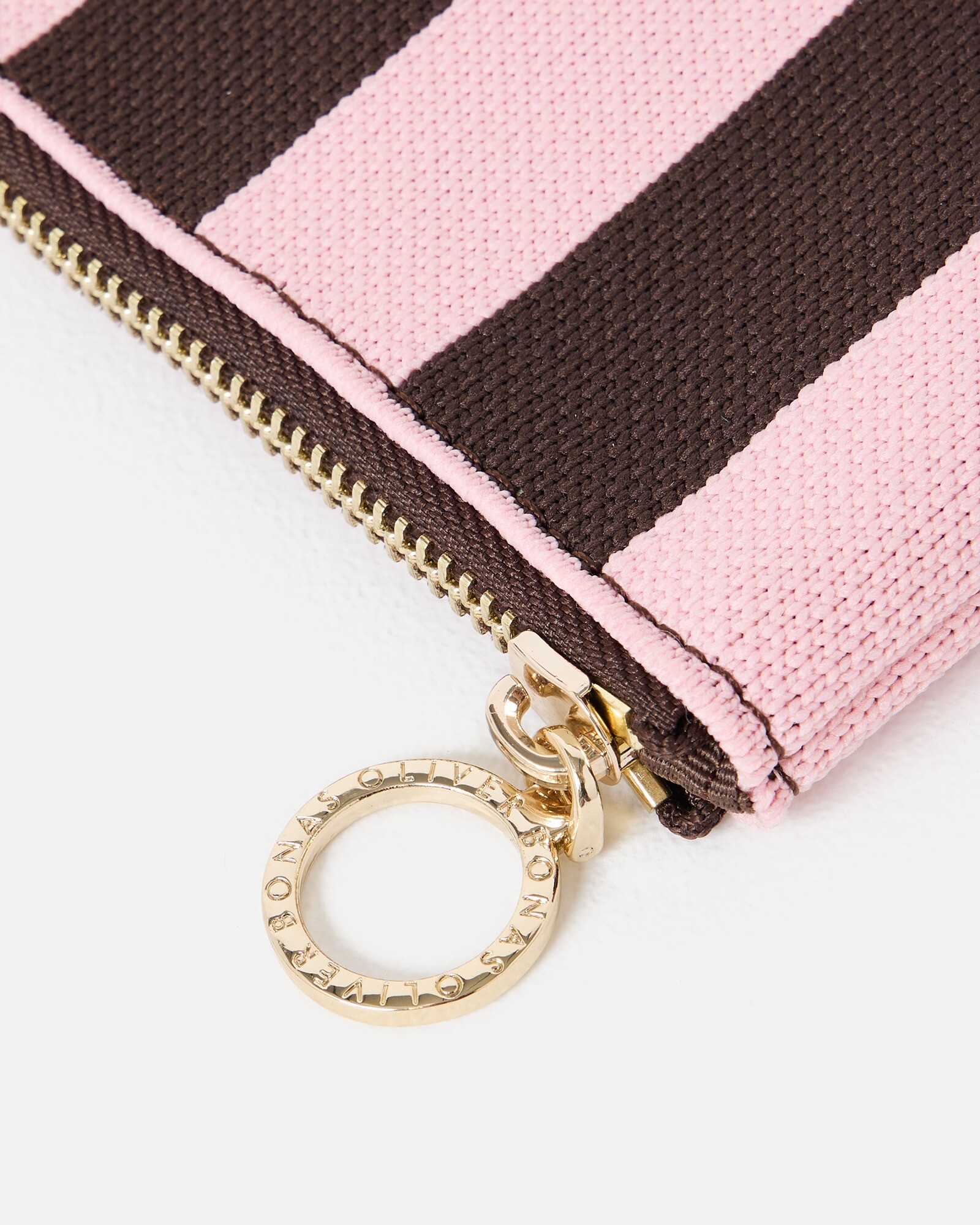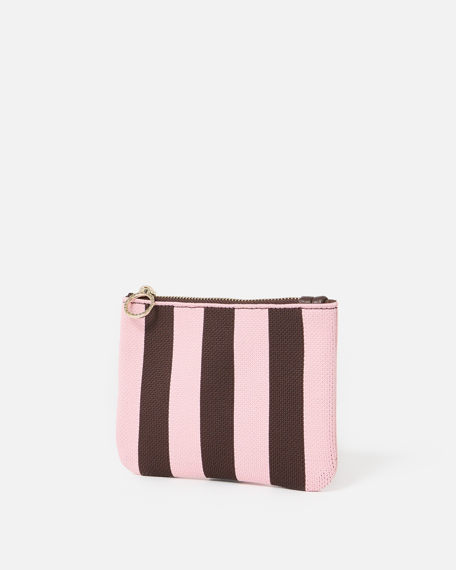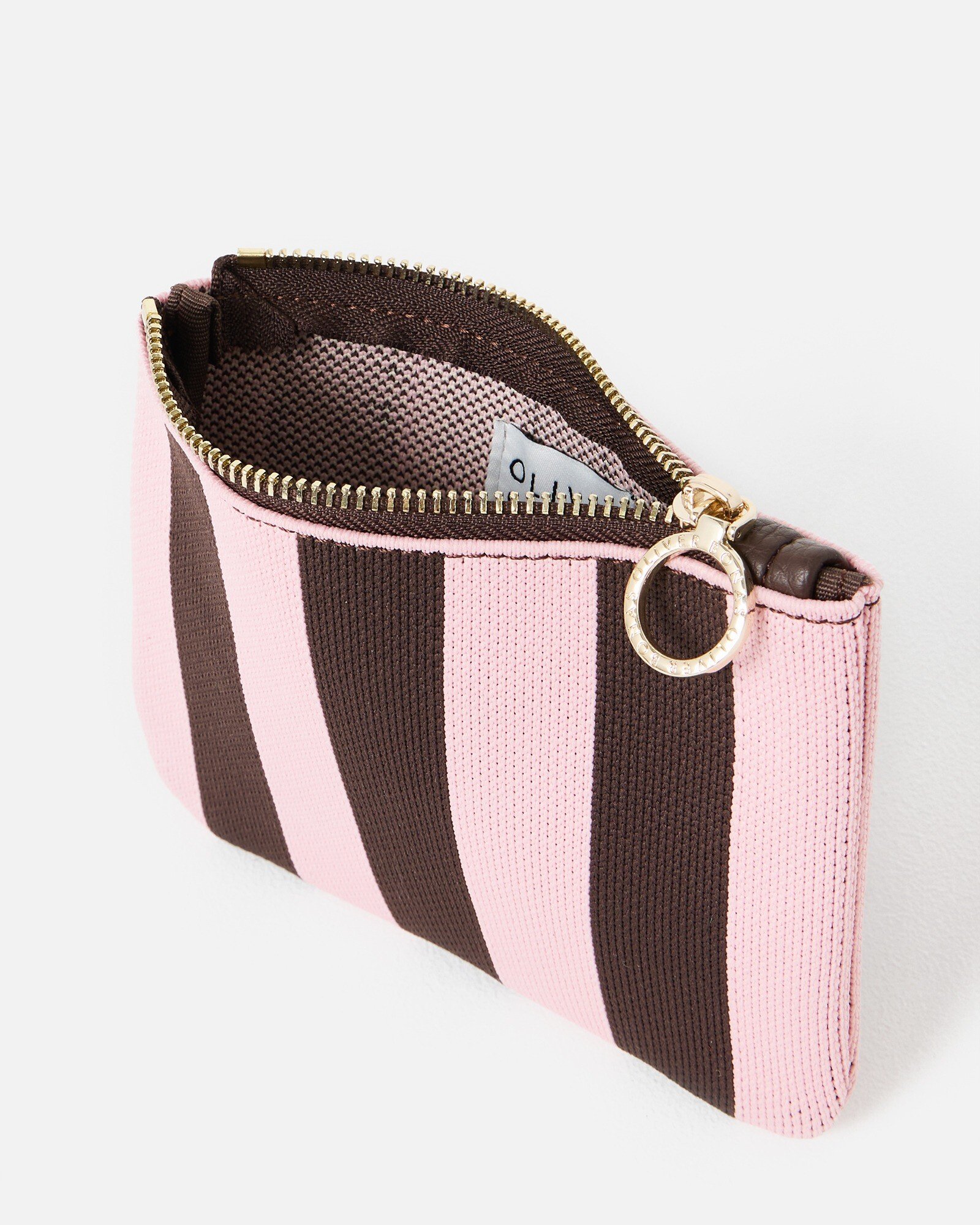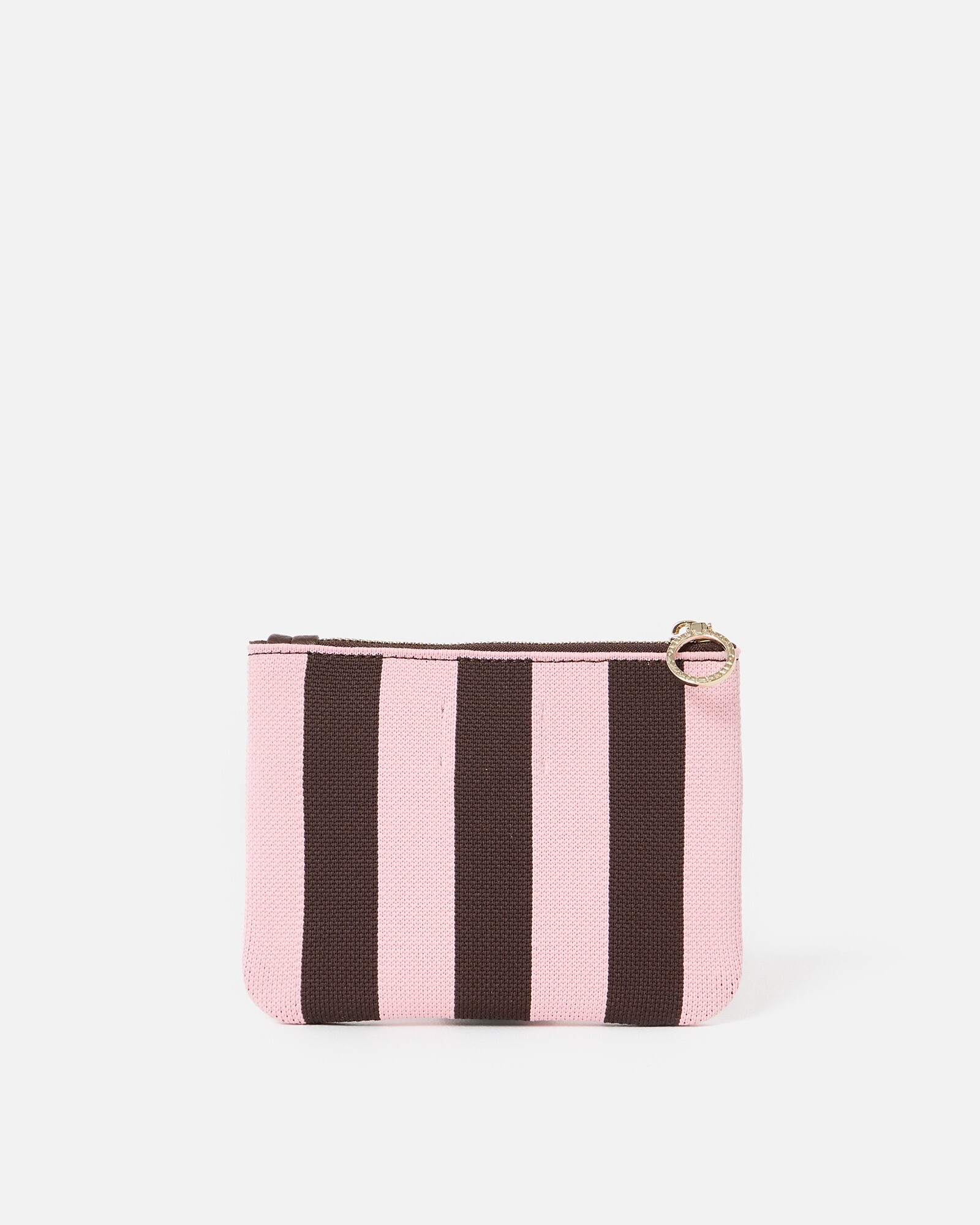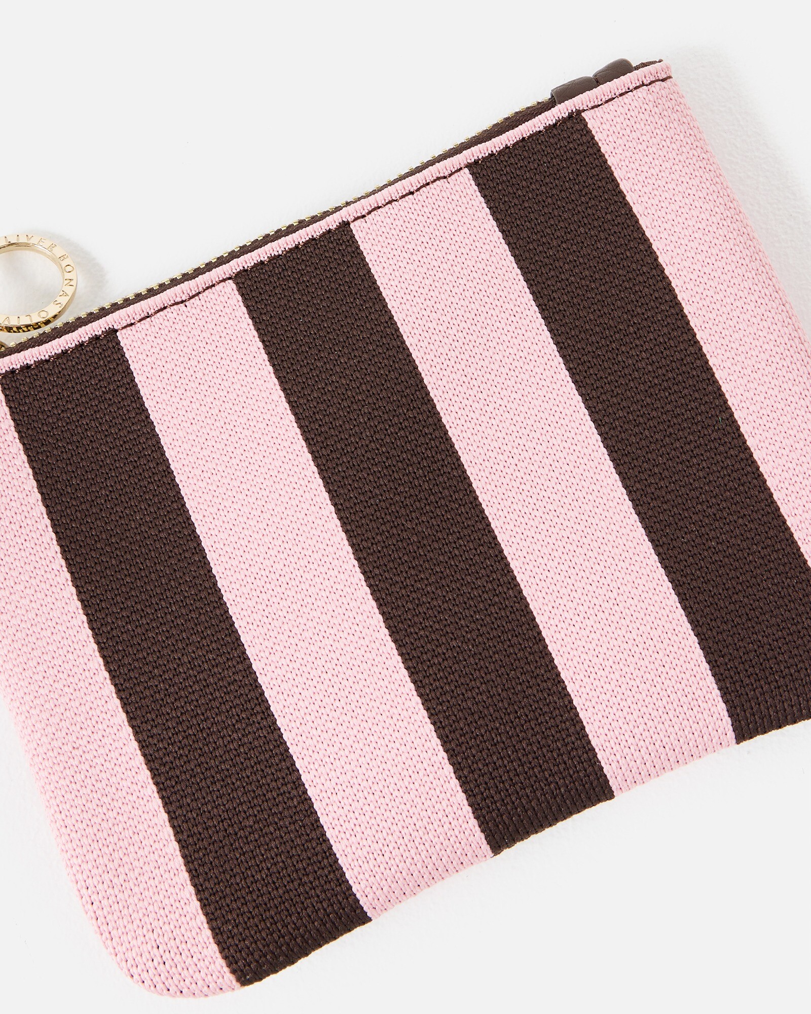 Knitted in bold stripes of candy pink and chocolate brown, our zipped pouch will keep your essentials stylishly secure this summer. Designed in a rectangular shape, we've added a woven logo patch to the interior, a gold tone zip and Oliver Bonas logo charm. We've made it just the right size for keeping your lippy, keys or cash to hand while adding a fun flourish to your daily accessories.