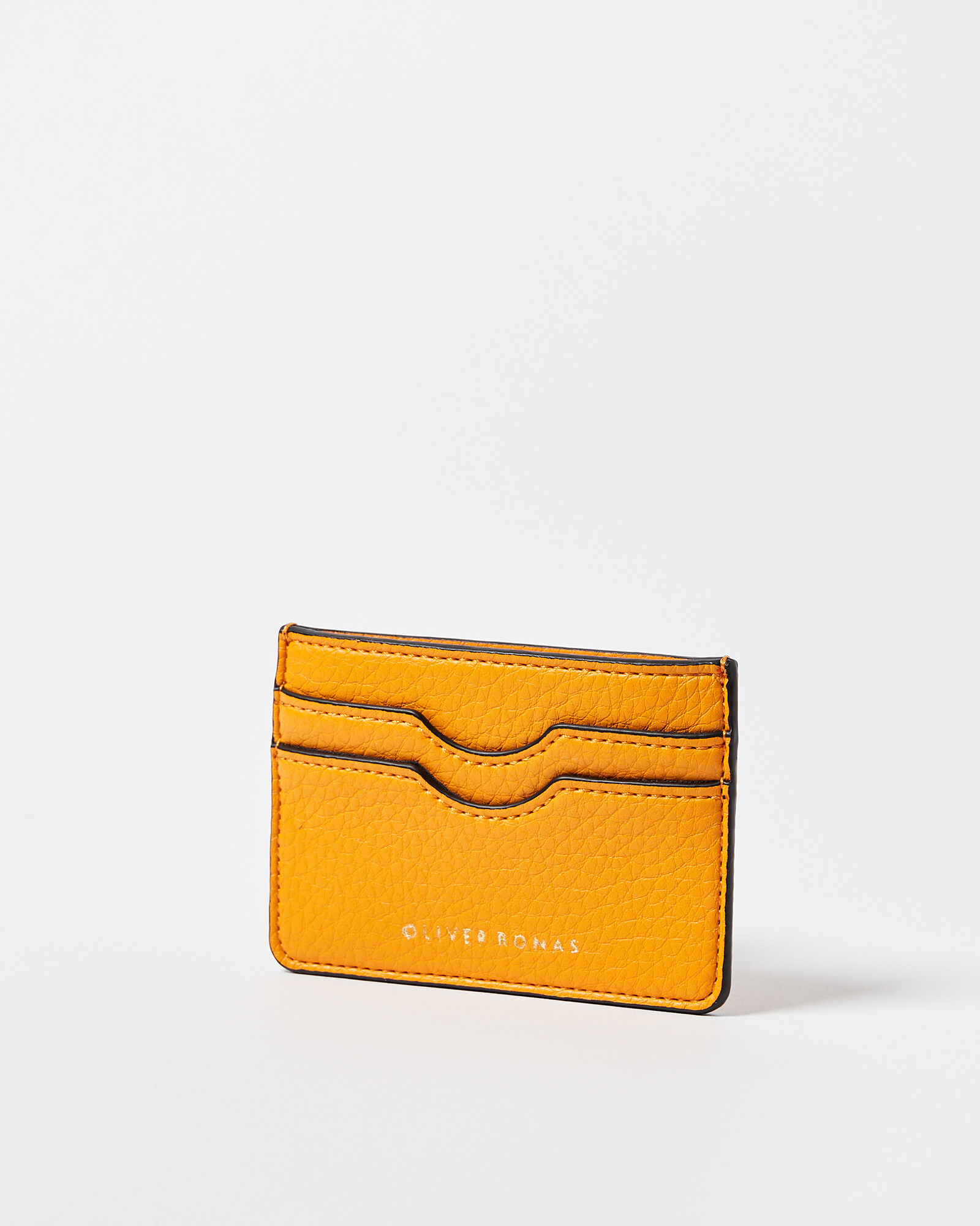 In an ochre yellow with our logo in gold text, this compact card holder has a contrasting black trim.