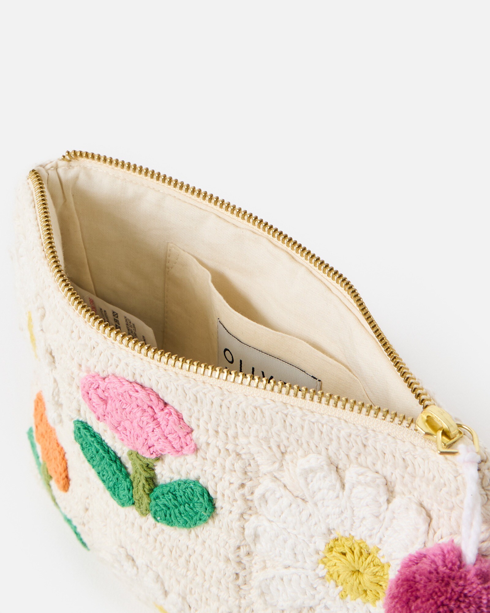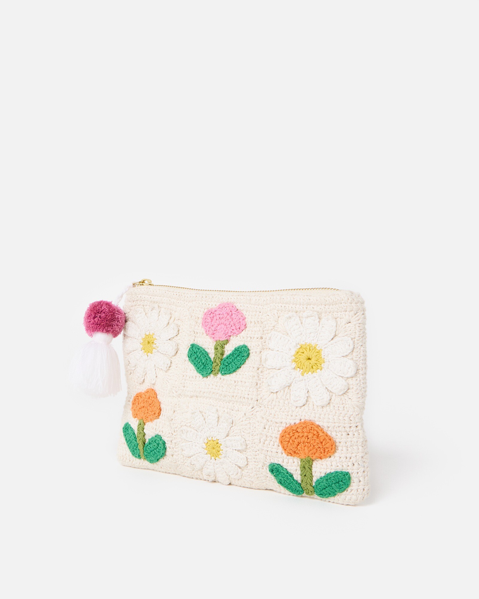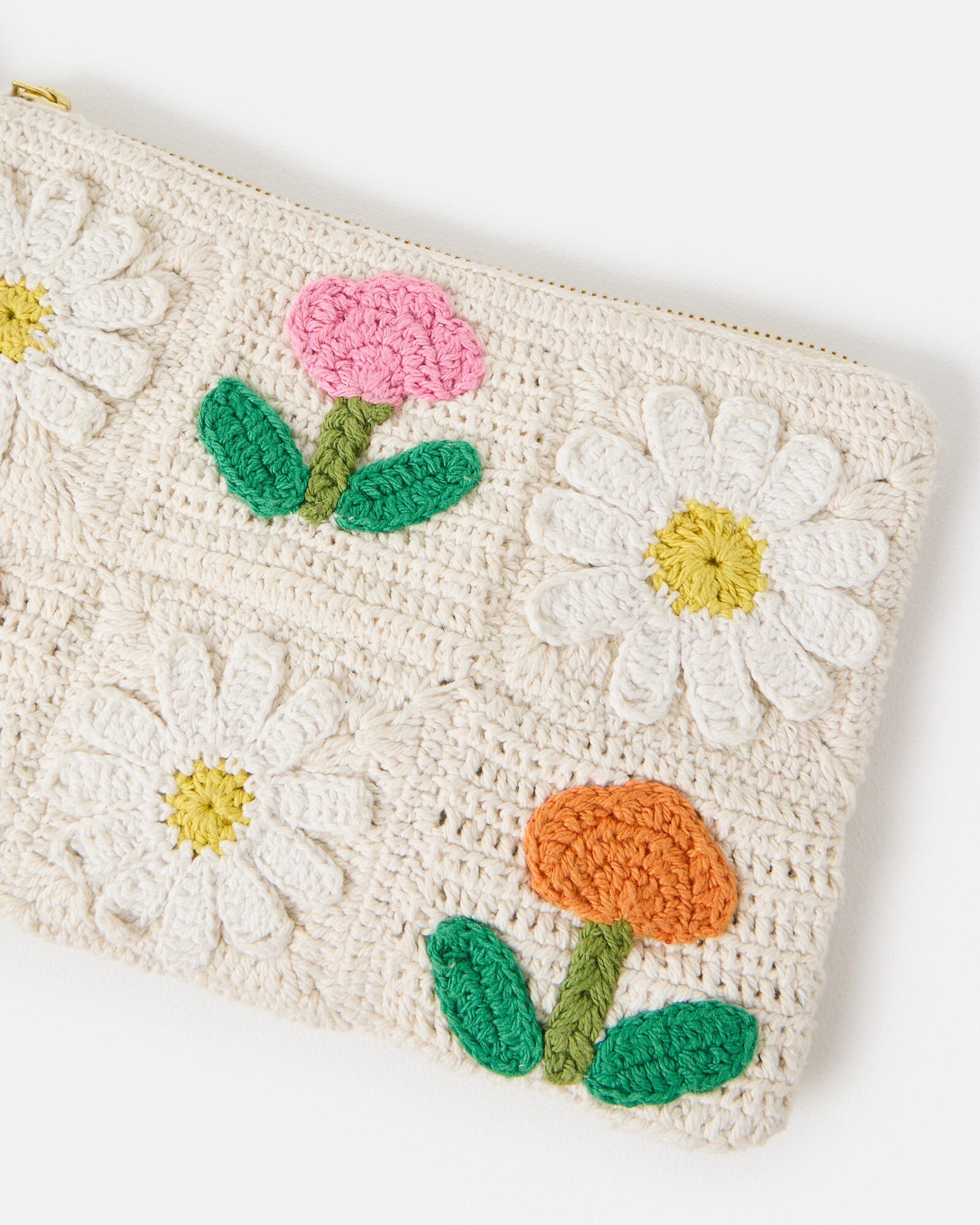 Home | Accessories | Pouches | Cream Crochet Flower Zipped Pouch