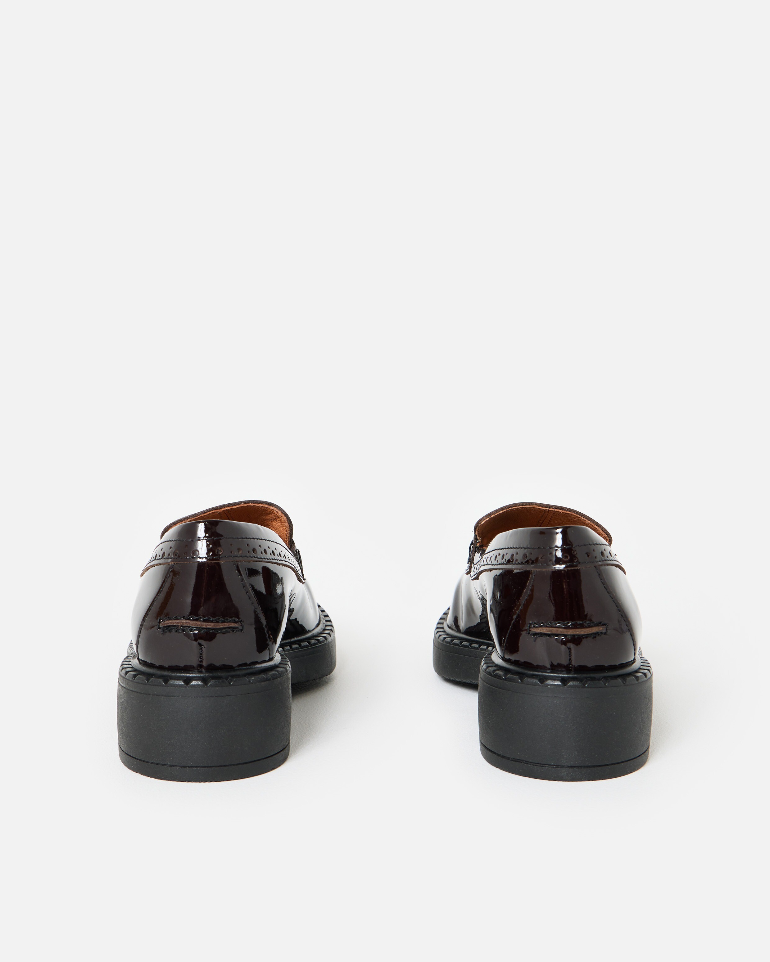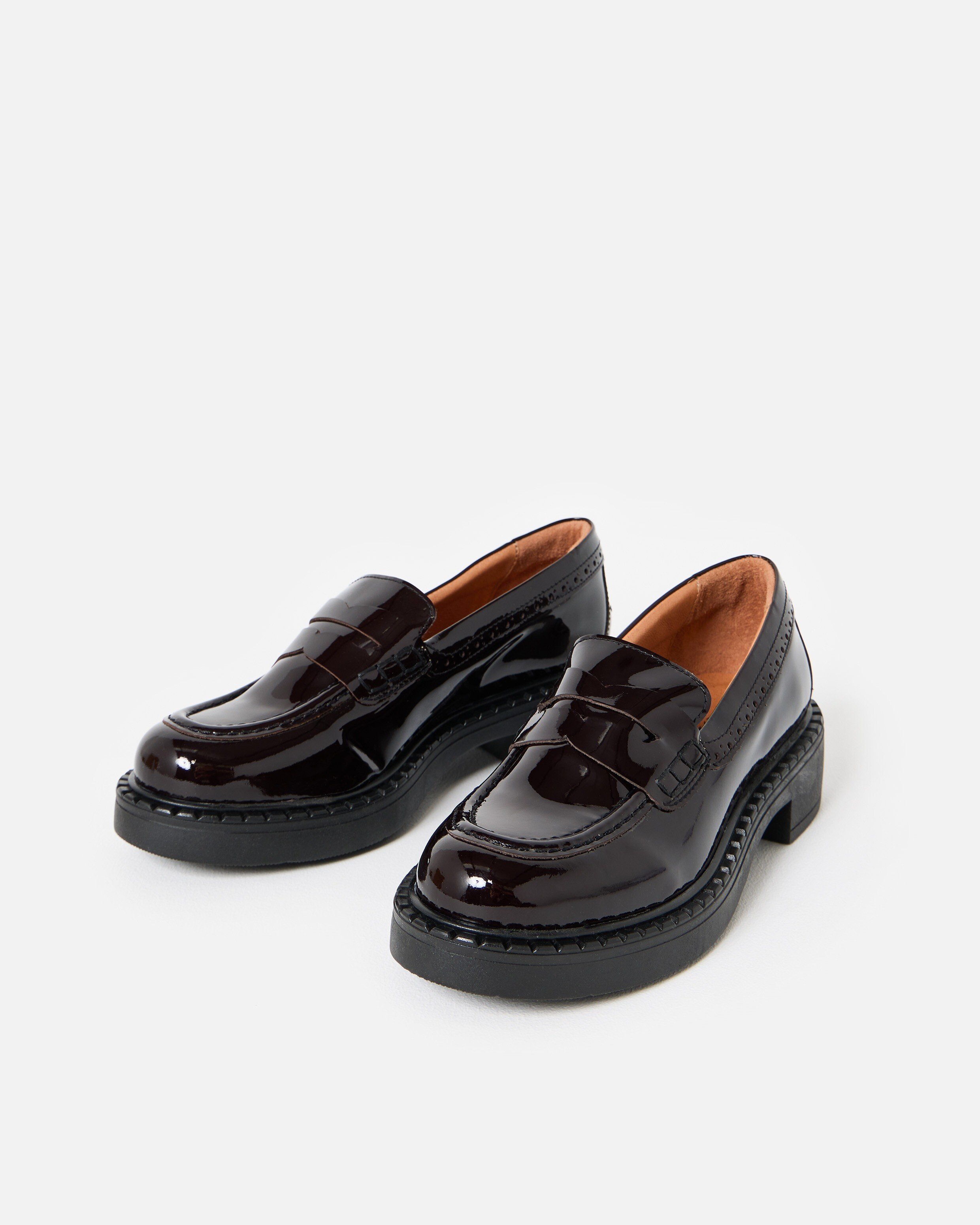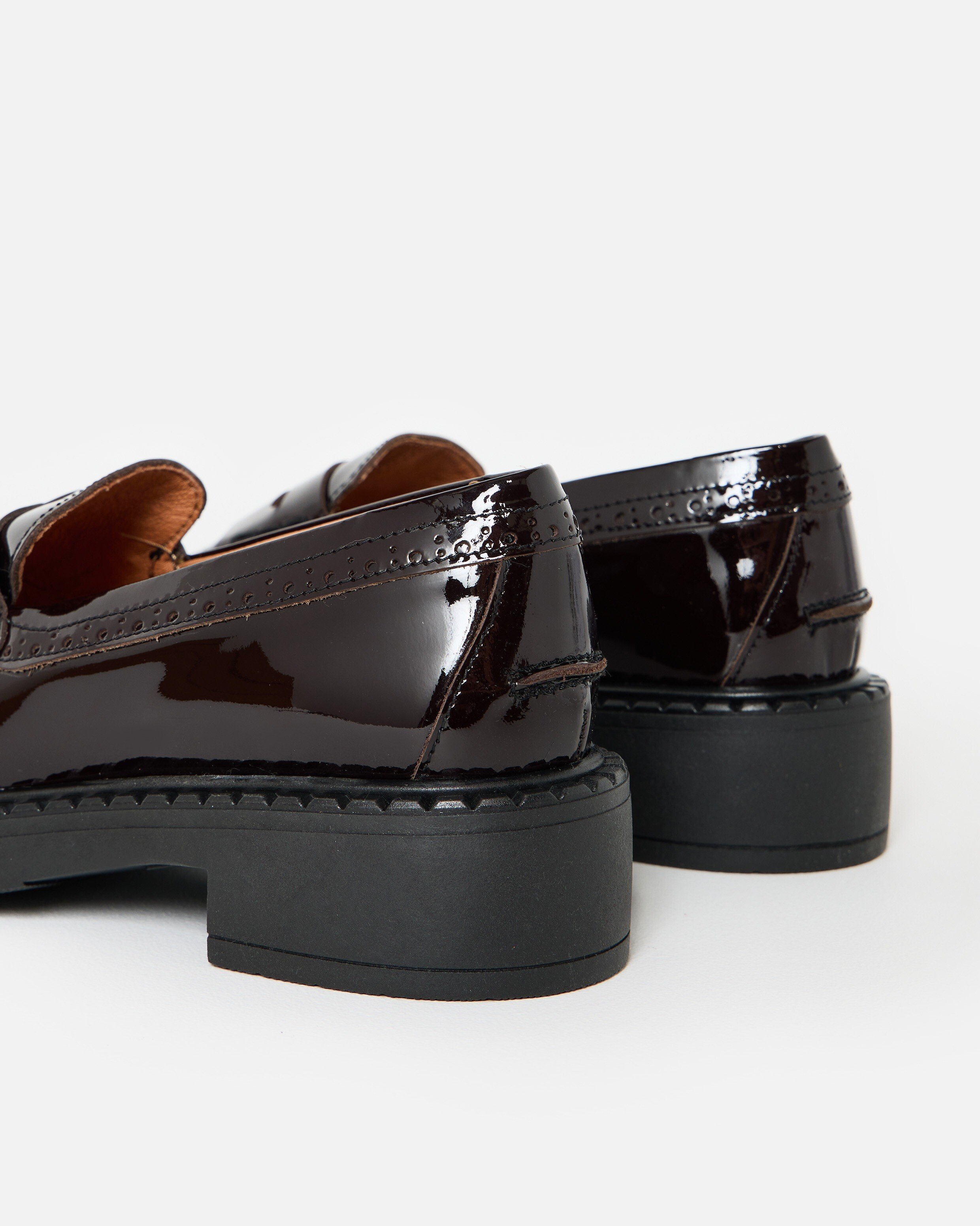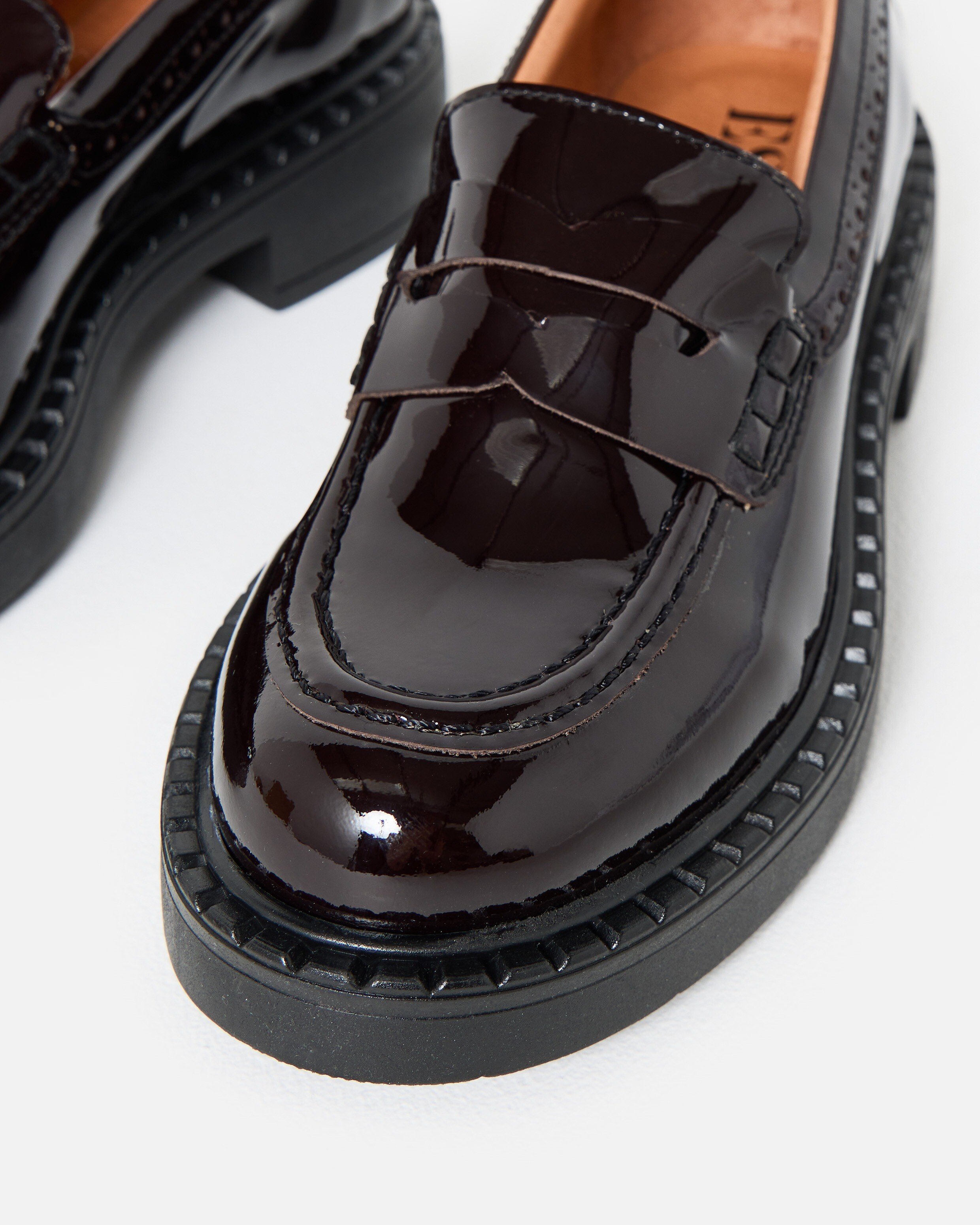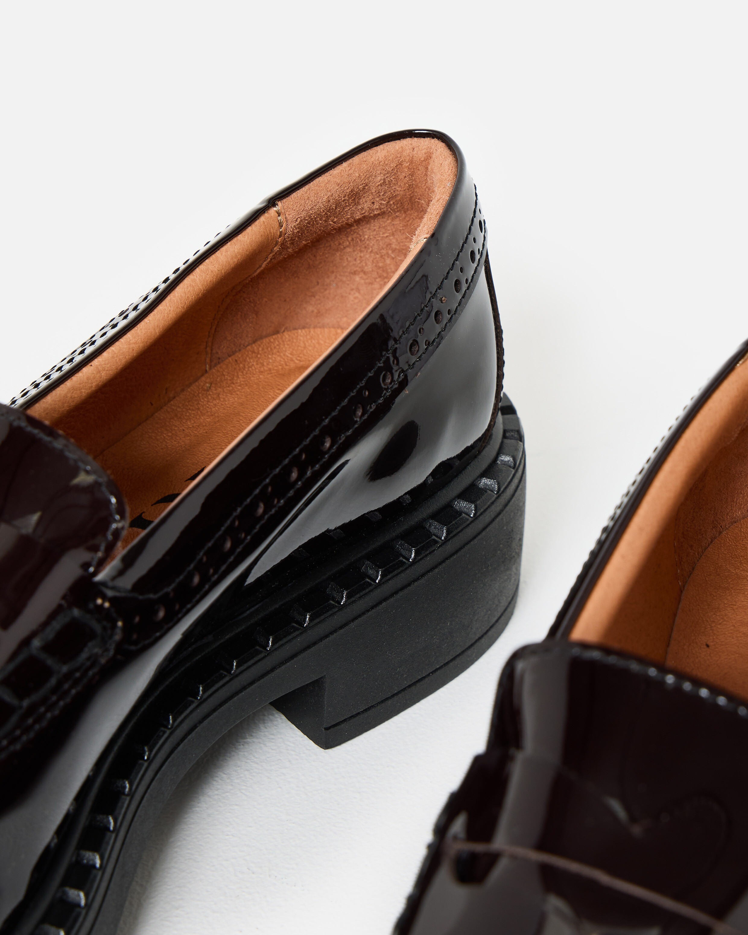 In a rich, deep burgundy, these patent leather loafers from Esska have a sleek, high-shine finish with intricate stitching details along the upper rim. Featuring a black sole with a small heel for a subtle height boost, these traditional loafers have a comfortable slip-on fit, with a soft leather inner and structured finish. Style for a subtle burgundy tint alongside your workwear and transitional smart outfits for a bold, yet comfortable look.