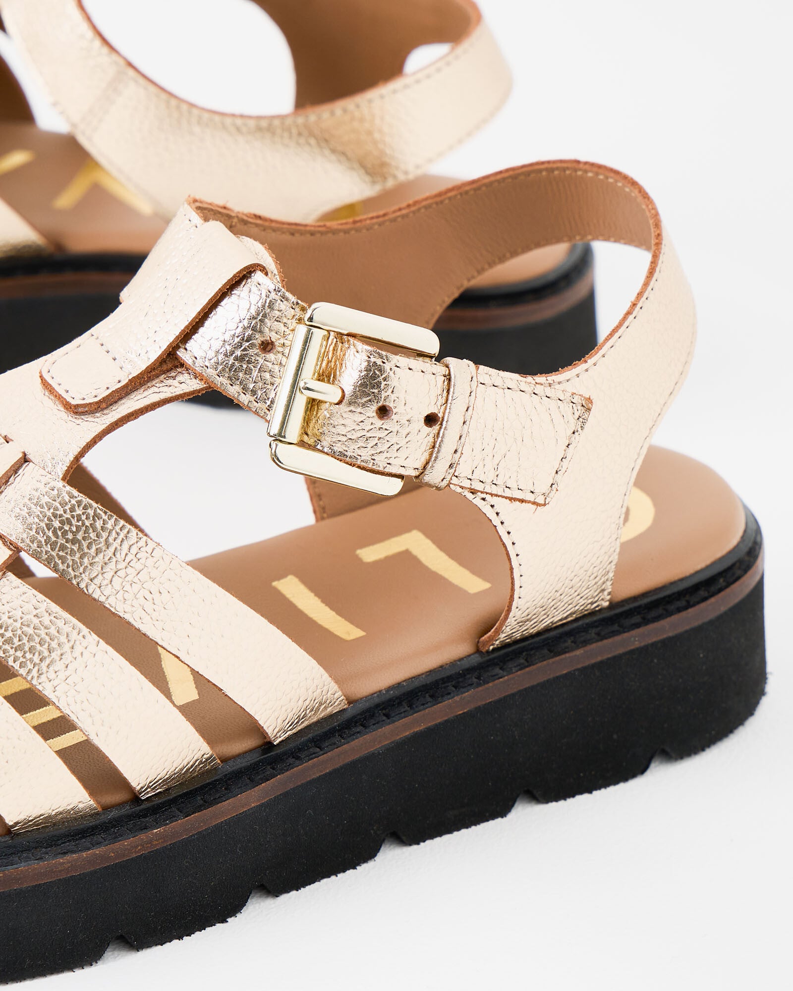 Fisherman Gold Metallic Strappy Leather Sandals