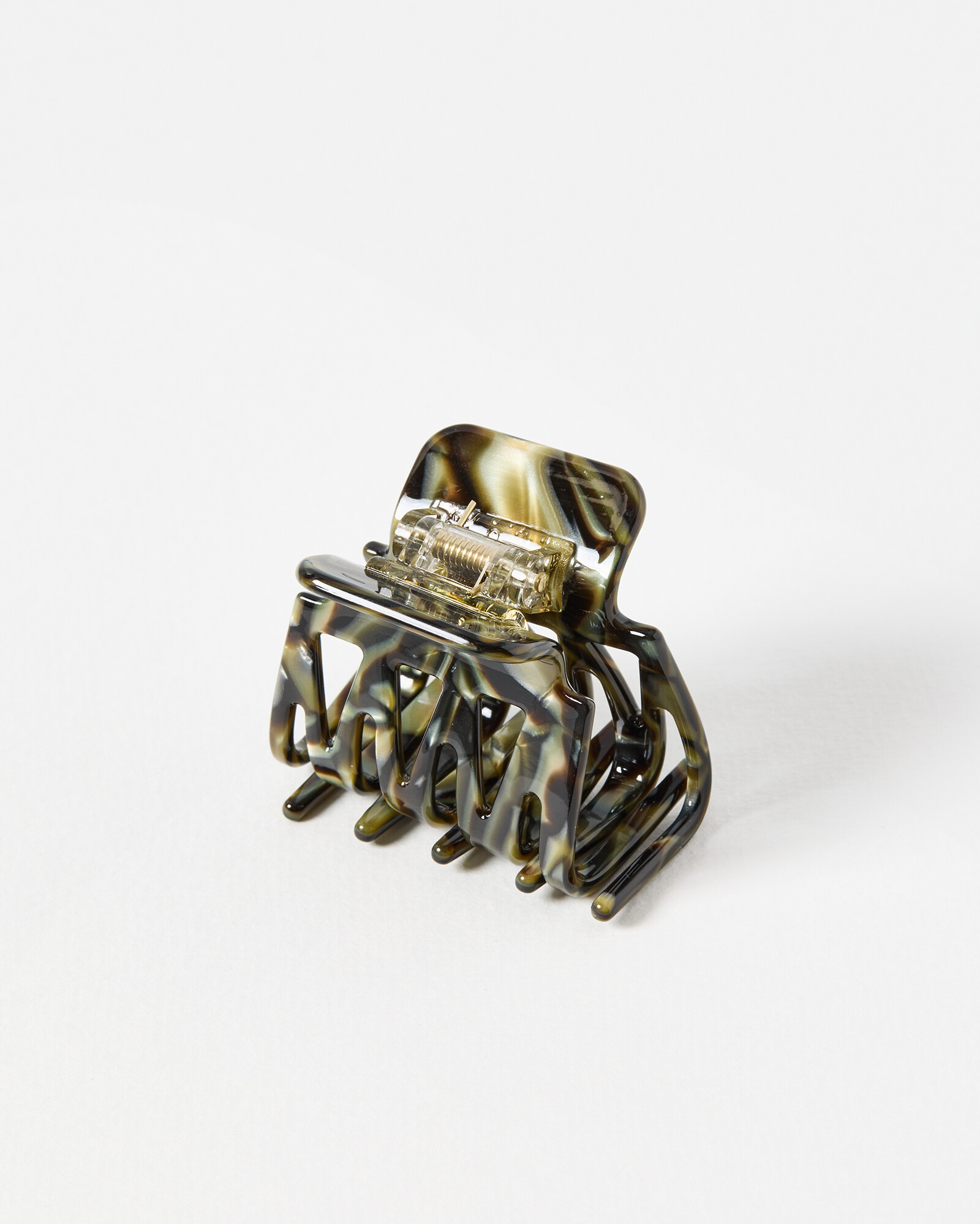 Green resin claw clip with a tonal swirl pattern and cut-out design.