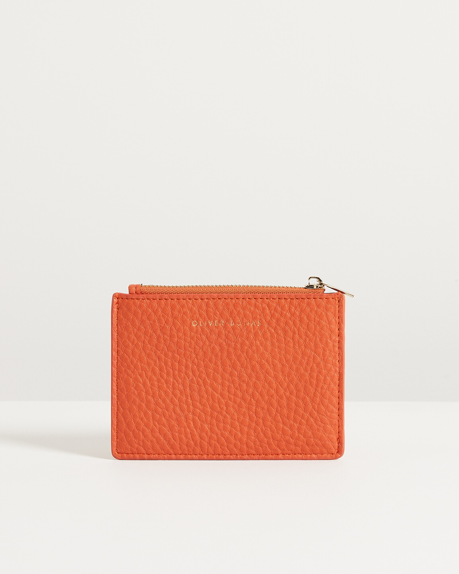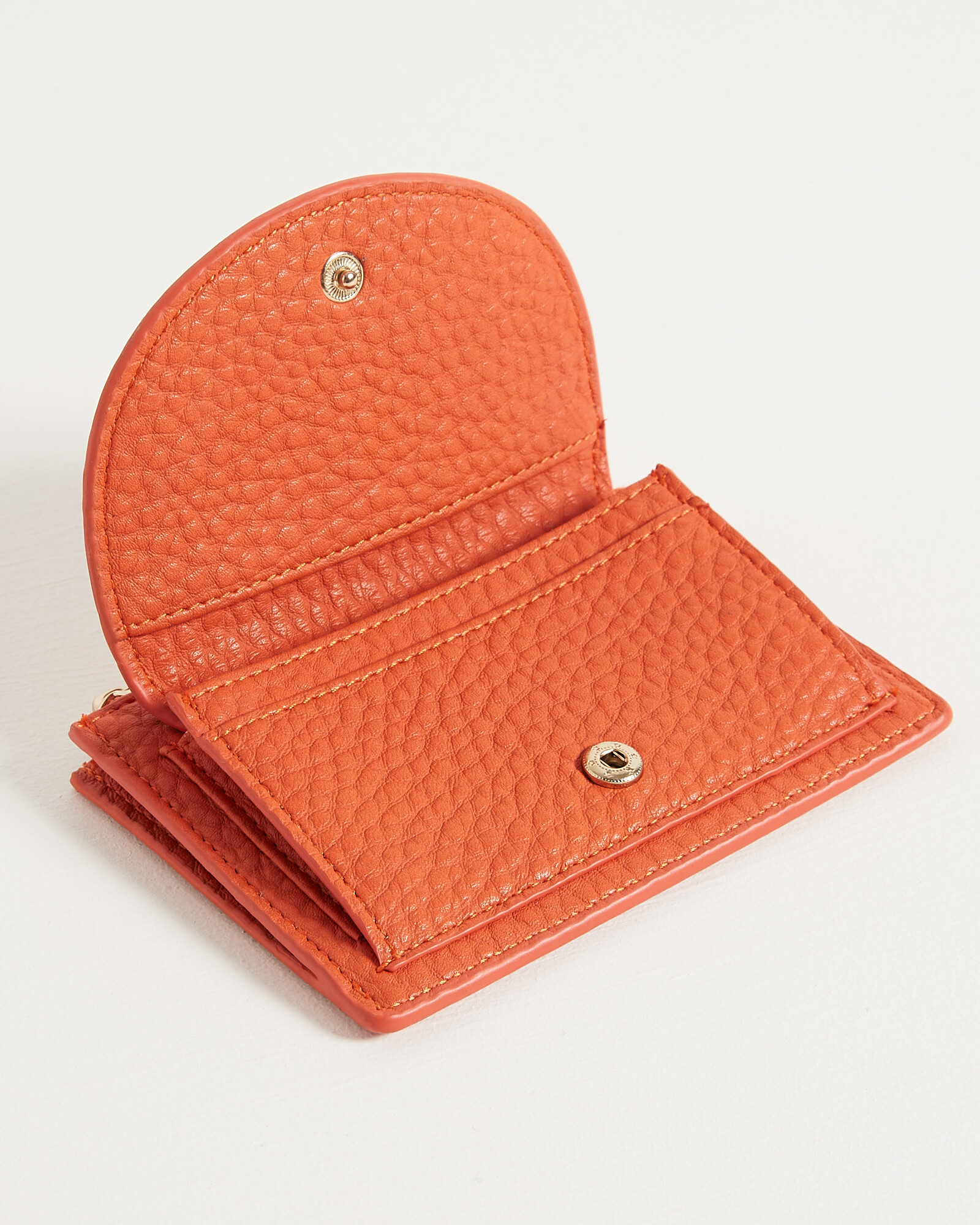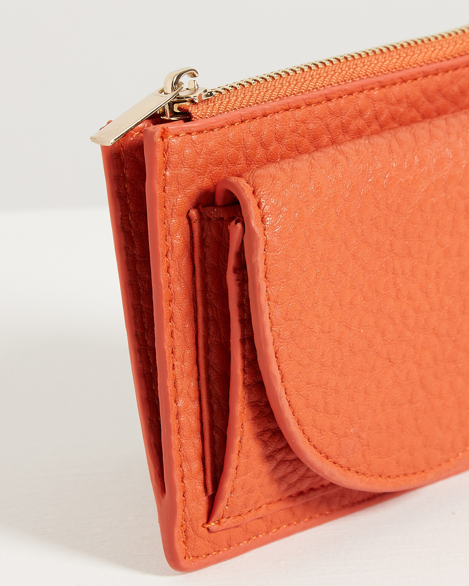 Keep your cards safe in the Hanna Card Holder, featuring a fold-over pocket and finished in an orange hue with a gold-toned zip and popper fastening.