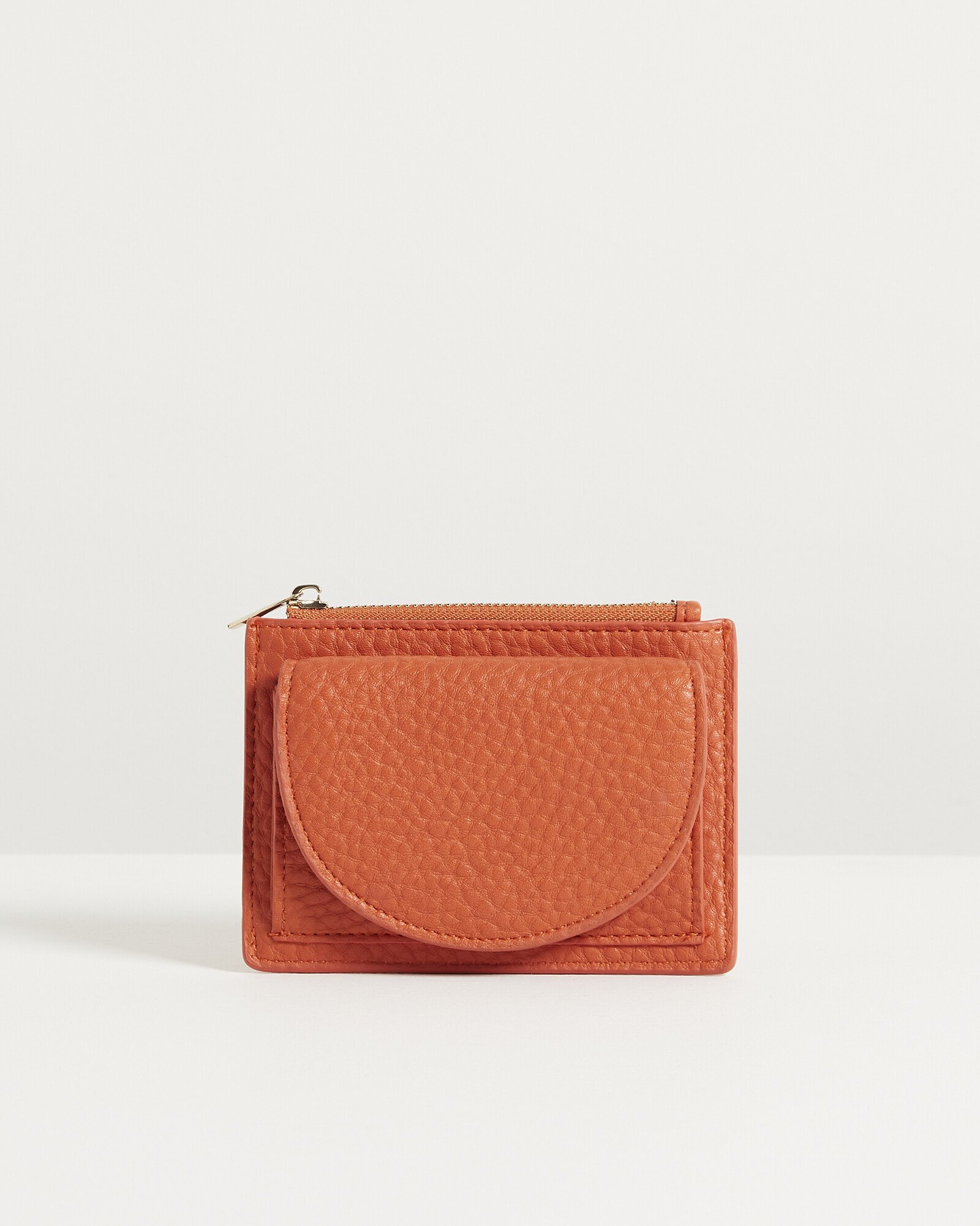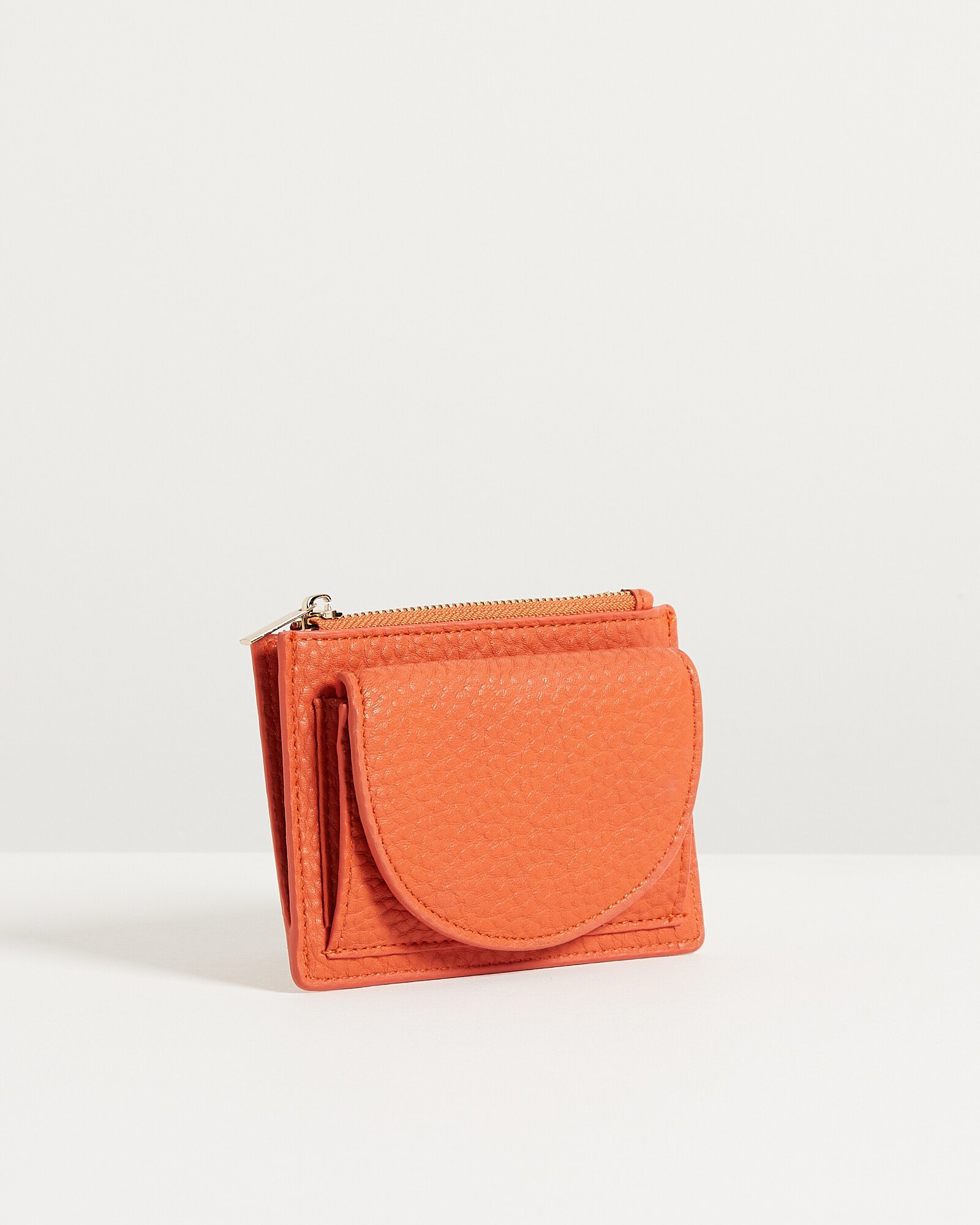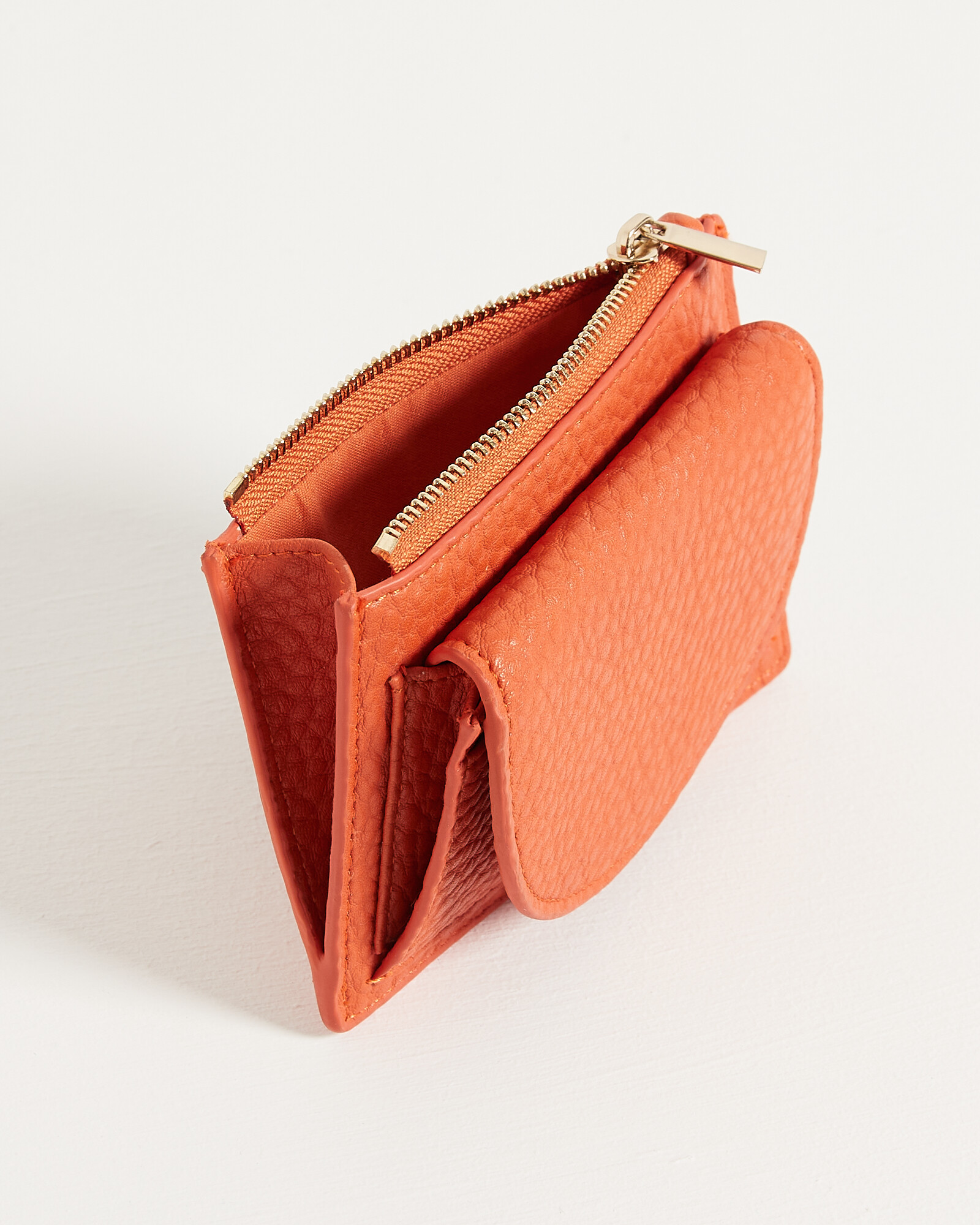 Keep your cards safe in the Hanna Card Holder, featuring a fold-over pocket and finished in an orange hue with a gold-toned zip and popper fastening.