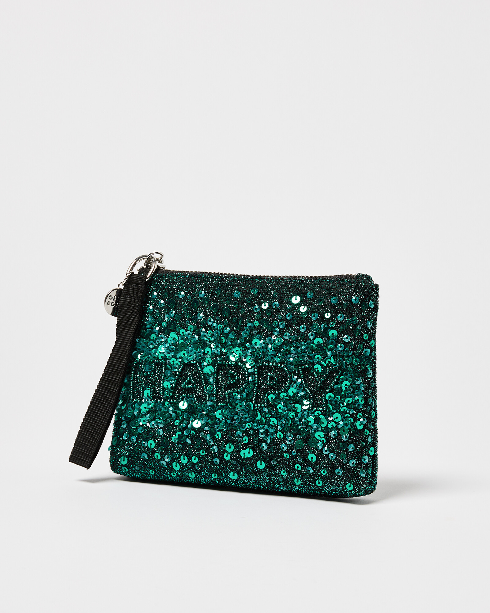 Good size for a pouch. Love the green but sequins are only on the front which is a shame.