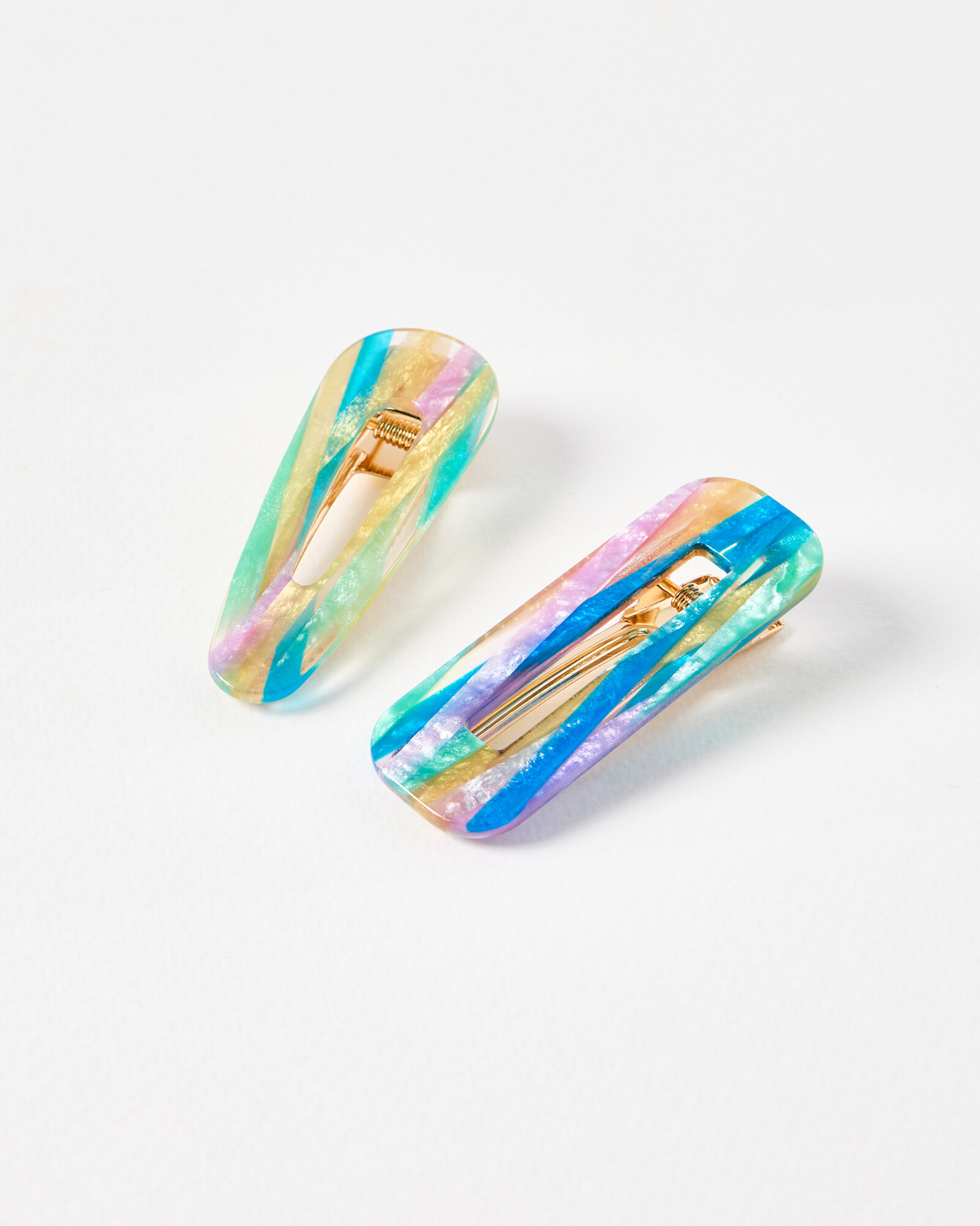 Johanne Stripe Shimmer Resin Hair Clips Set of Two