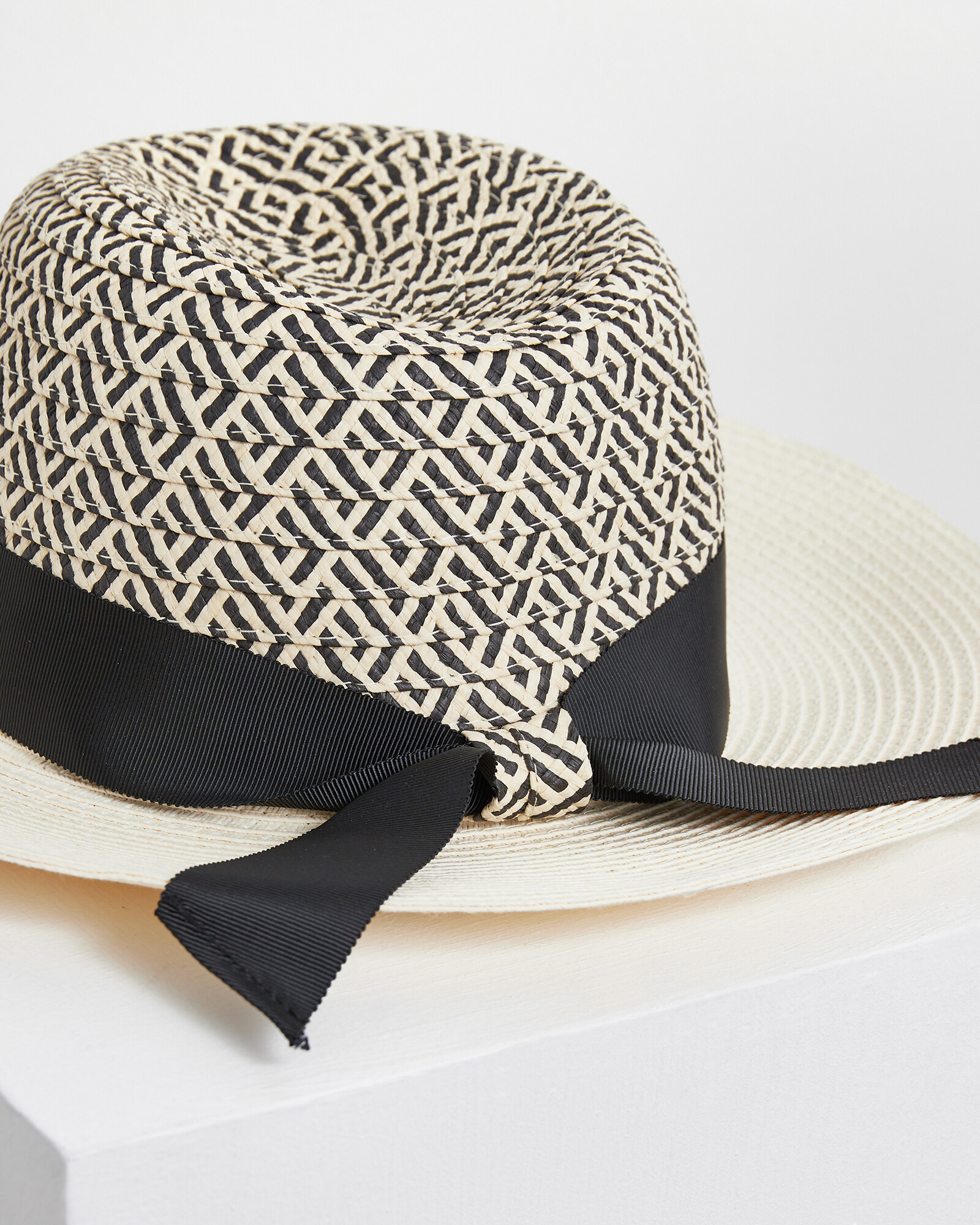 Mixed Woven Monochrome & Bow Fedora Hat