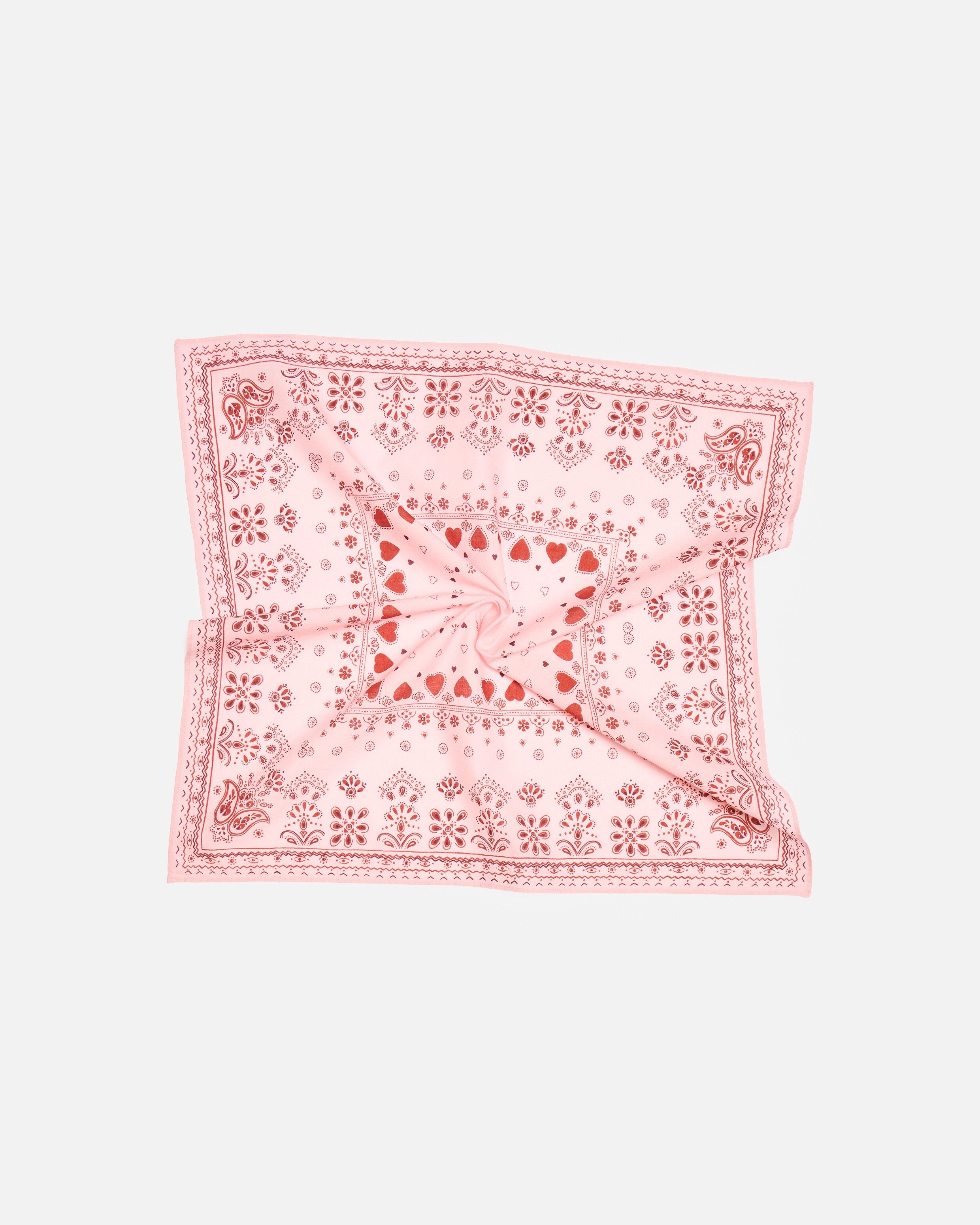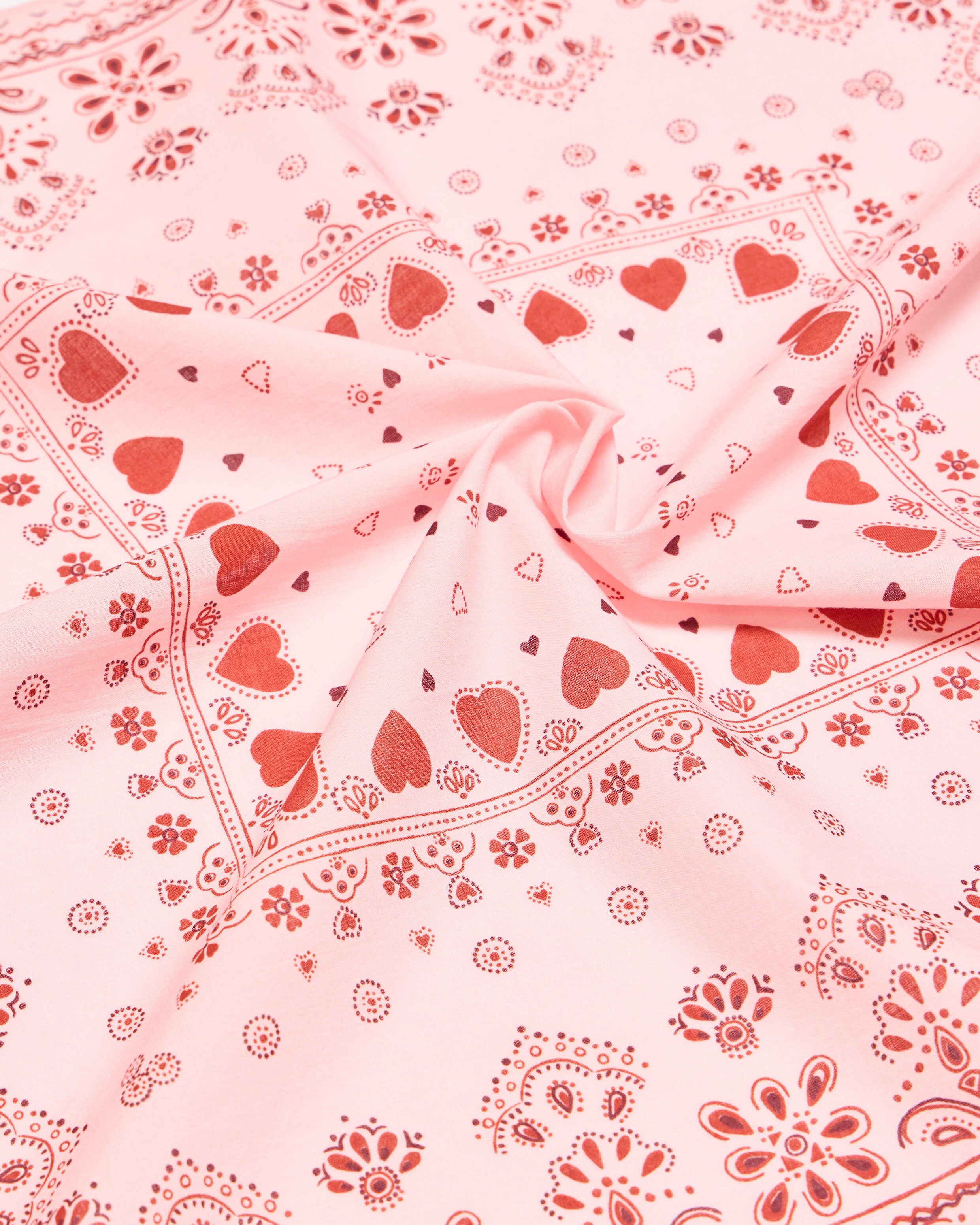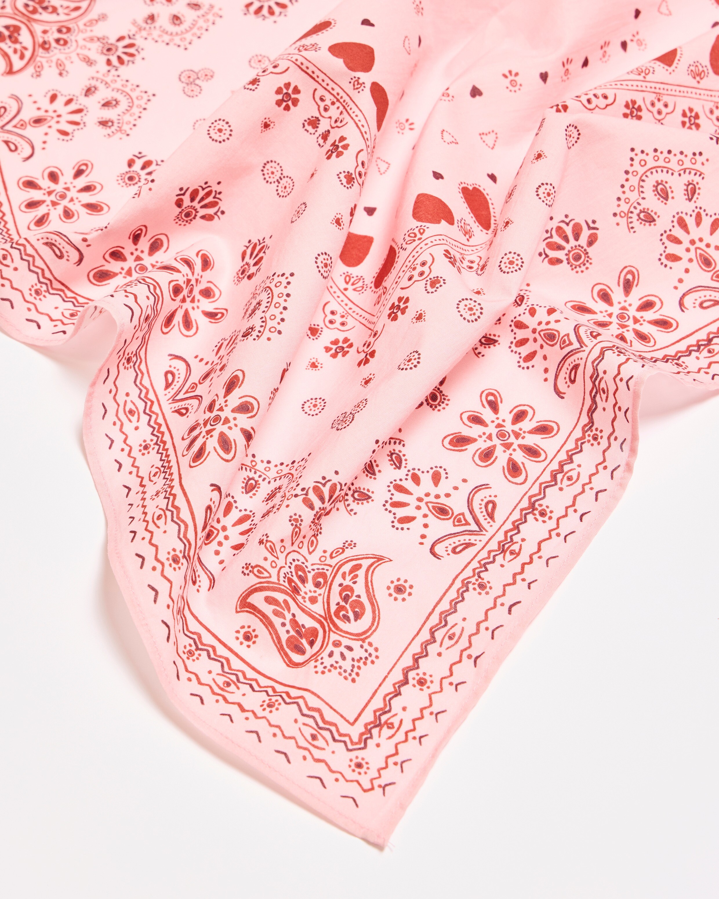 With so many ways to style it, our light pink square cotton bandana scarf could just be the hardest working accessory in your summer capsule wardrobe. Printed with a paisley design featuring red heart motifs for a little feminine flourish, tie it on your belt loops, wear it as a headband or bag accessory, or as a neckerchief.