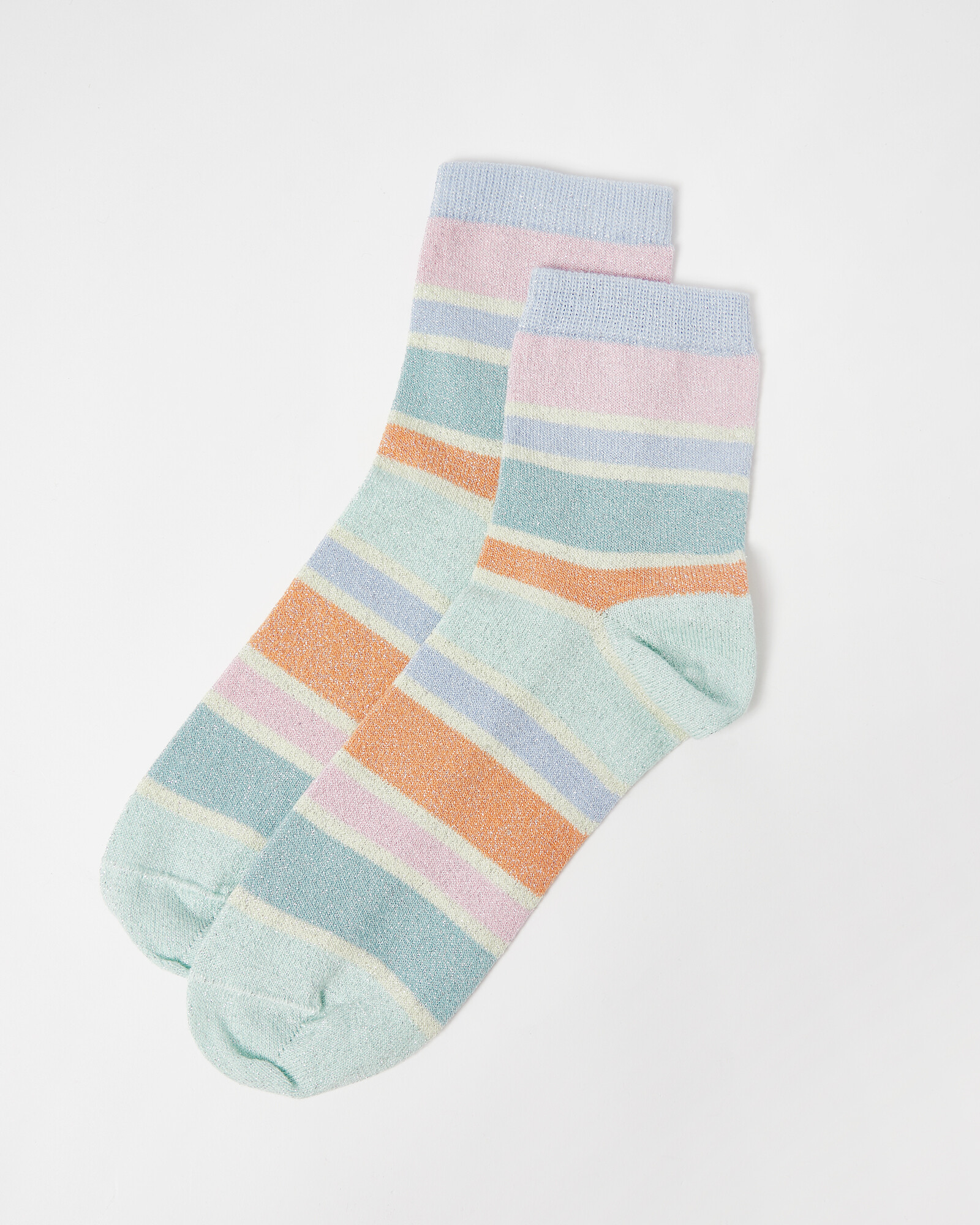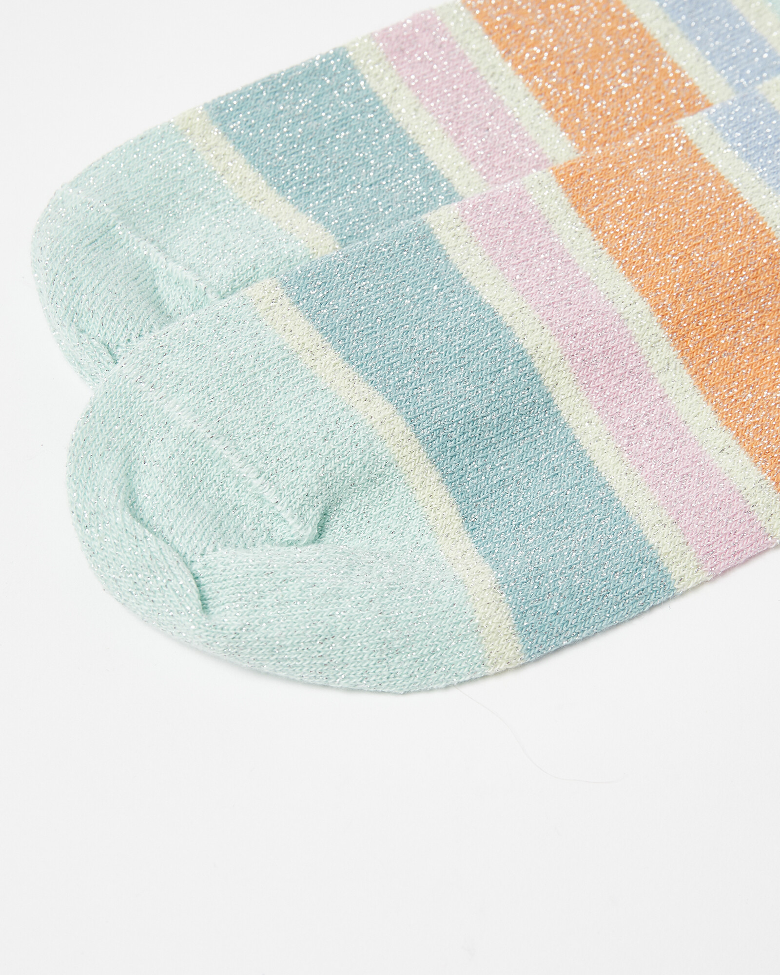 In glittering blue, orange and lilac tones, these stripy ankle socks will add a fun touch to your outfit.