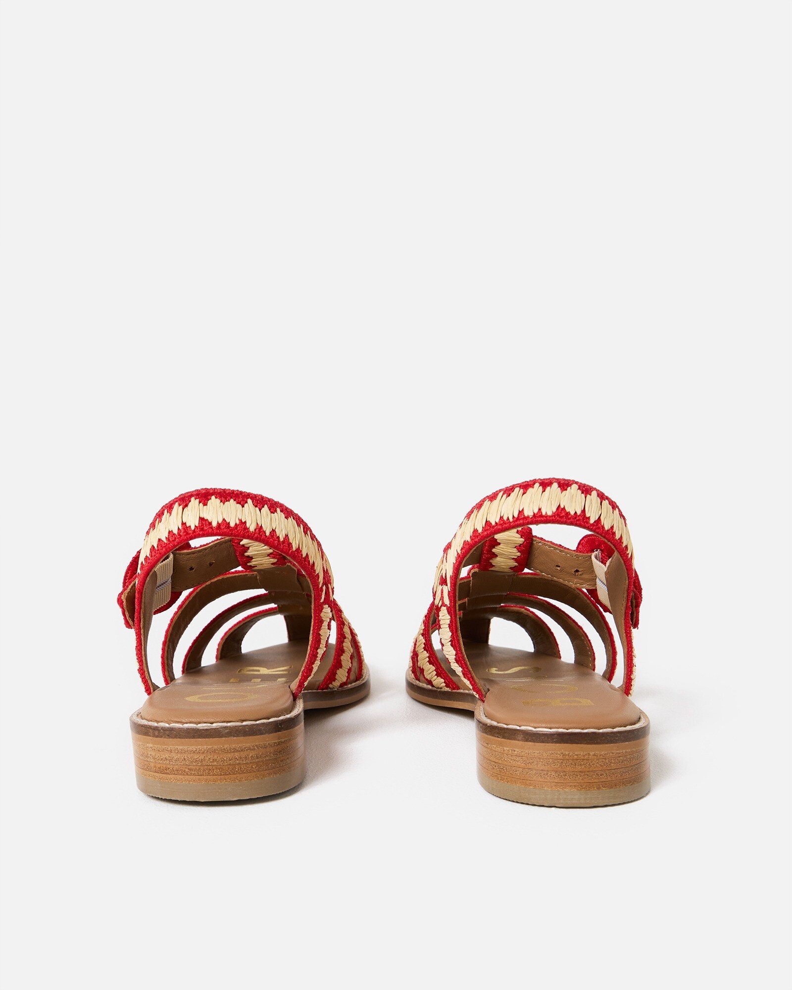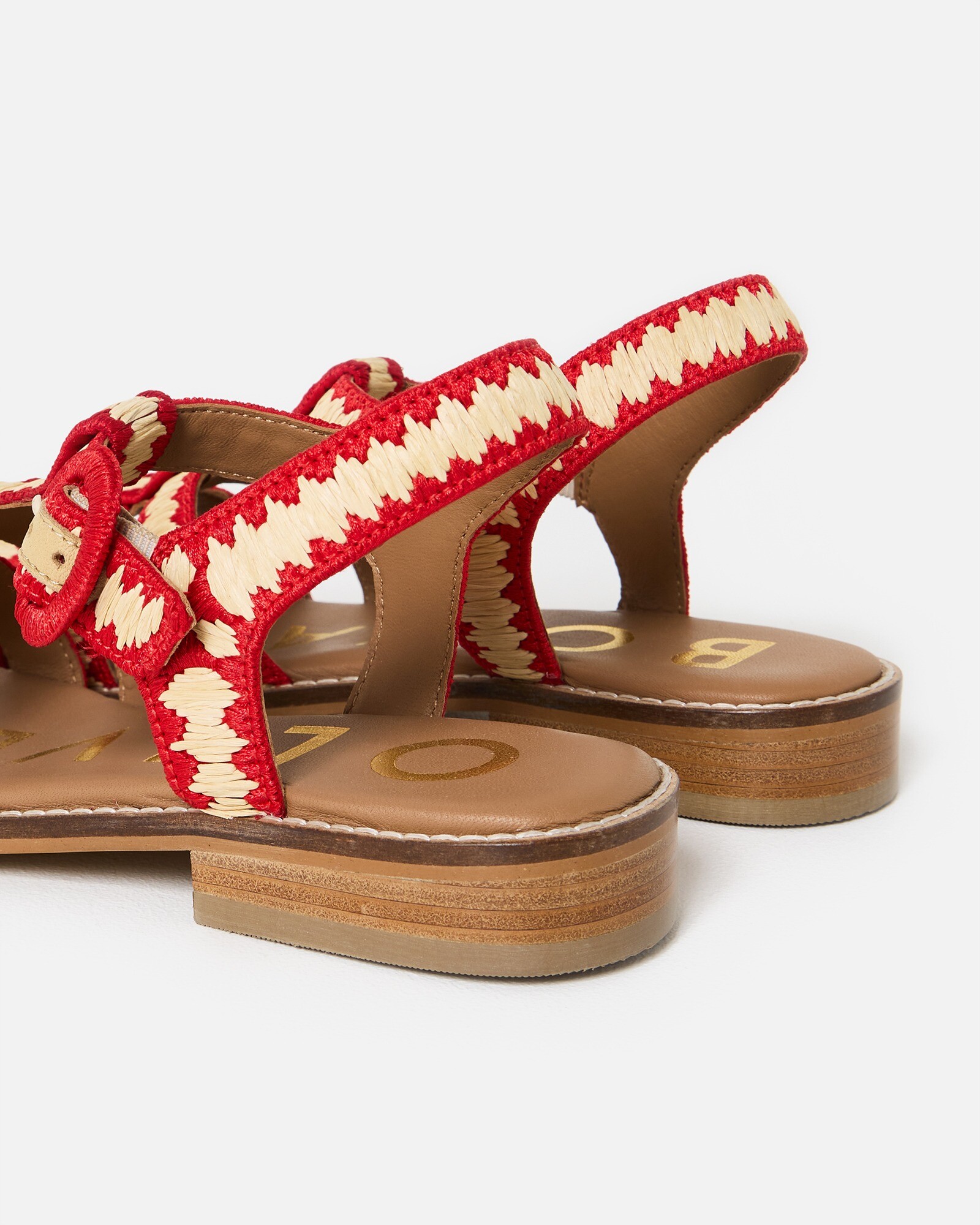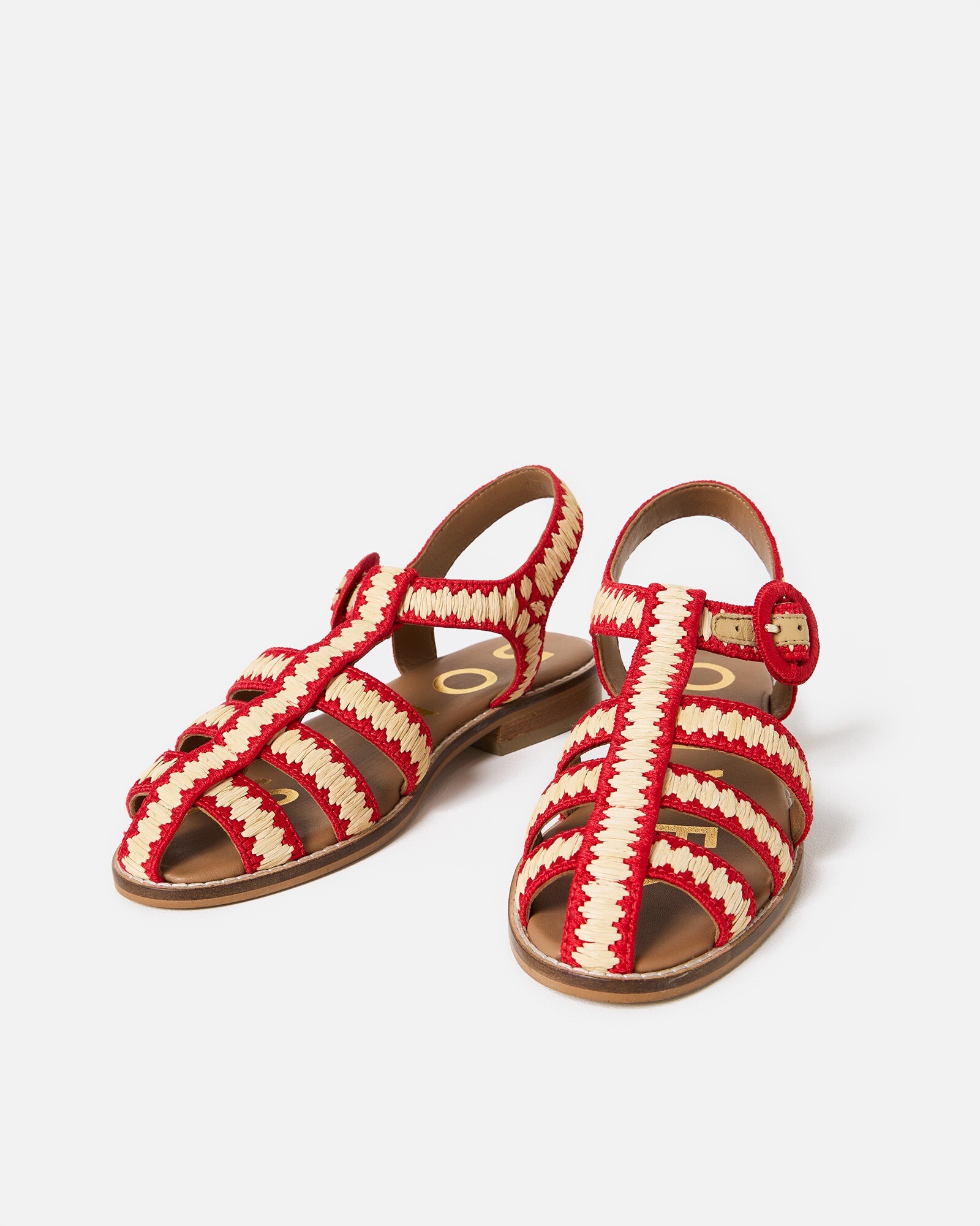 Ready for all-day summer stepping, our summer fisherman sandals will take you from seaside to sightseeing. With three straps across the foot and a closed-toe design, they're woven in natural and red paper raffia for a pop of colour. Fastening at the ankle with a paper-covered loop and gold buckle, the leather sole has been designed with a wood-effect base and padded footbed for happy feet. Alongside a gold metallic OB logo on each sole, we've added a small block heel for a little height.