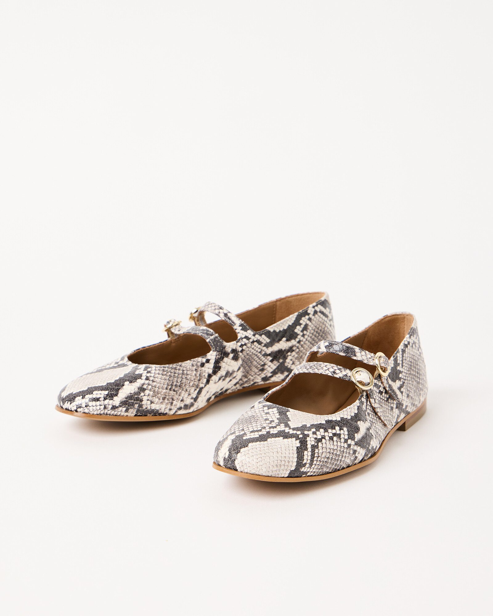 Snake Print Leather Mary Jane Shoes With Double Buckle