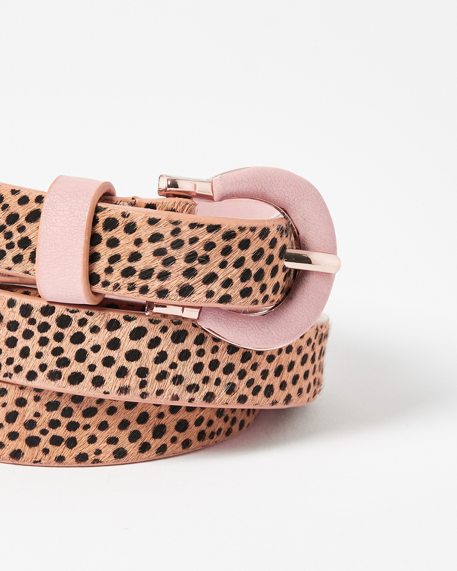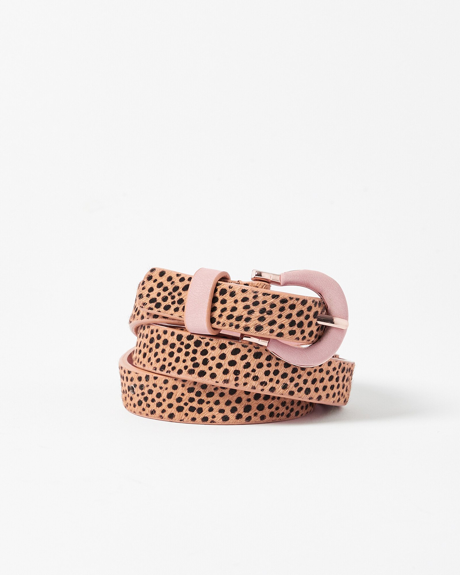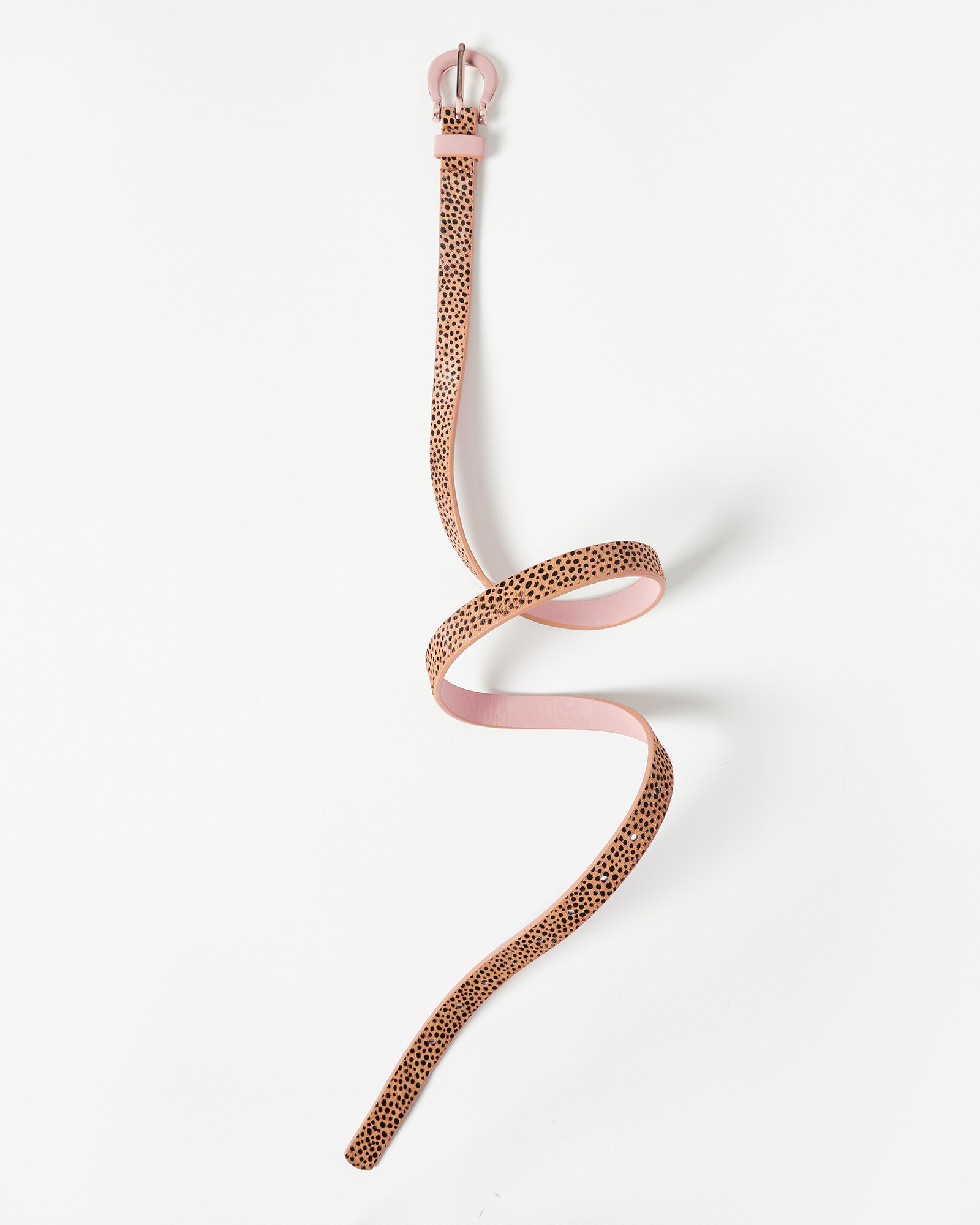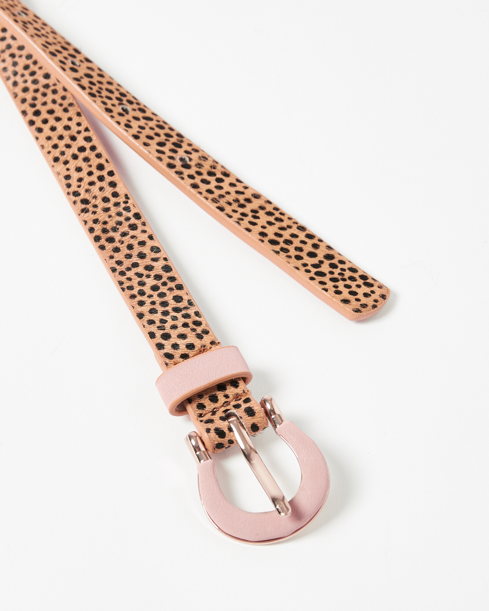 Spotty Animal Print Pink Buckle Brown Leather Skinny Belt