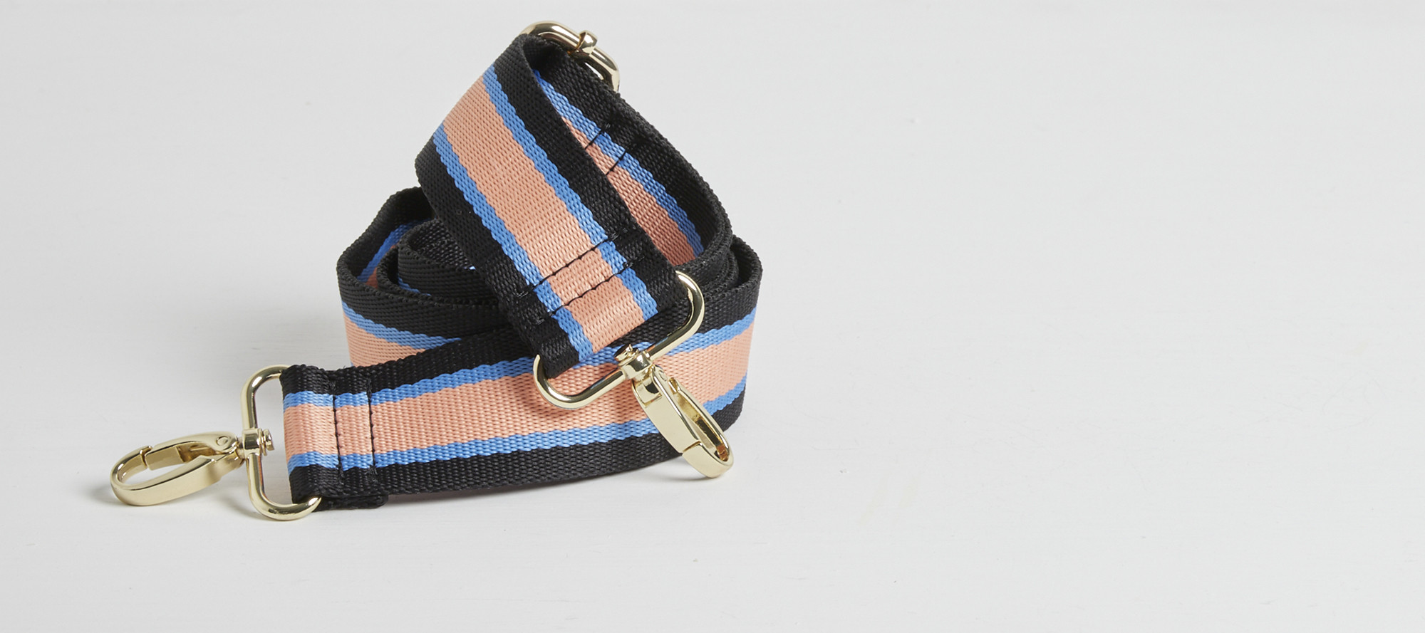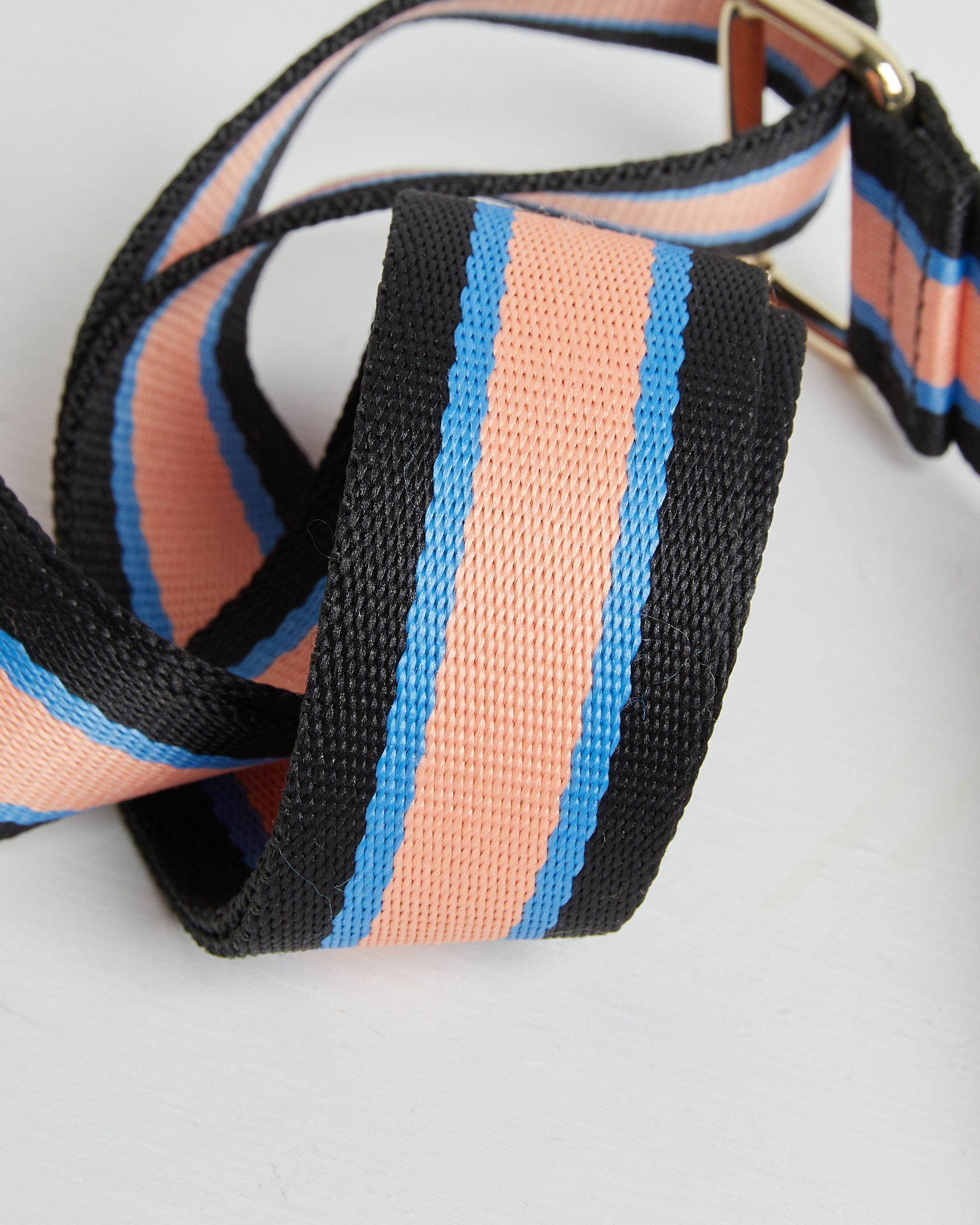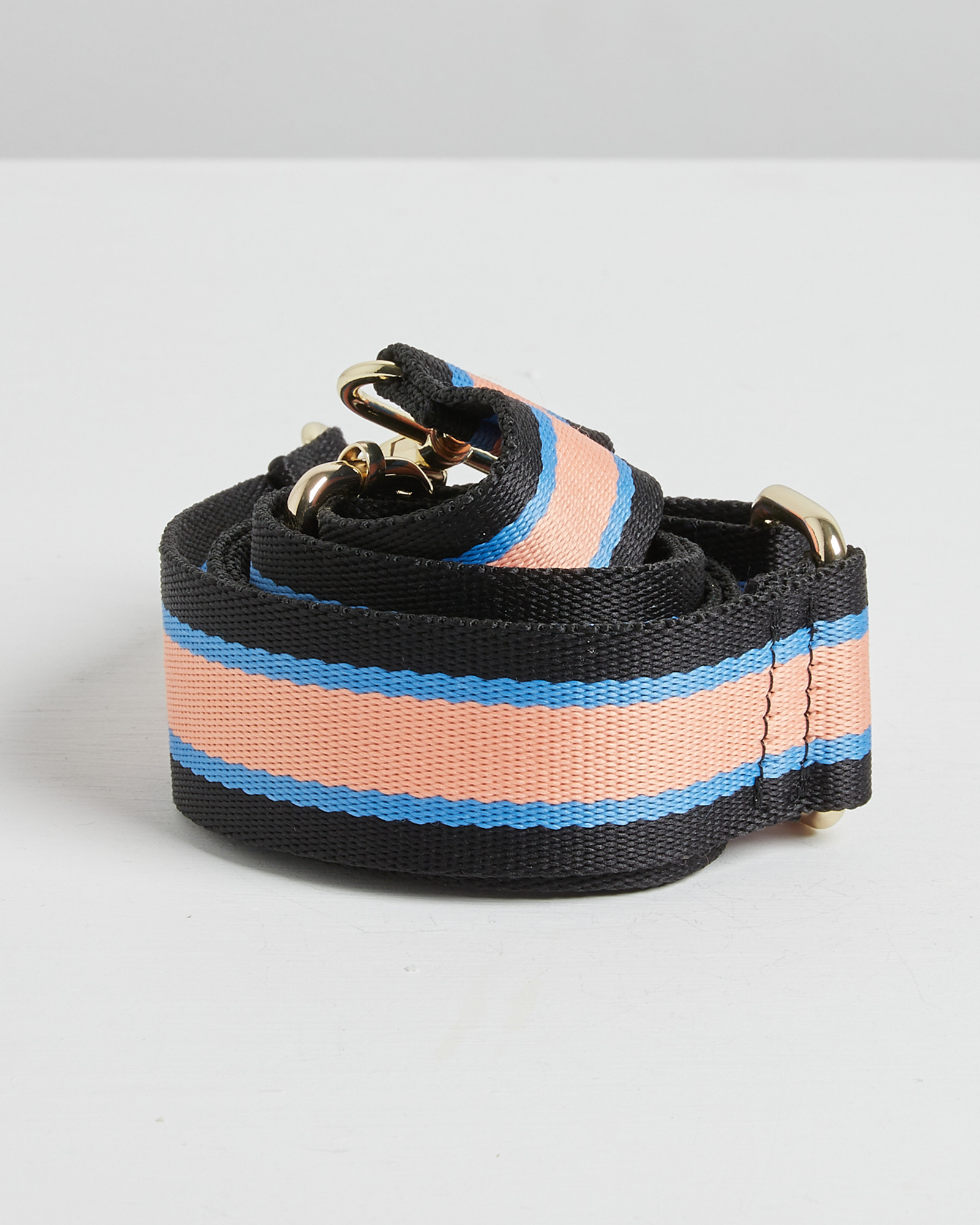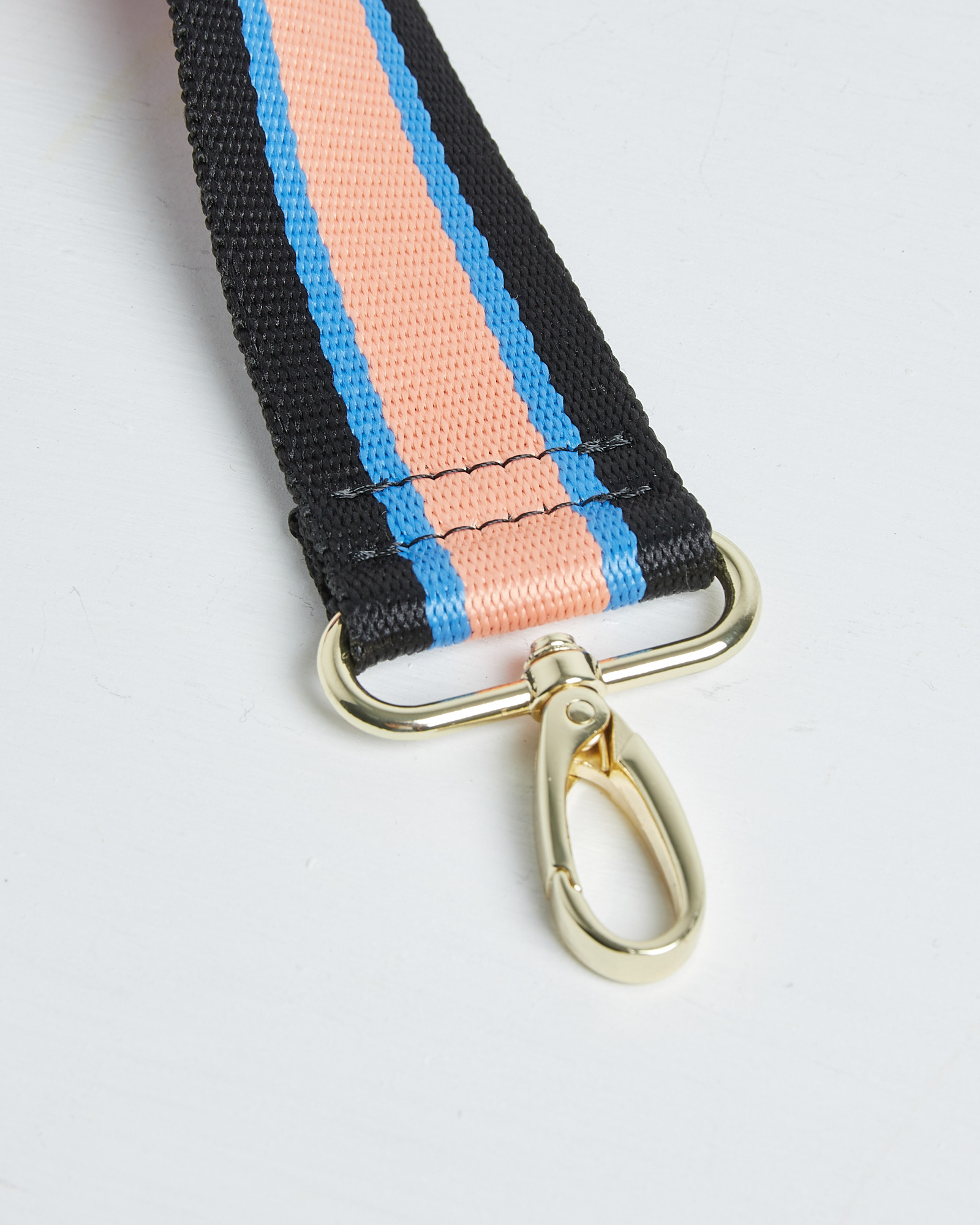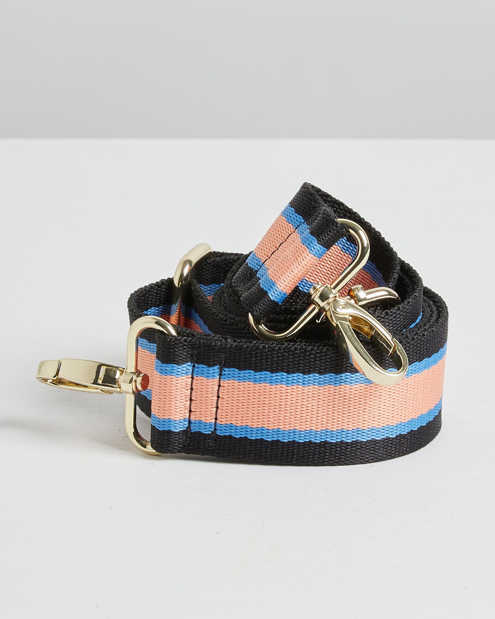Combining a black, peach & blue striped design with gold-toned hardware, add this removeable strap to your bag for a colourful update to your everyday essentials.