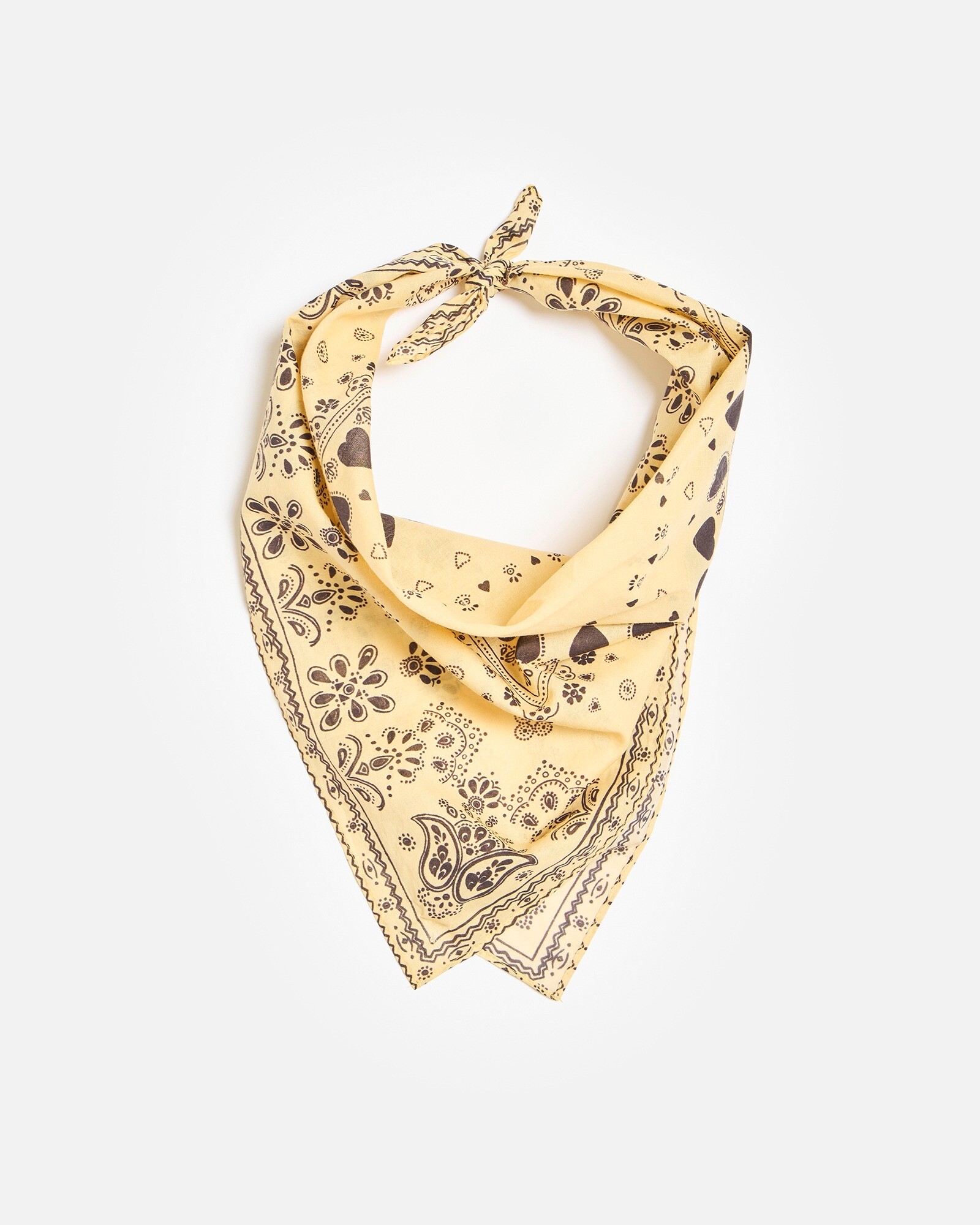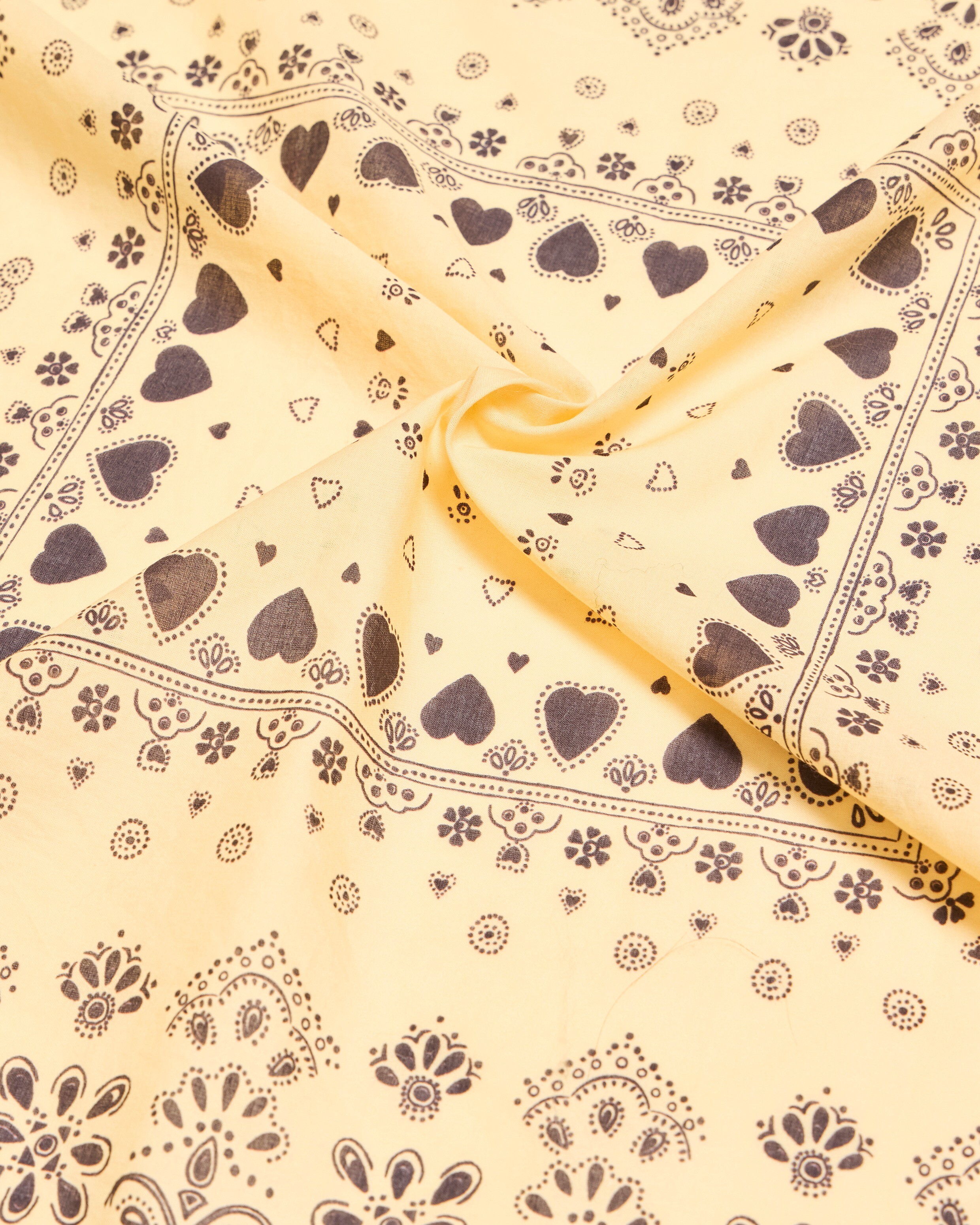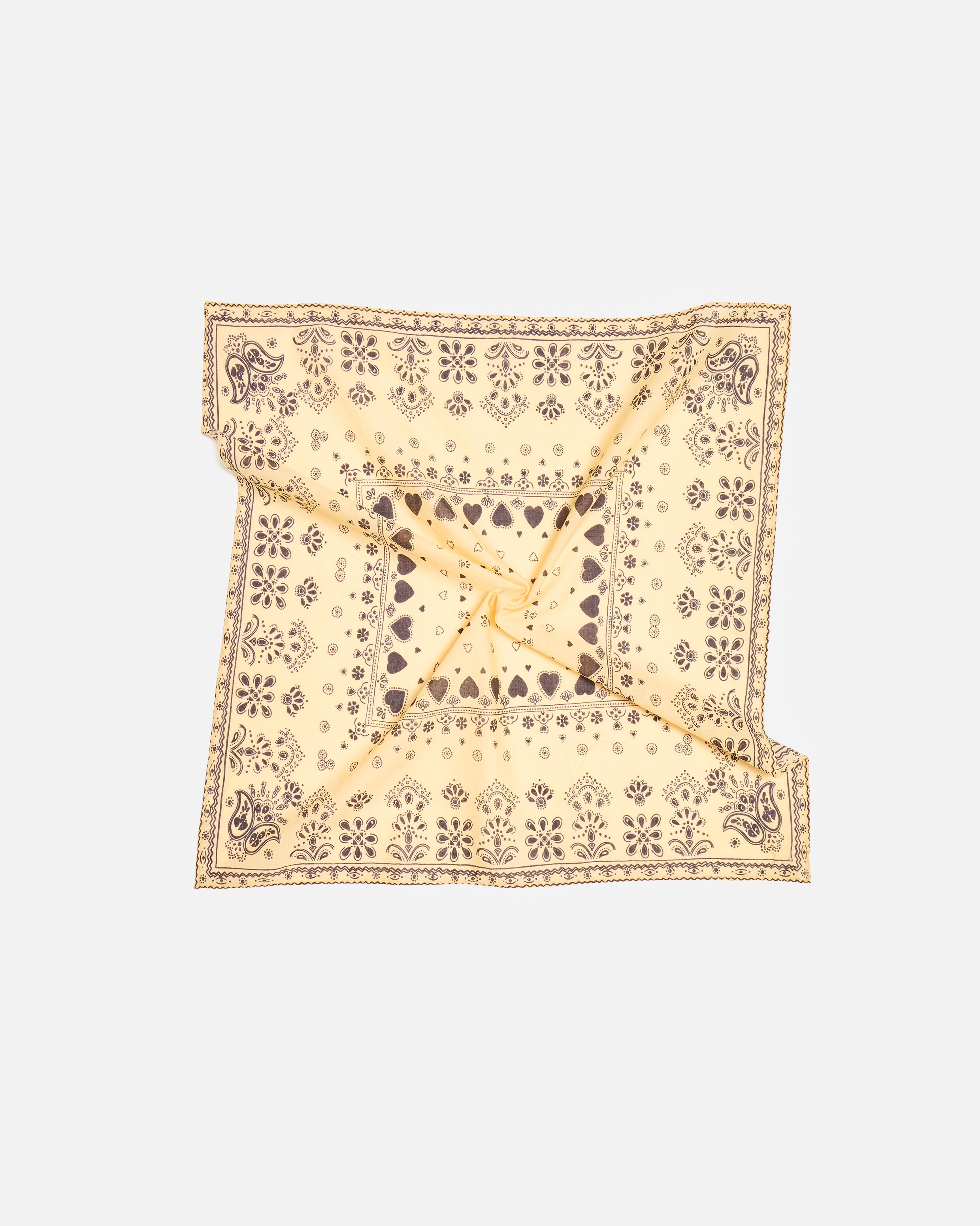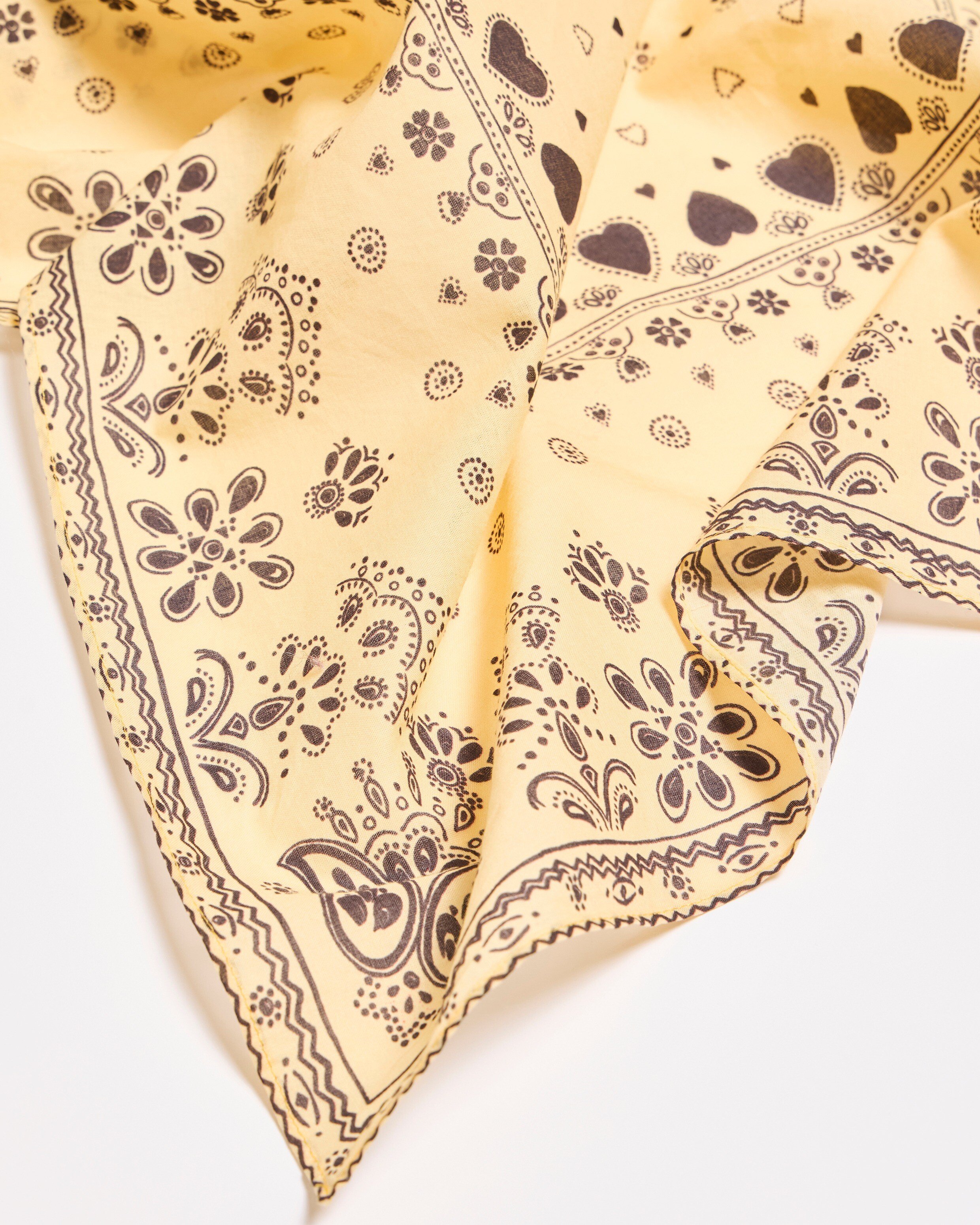 With so many ways to style it, our yellow square cotton bandana scarf could just be the hardest working accessory in your summer capsule wardrobe. Printed with a paisley design featuring brown heart motifs for a little feminine flourish, tie it on your belt loops, wear it as a headband or bag accessory, or fashion it as a neckerchief.