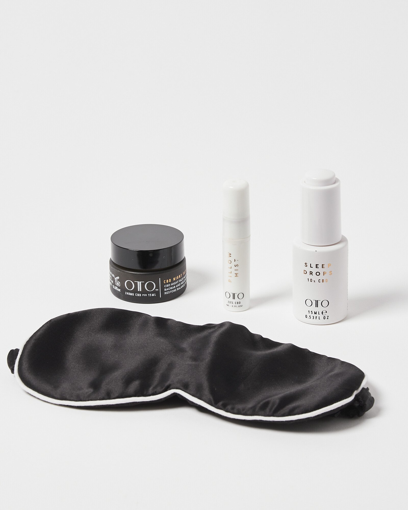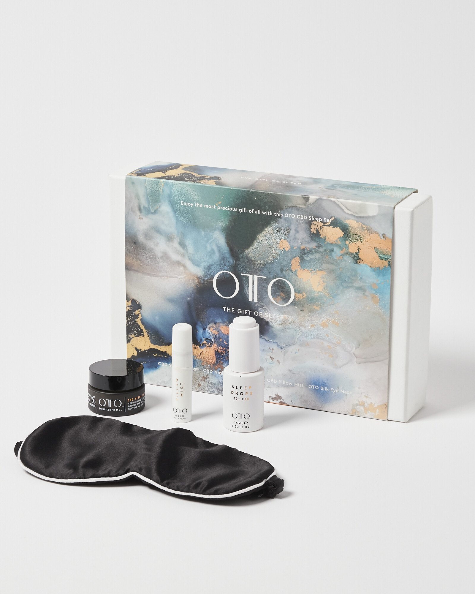 Enjoy the gift of sleep with the restorative powers of CBD in the Gift of Sleep Set from OTO. Featuring the bestselling Sleep Drops, a CBD pillow mist, and the indulgent Night Face Mask, including a luxurious silk eye mask, this curated set will ensure you have a peaceful night's sleep.