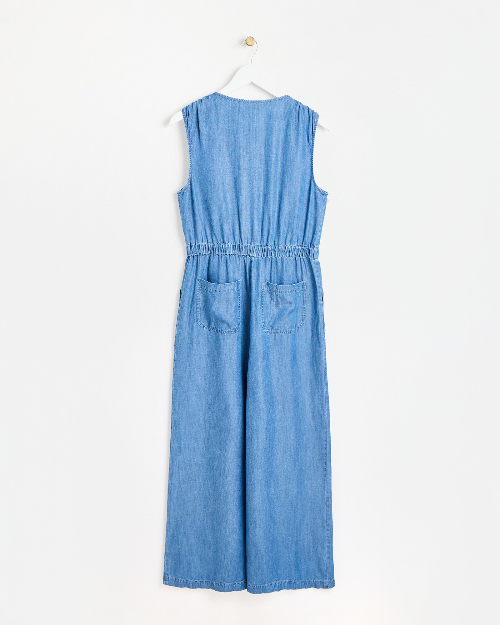 Blue Chambray Sleeveless Jumpsuit