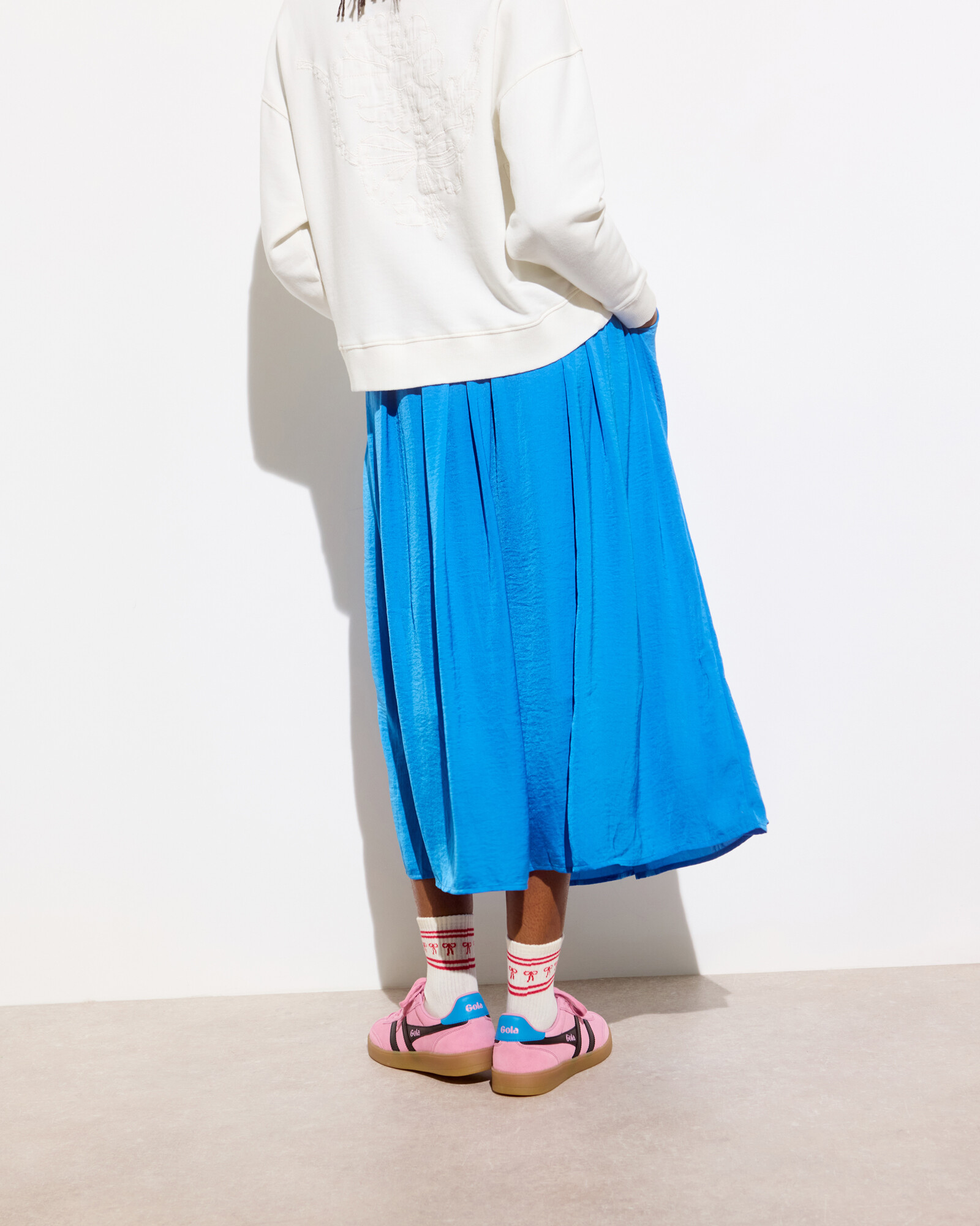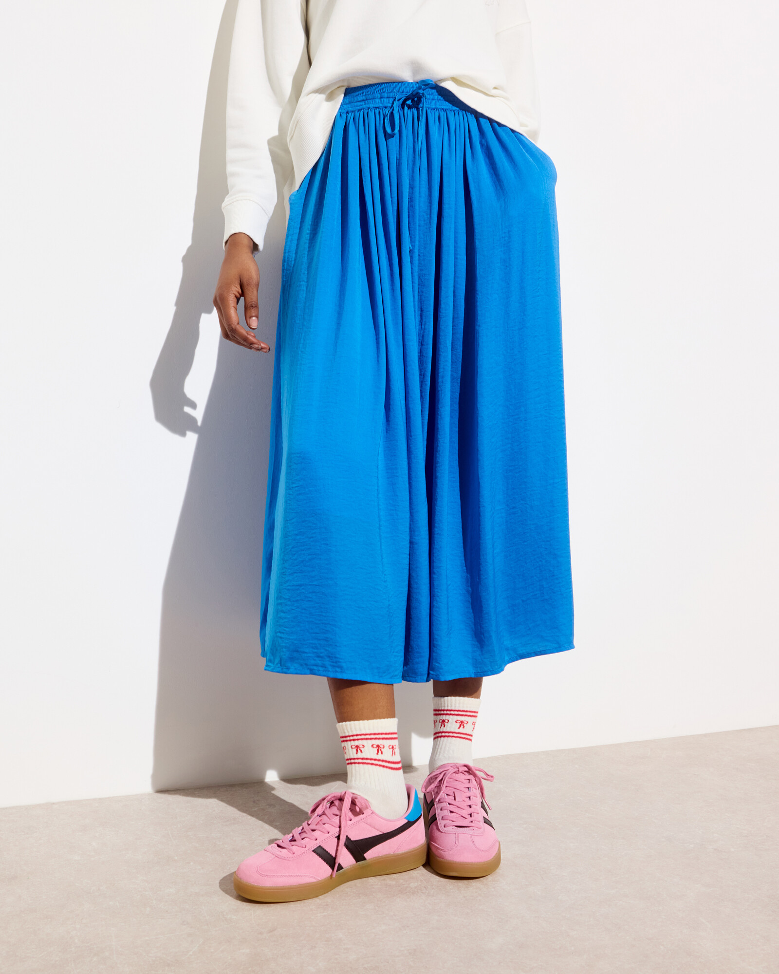 Blue Pleated Hammered Satin Midi Skirt