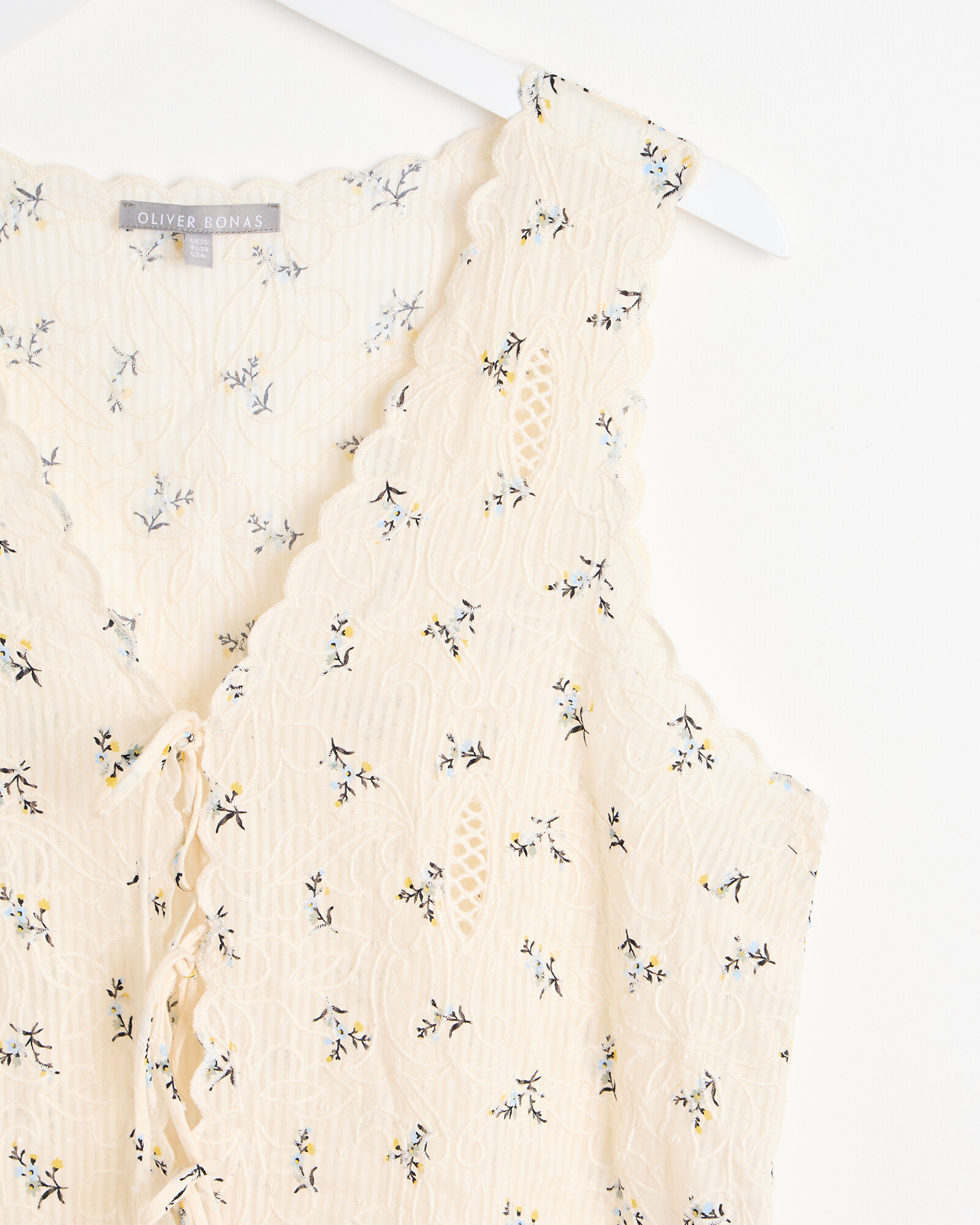Embroidered Floral White Shell Top