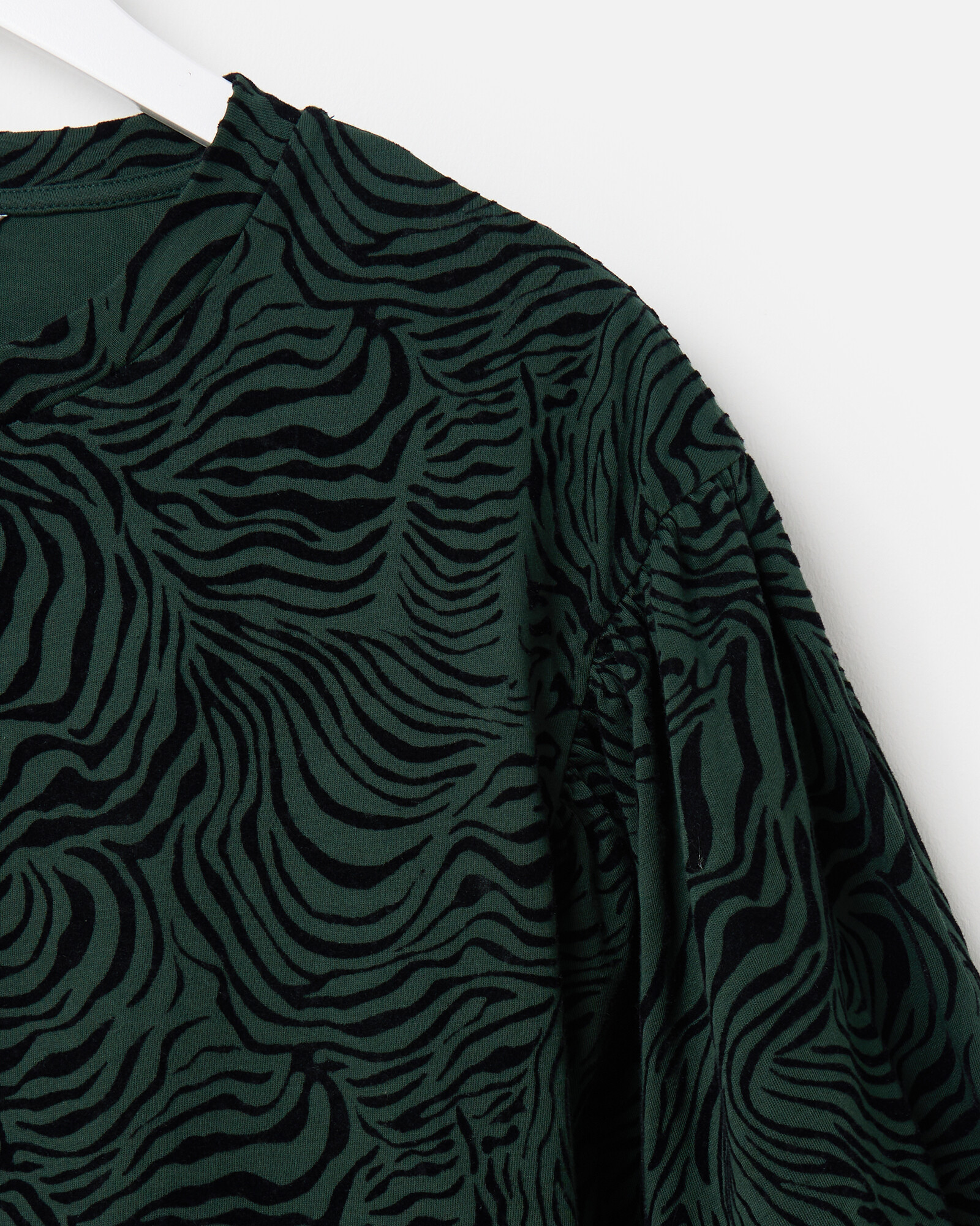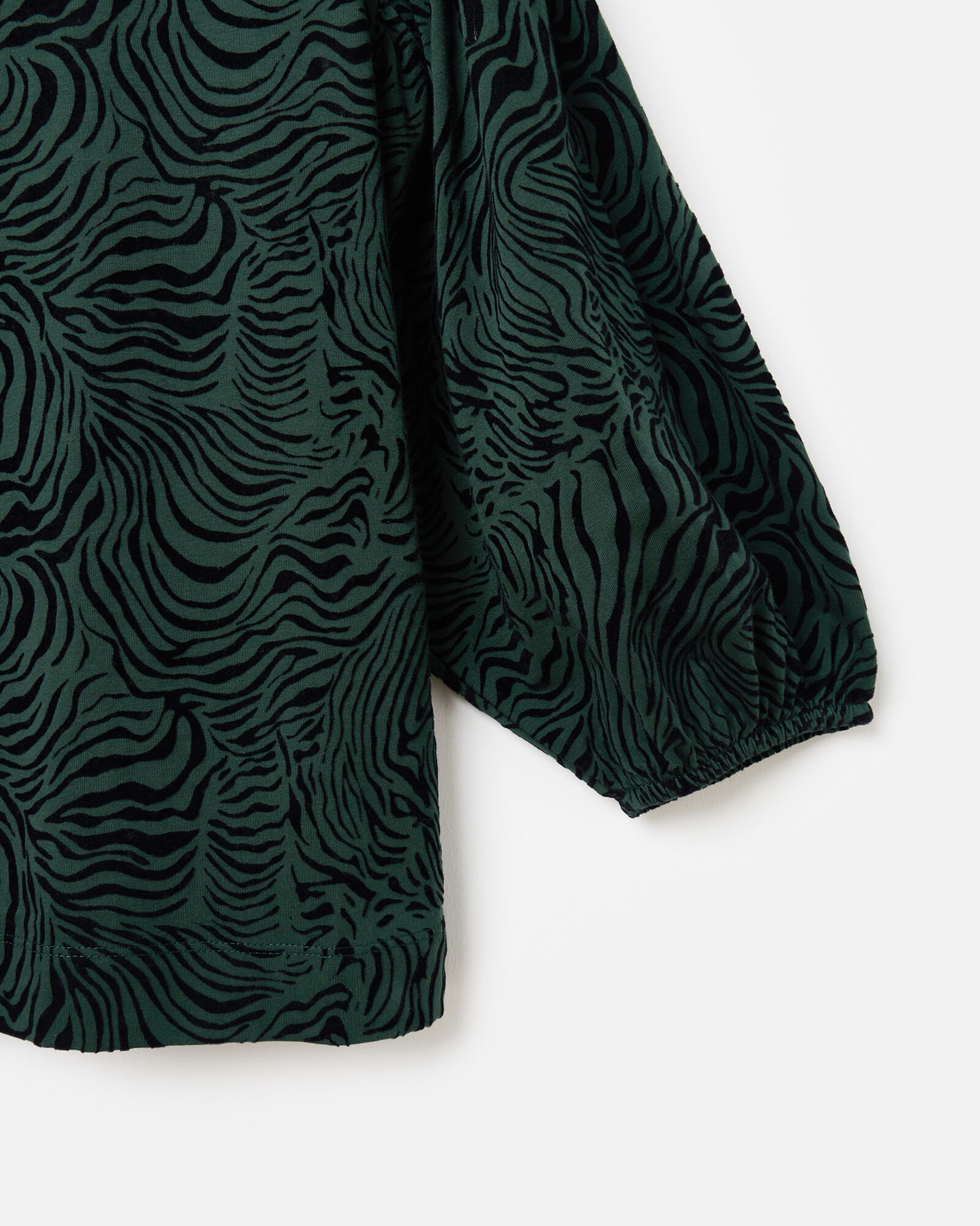Green & Black Flock Animal Print Top