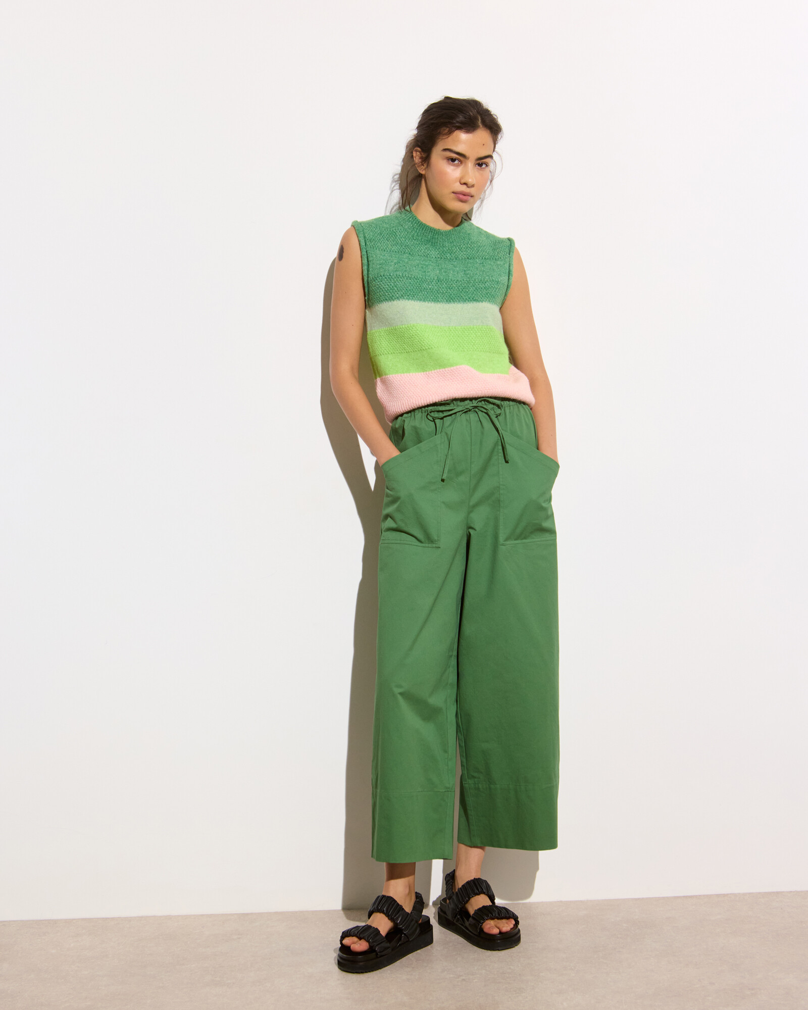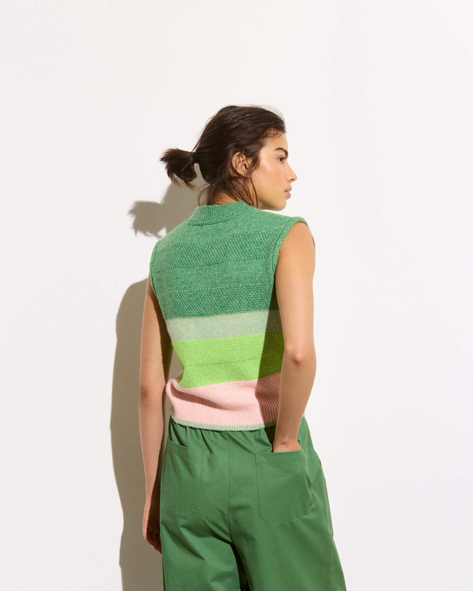 Green & Pink Striped Knitted Tank Top
