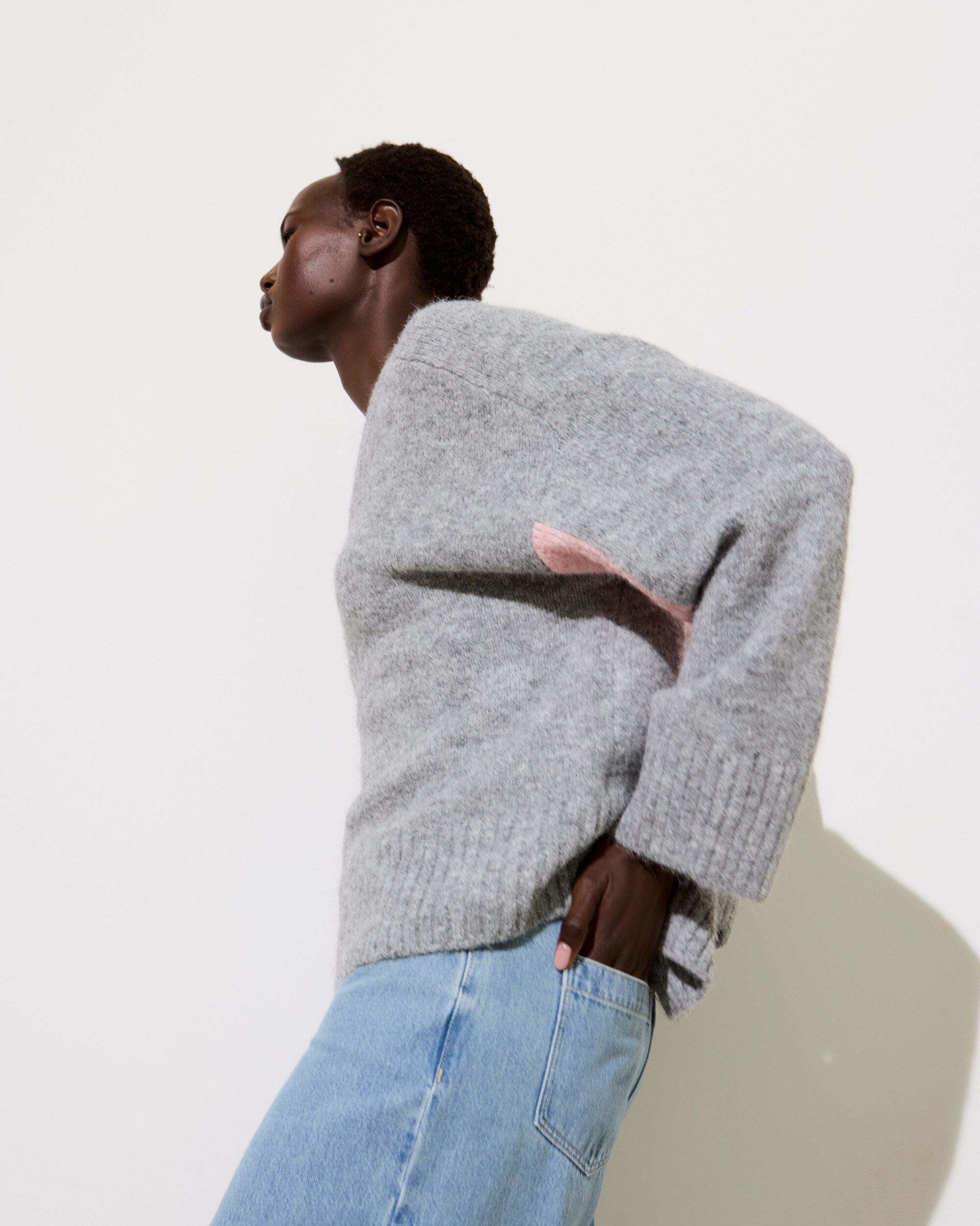 Grey & Pink V-Neck Knitted Jumper