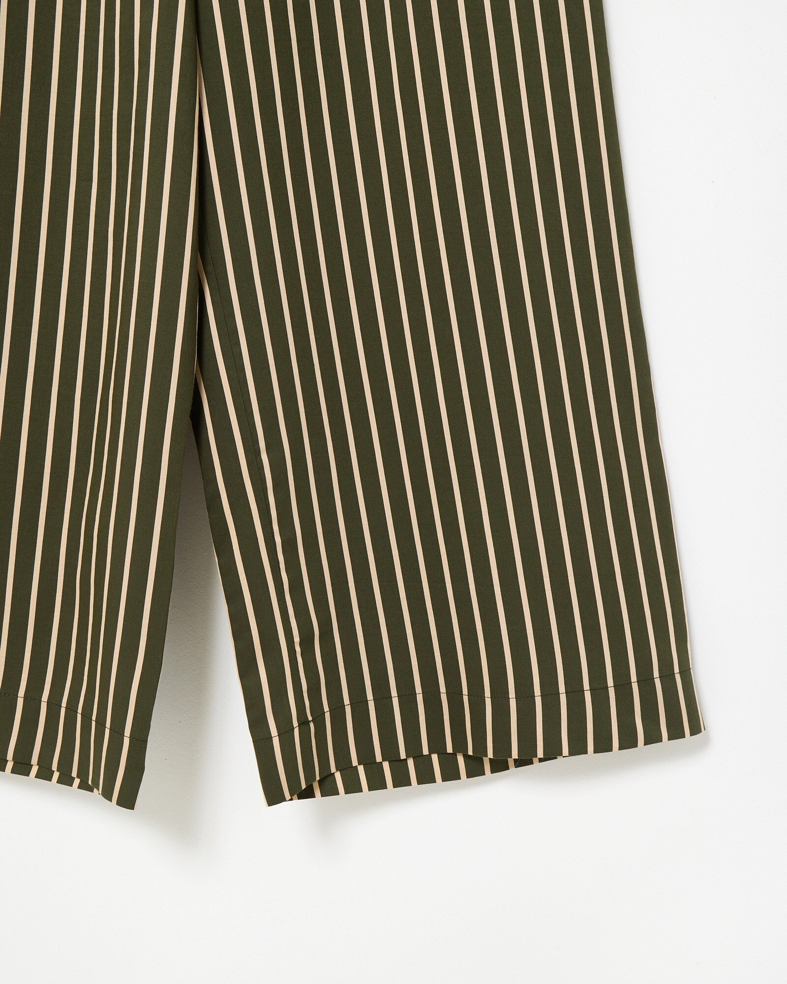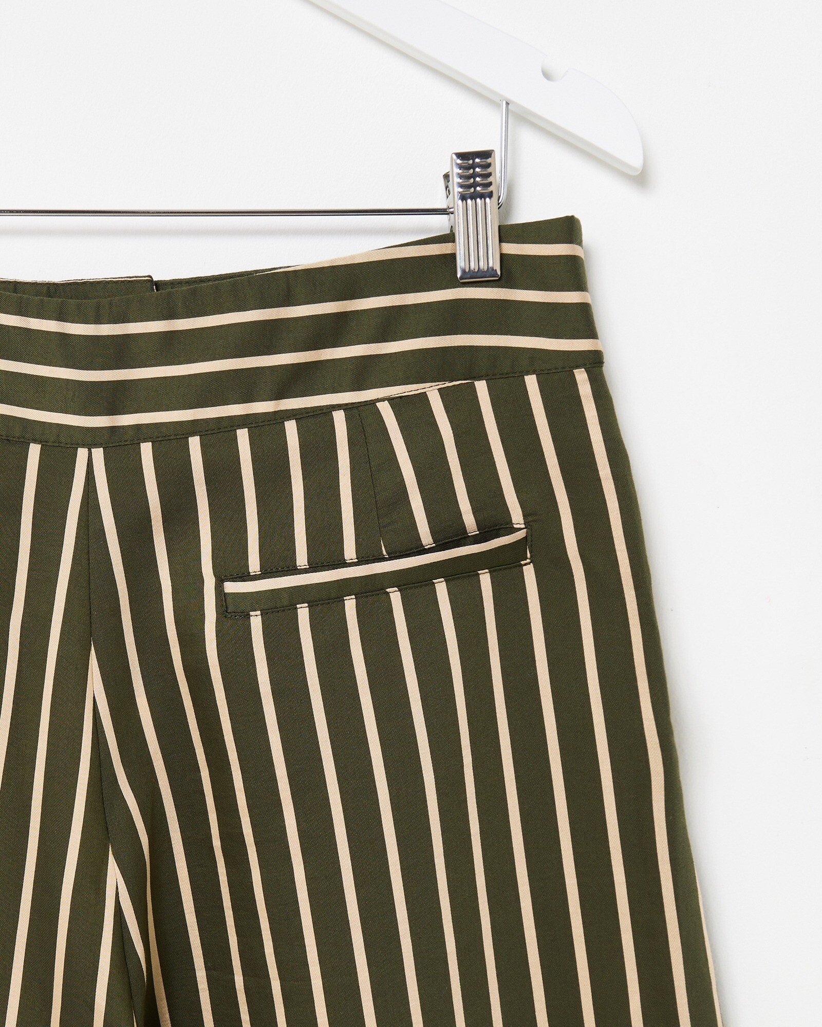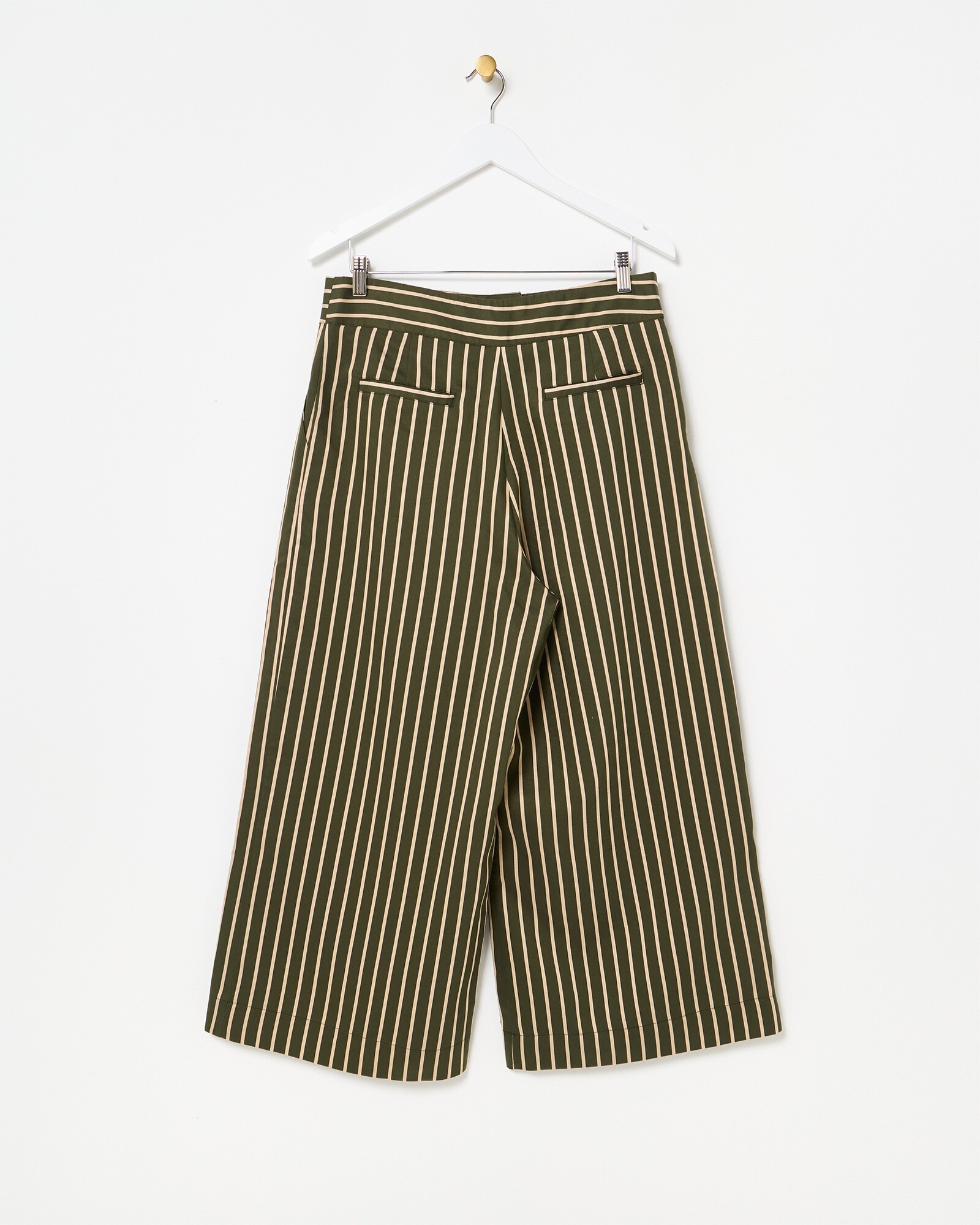 Khaki Green & Cream Striped Cropped Wide Leg Trousers