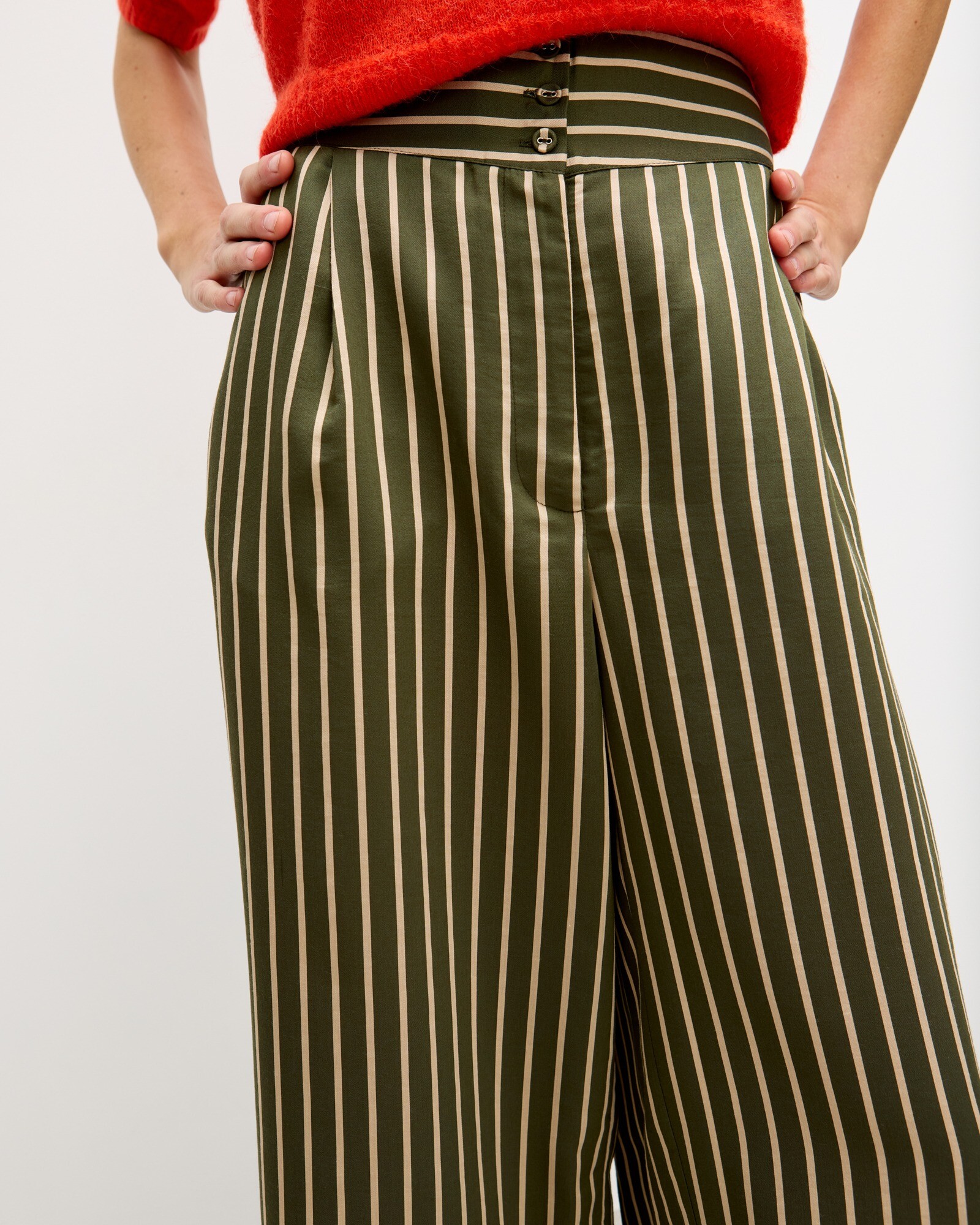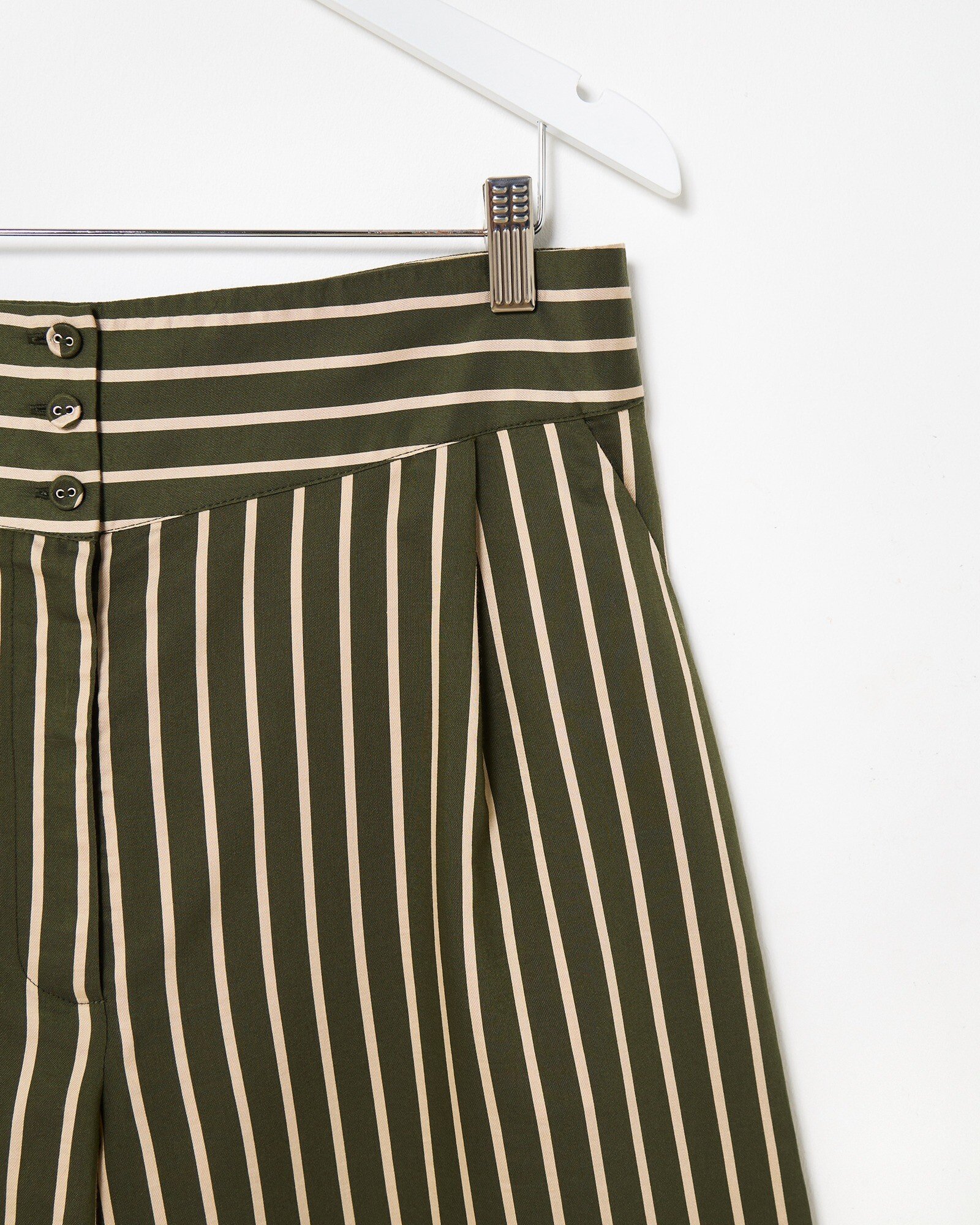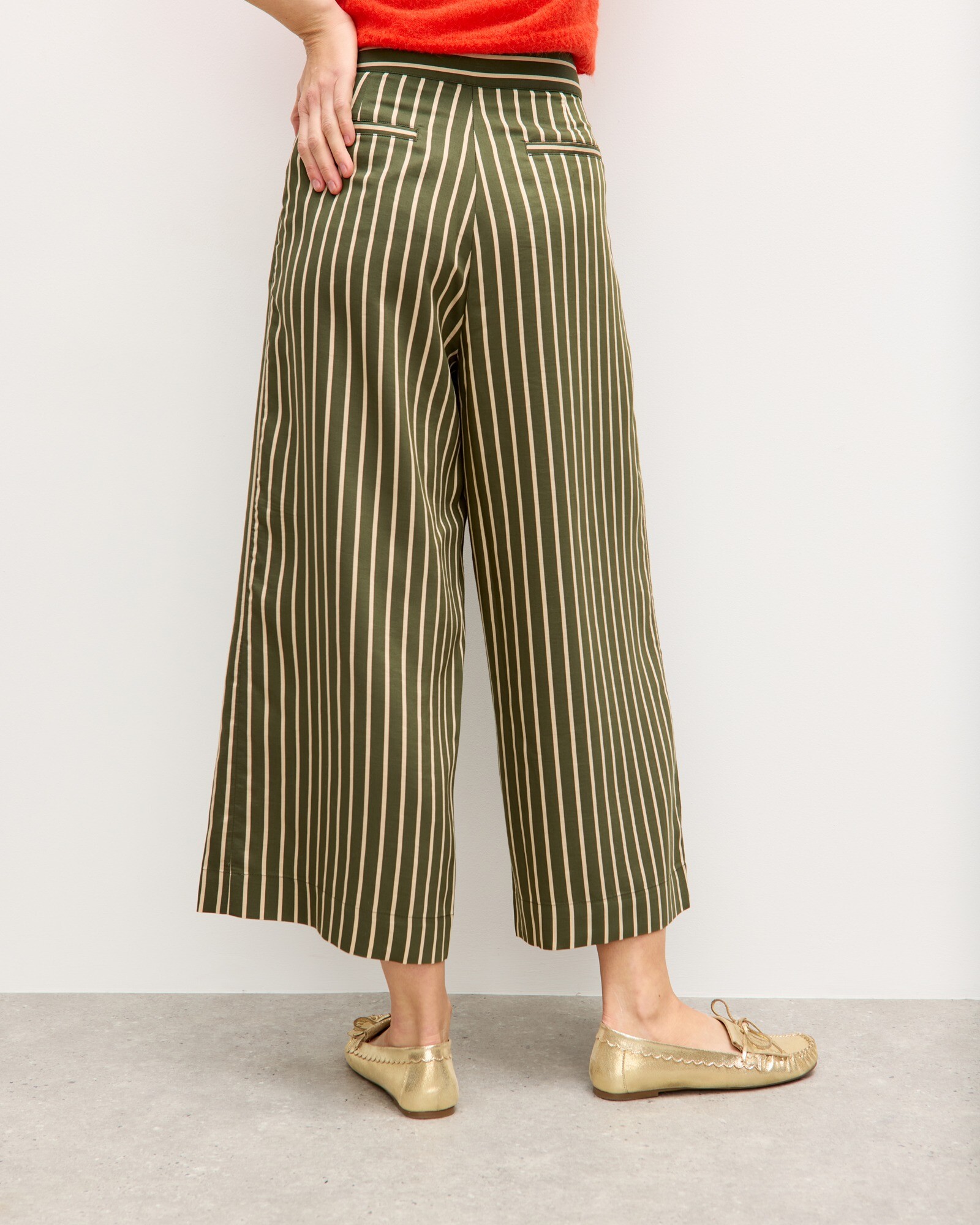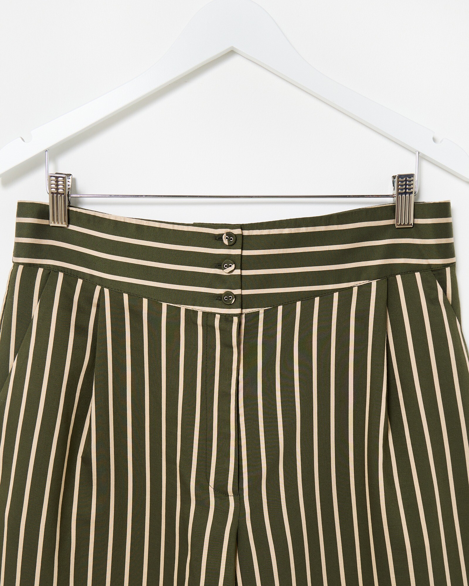 Khaki Green & Cream Striped Cropped Wide Leg Trousers