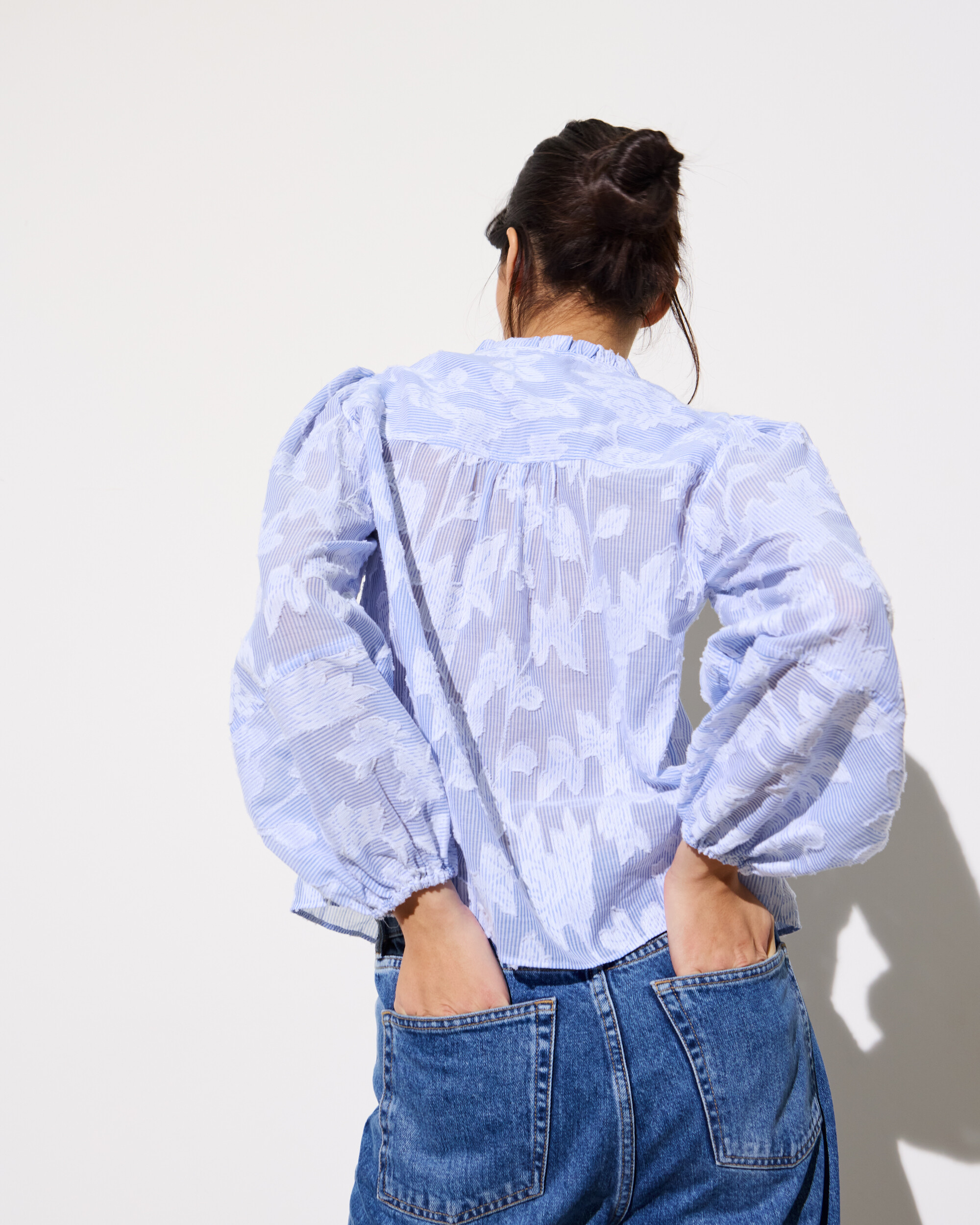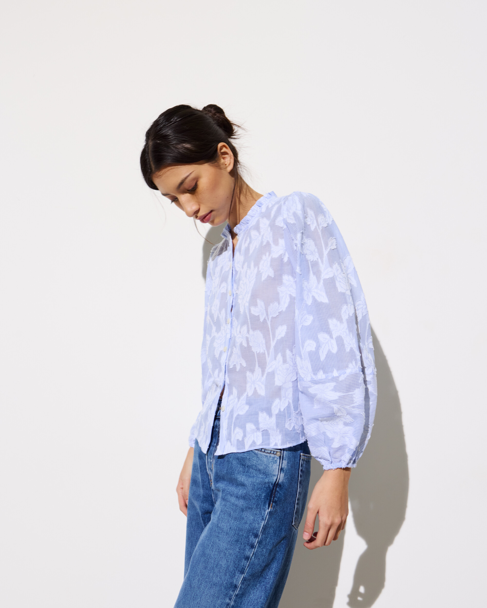 Light Blue Textured Floral Sheer Blouse