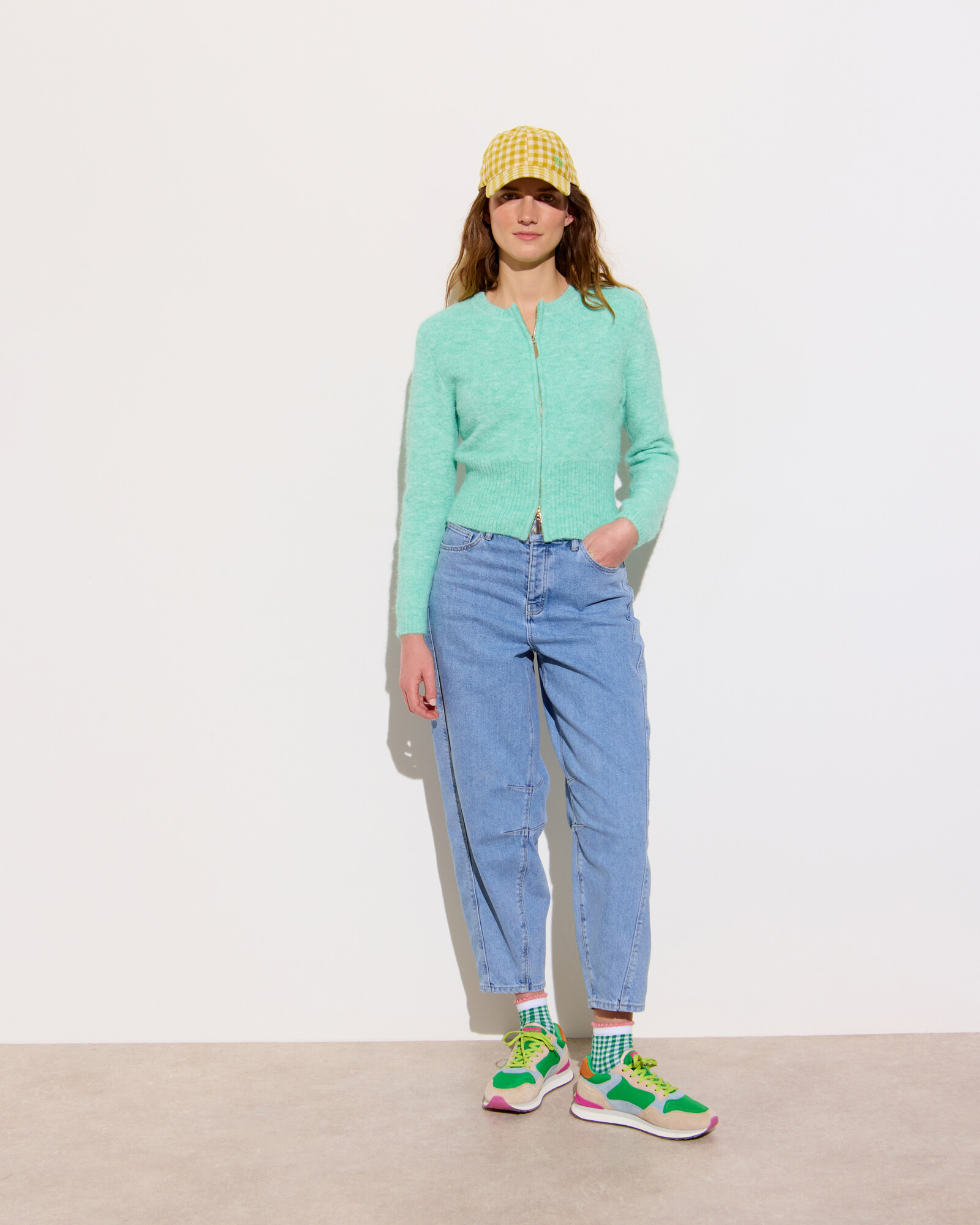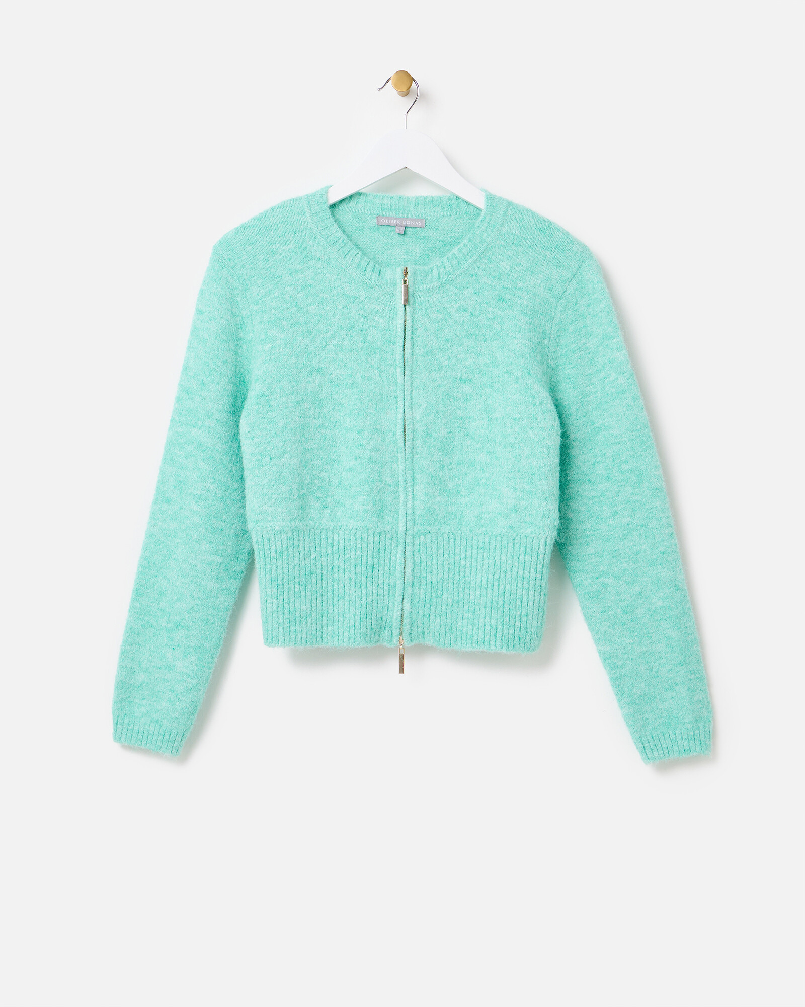 Mint Green Zip Through Knitted Cardigan