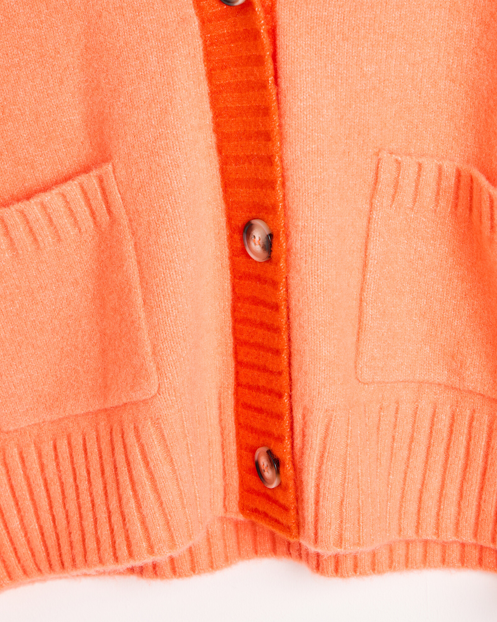 Orange Contrast Trim V-Neck Knitted Cardigan