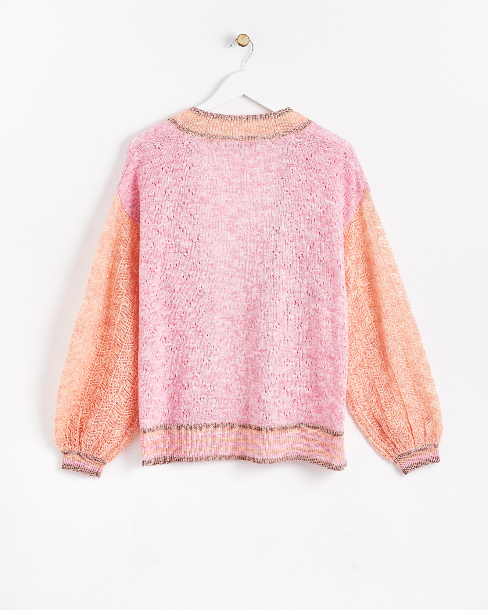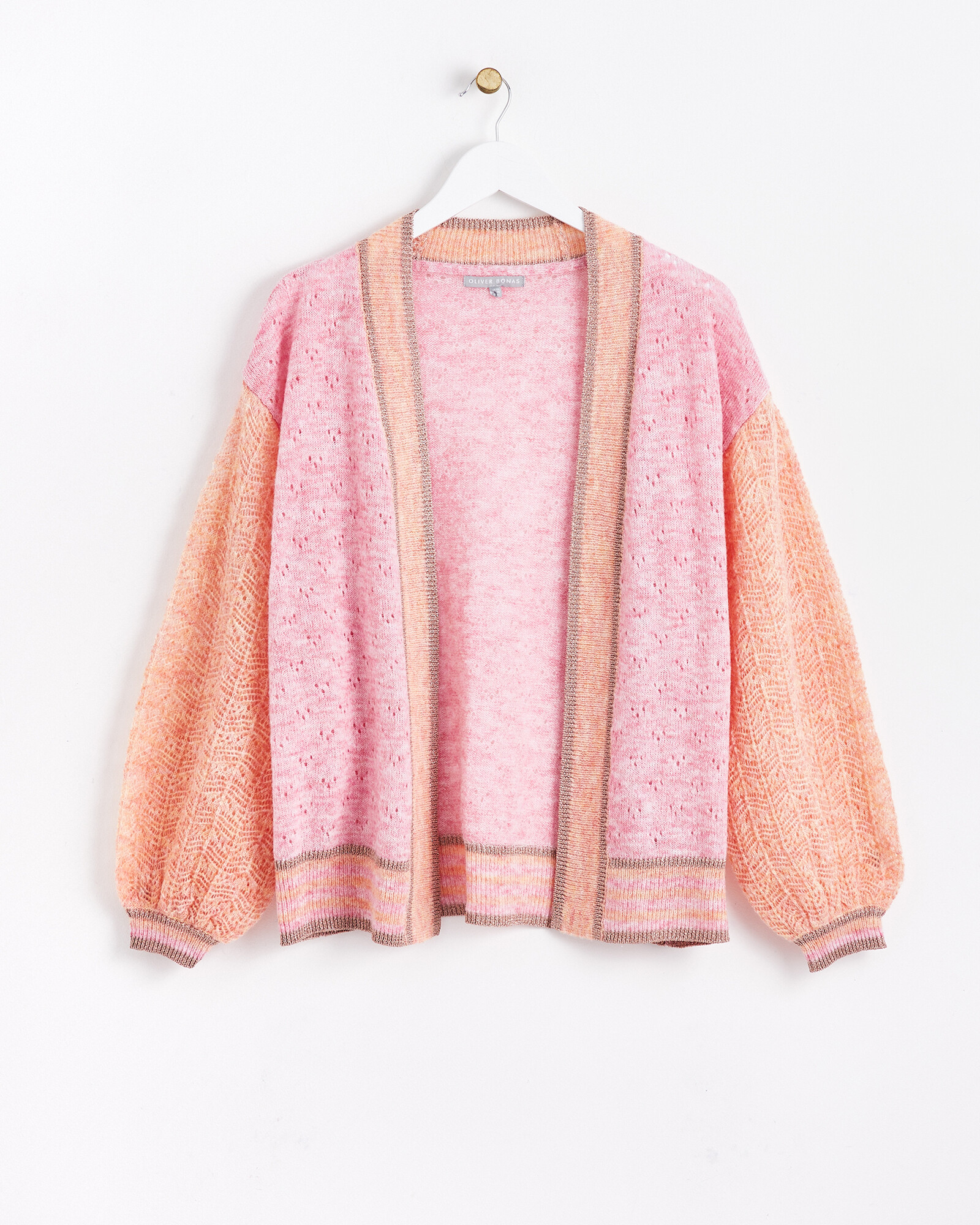 Home | Clothing | Cardigans | Pointelle Pink & Orange Knitted Cardigan