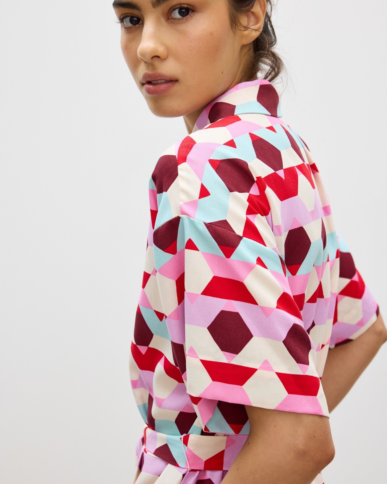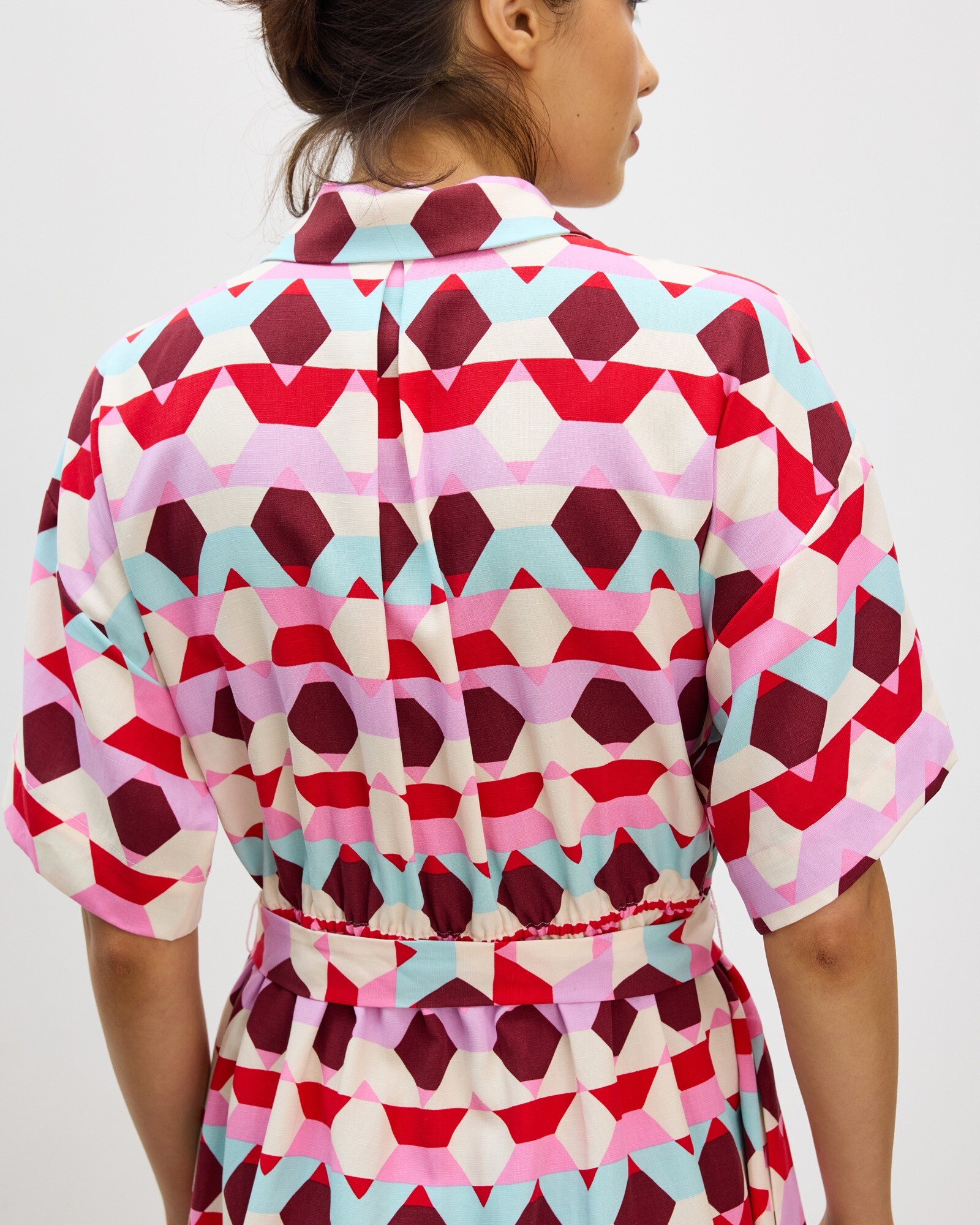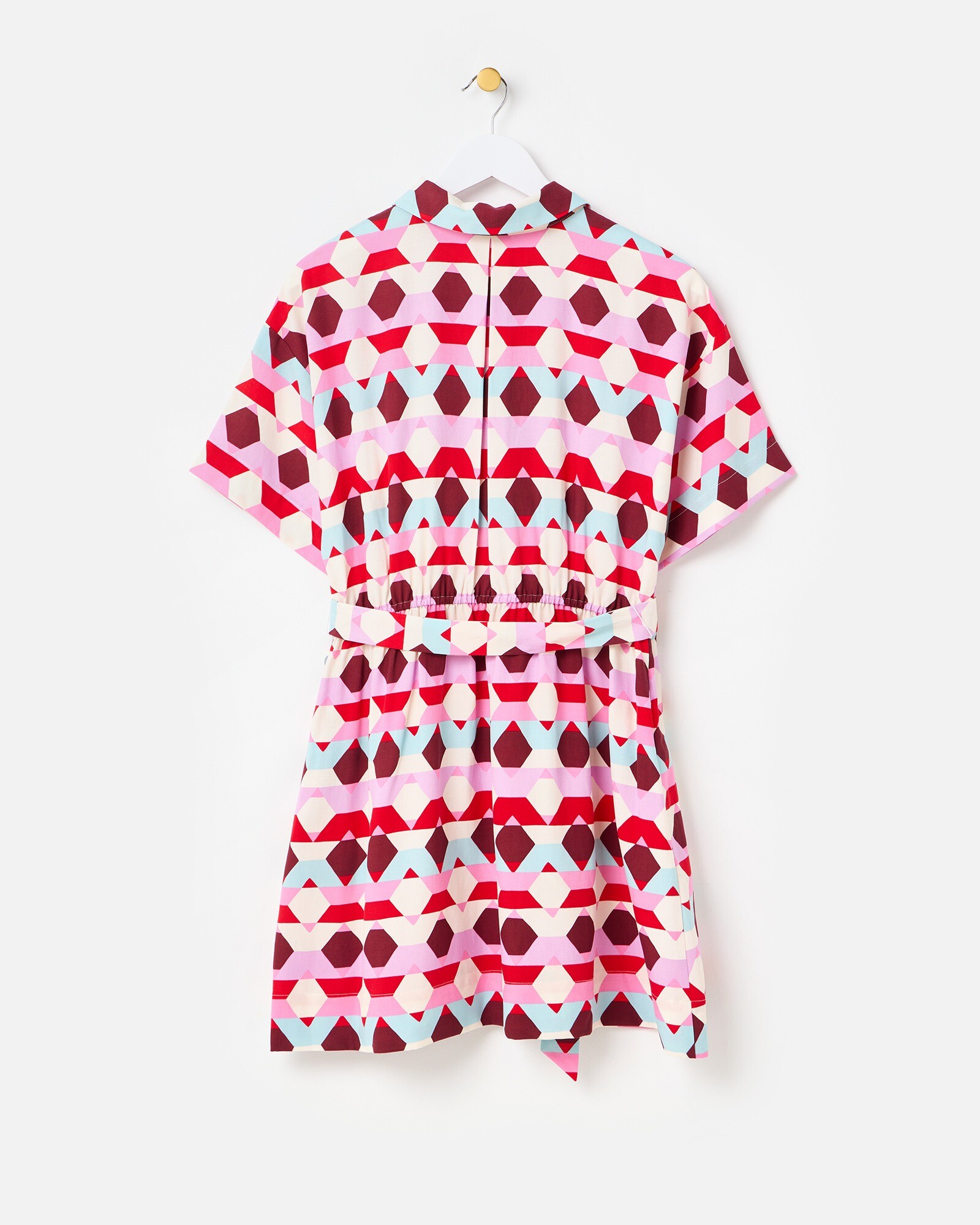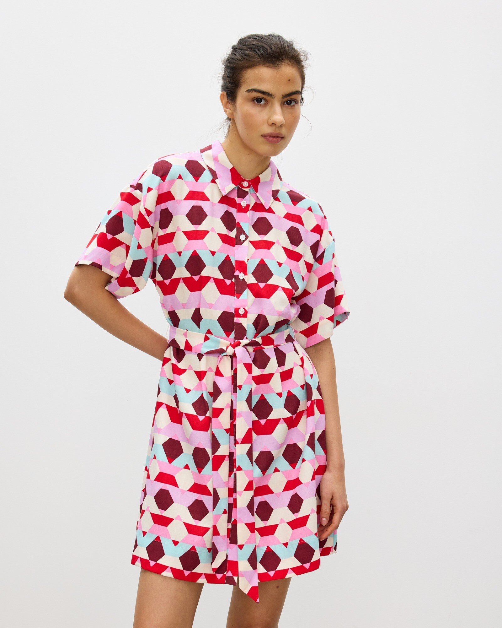 Red & Blue Geometric Mini Shirt Dress
