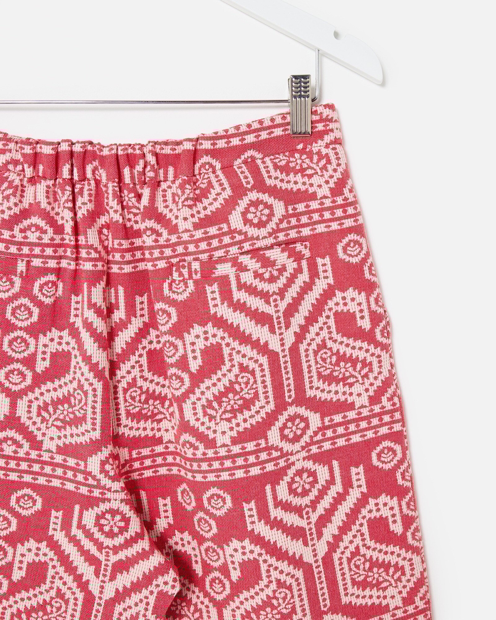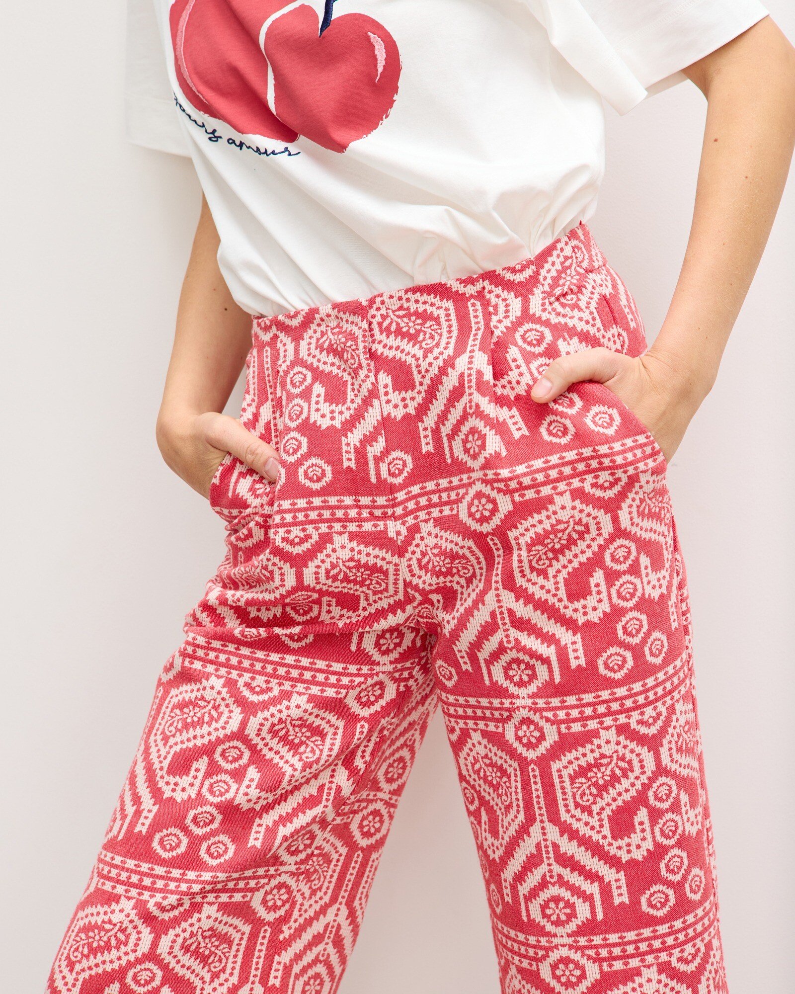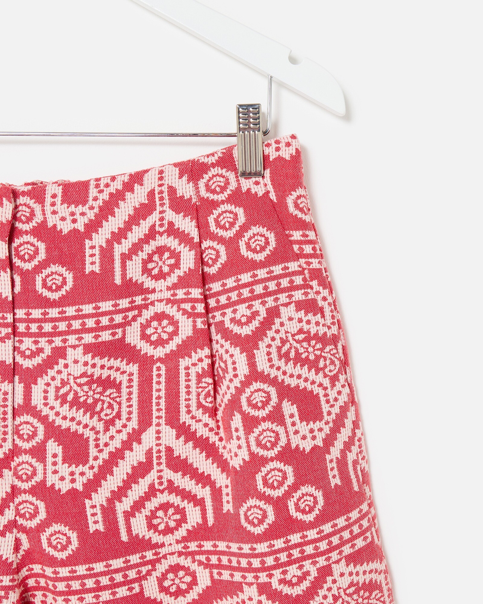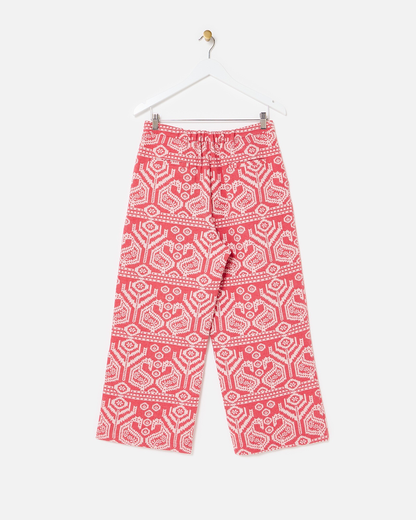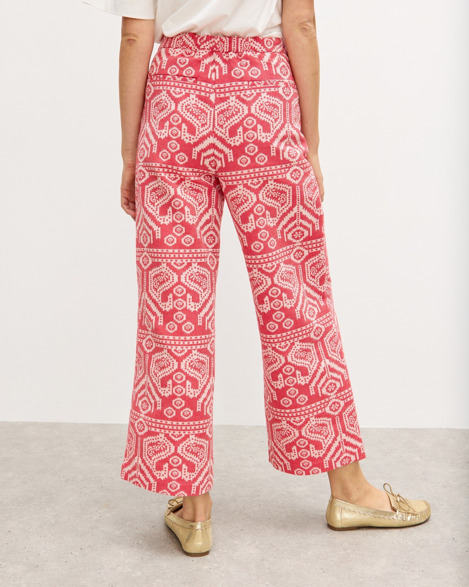 Red & Cream Jacquard Cropped Wide Leg Trousers