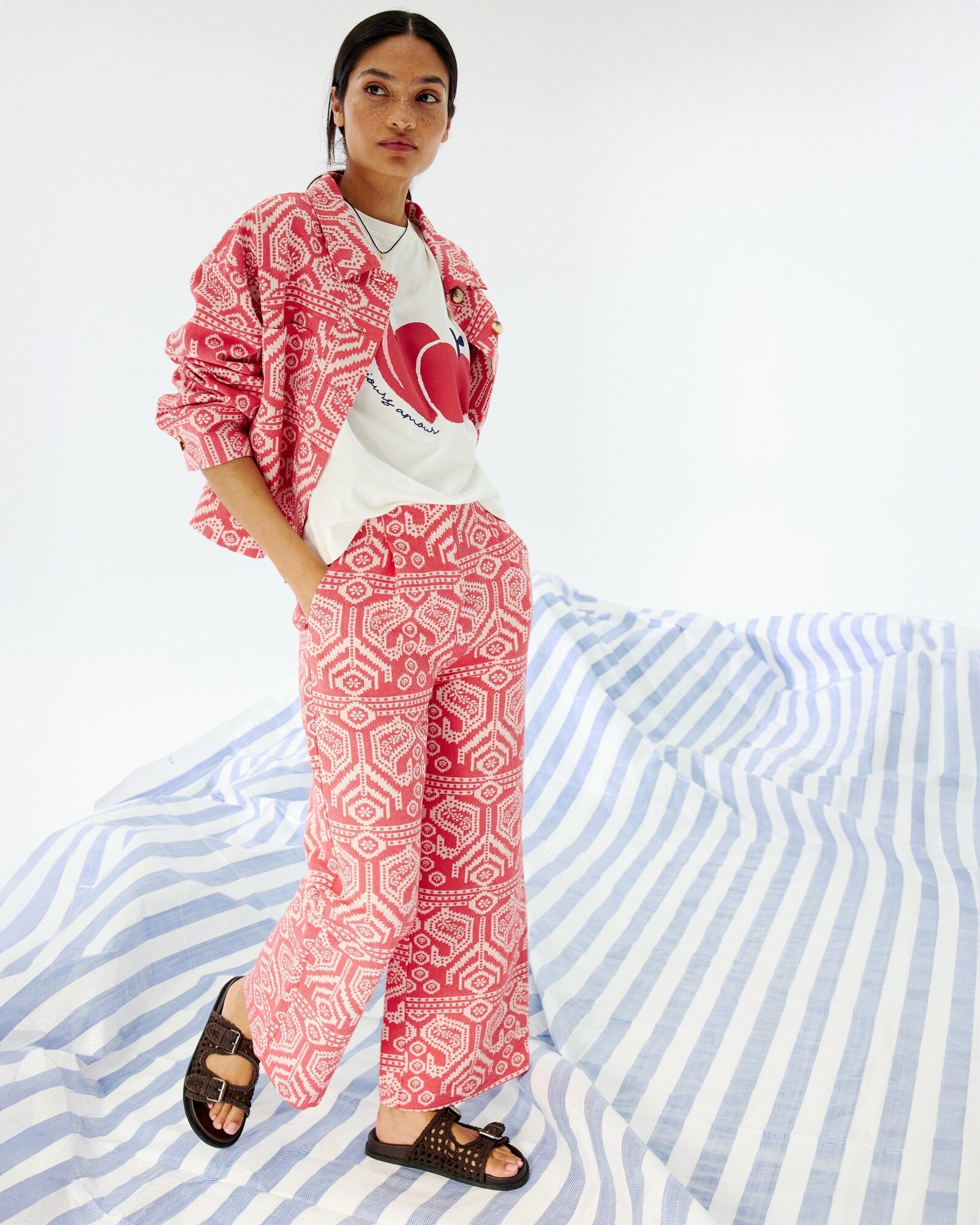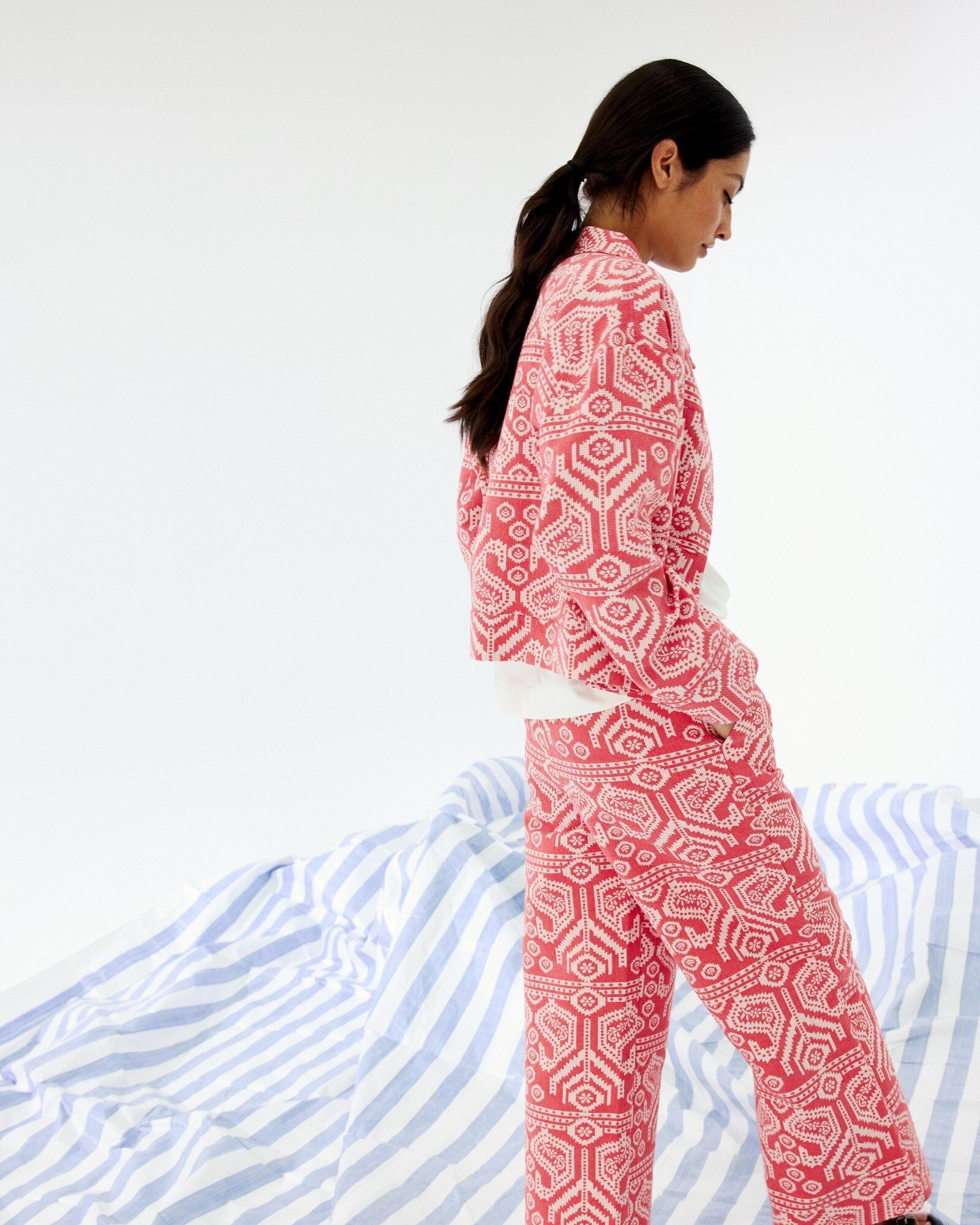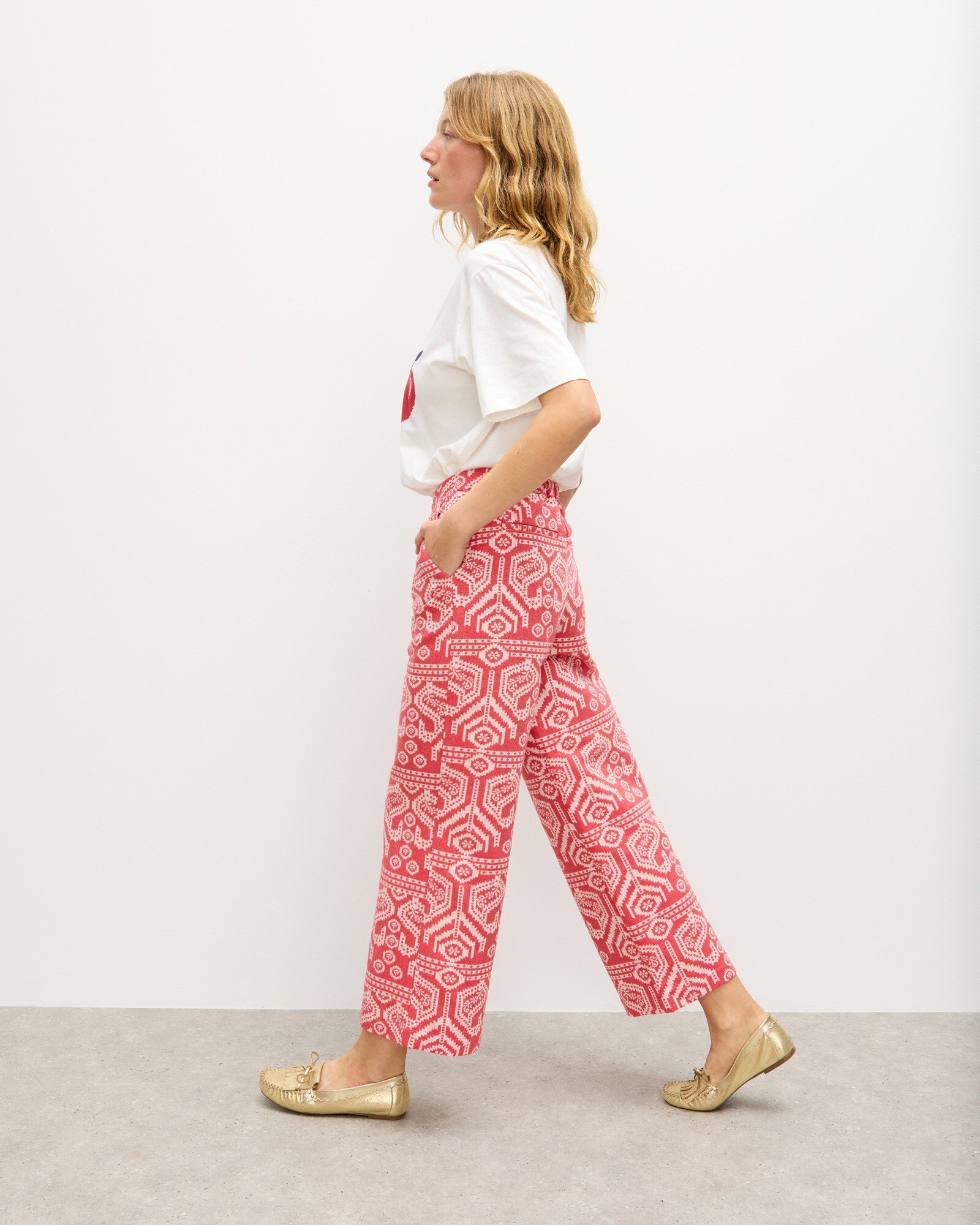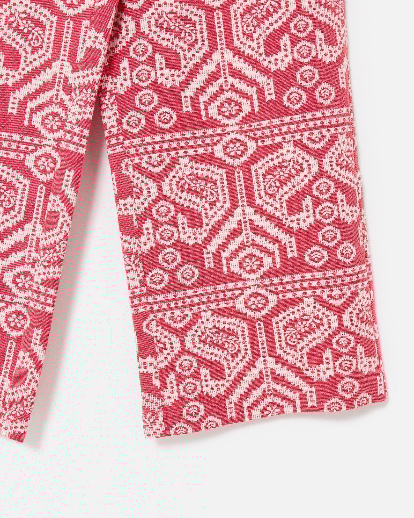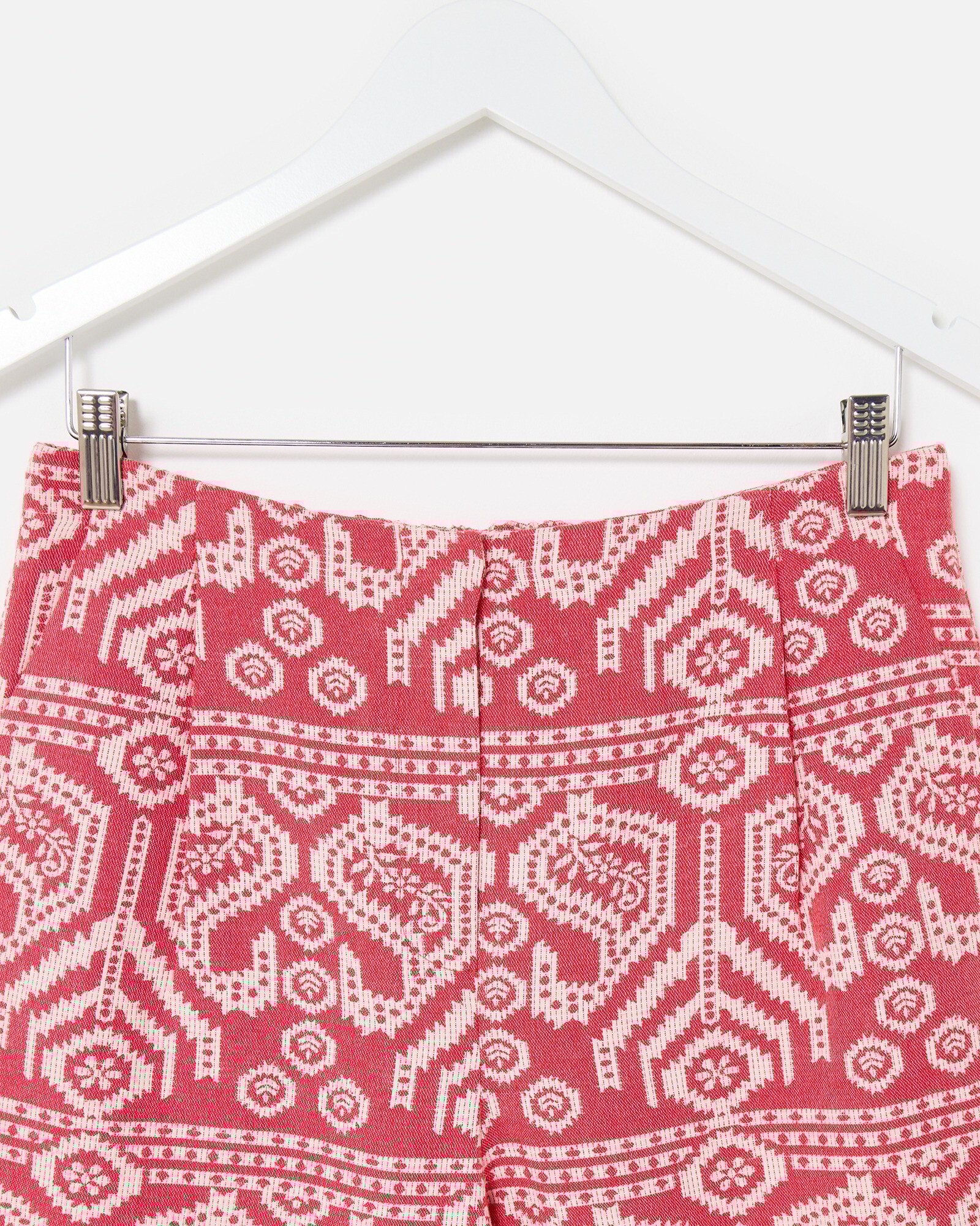Red & Cream Jacquard Cropped Wide Leg Trousers
