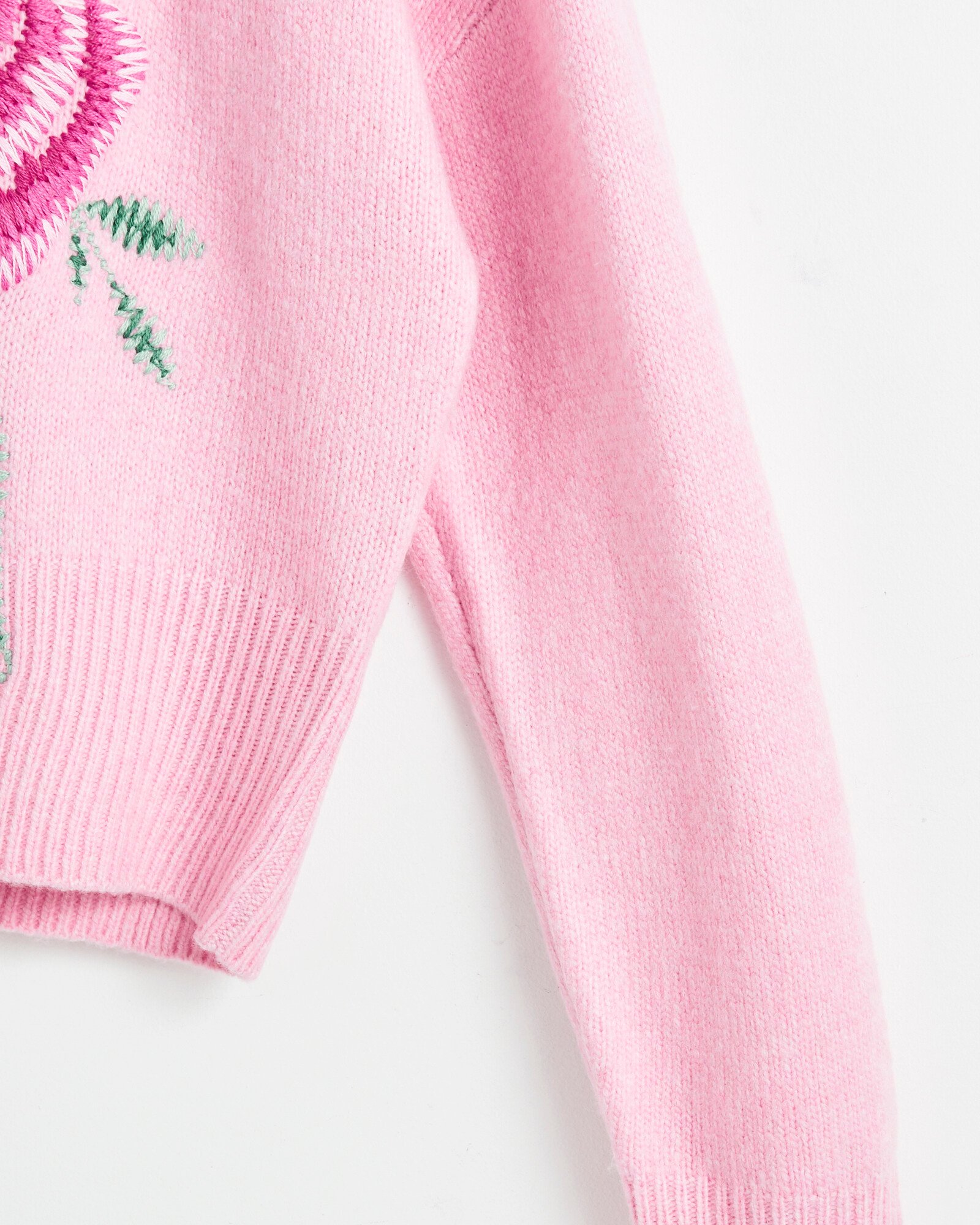 Home | Clothing | Jumpers | Rose Embroidered Pink Knitted Jumper
