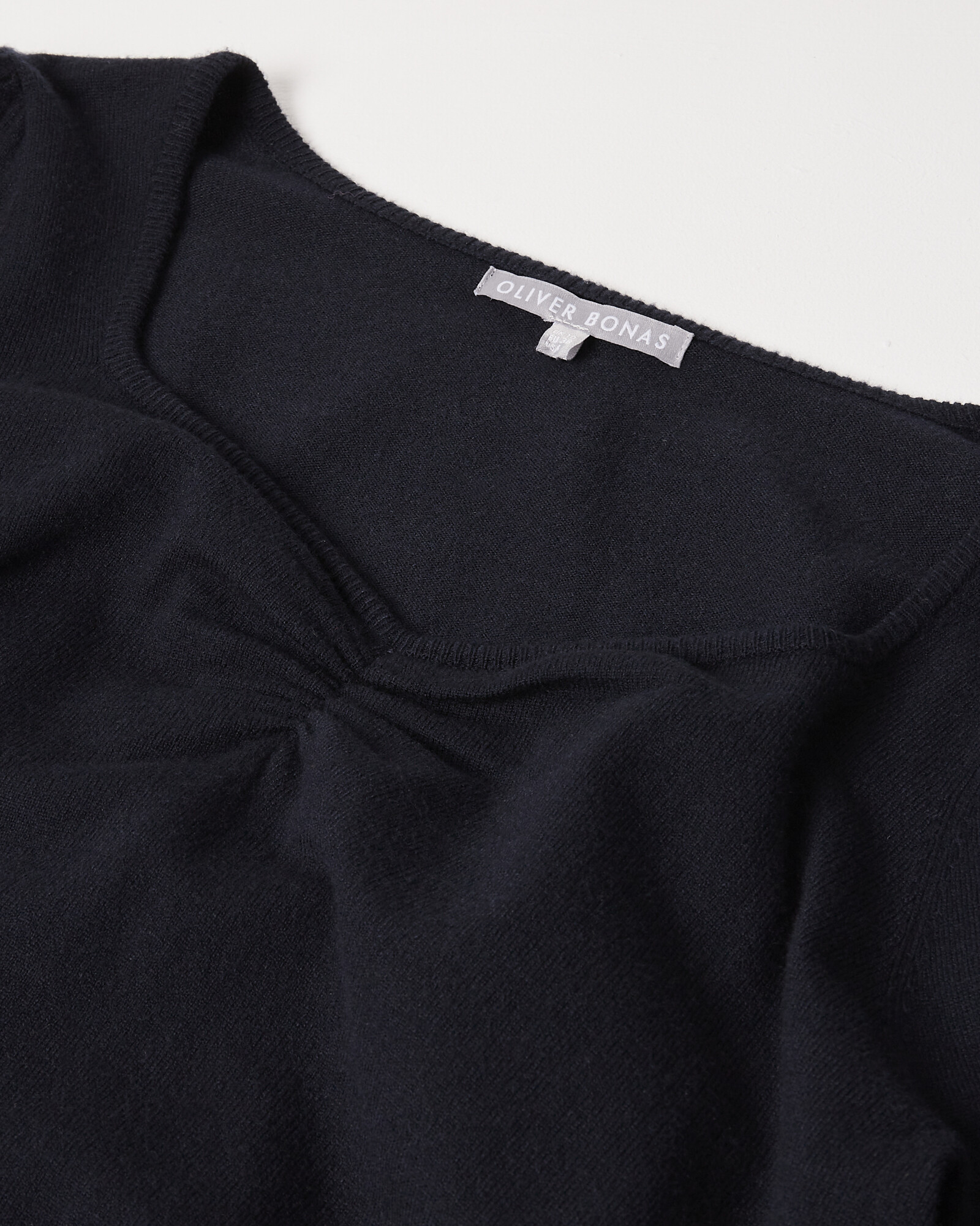 Style: JumperDesign: Navy blue knitFinish: Soft-touchFit: StraightRibbed trimsGathered detailing