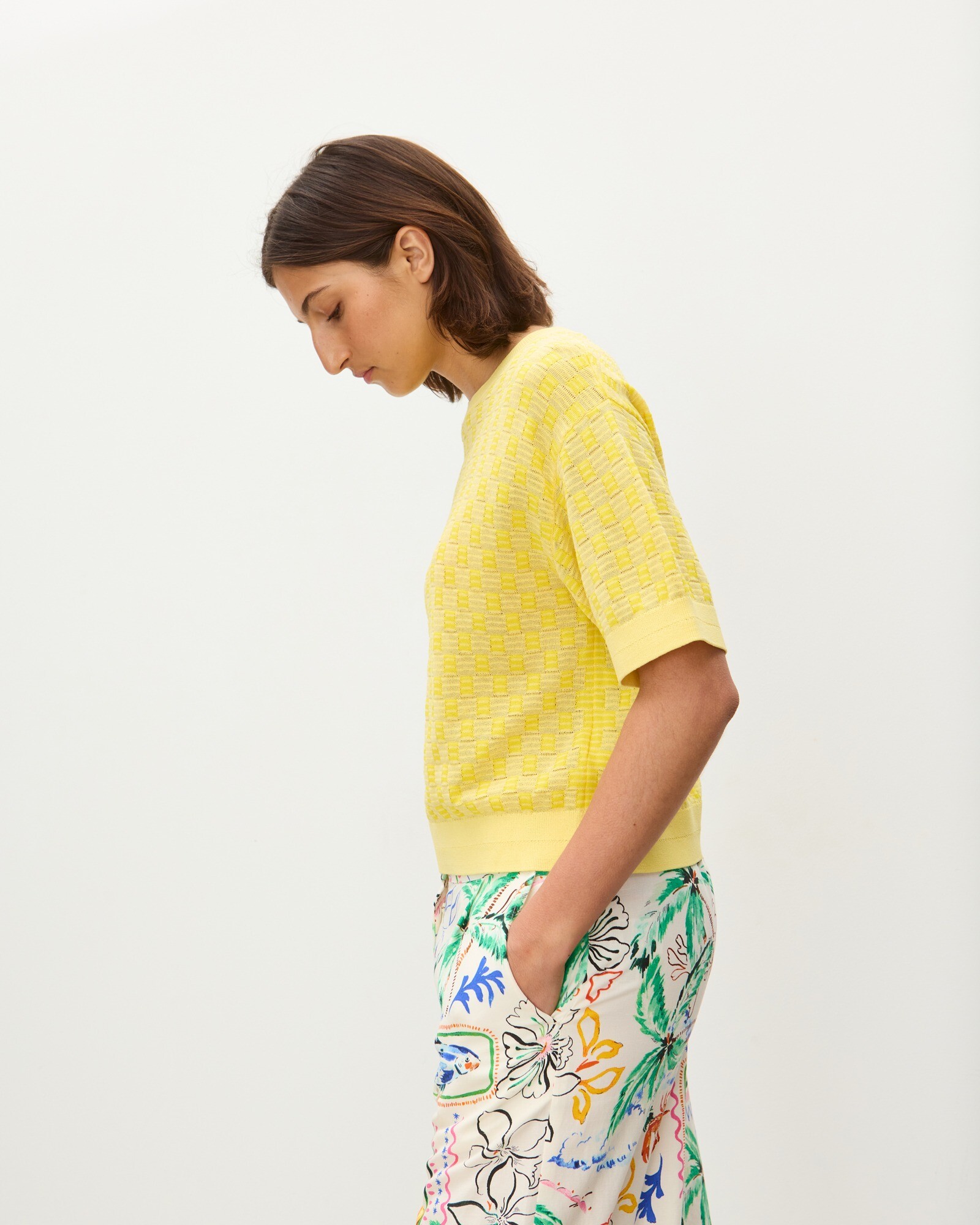 Yellow Chequerboard Knitted T-Shirt
