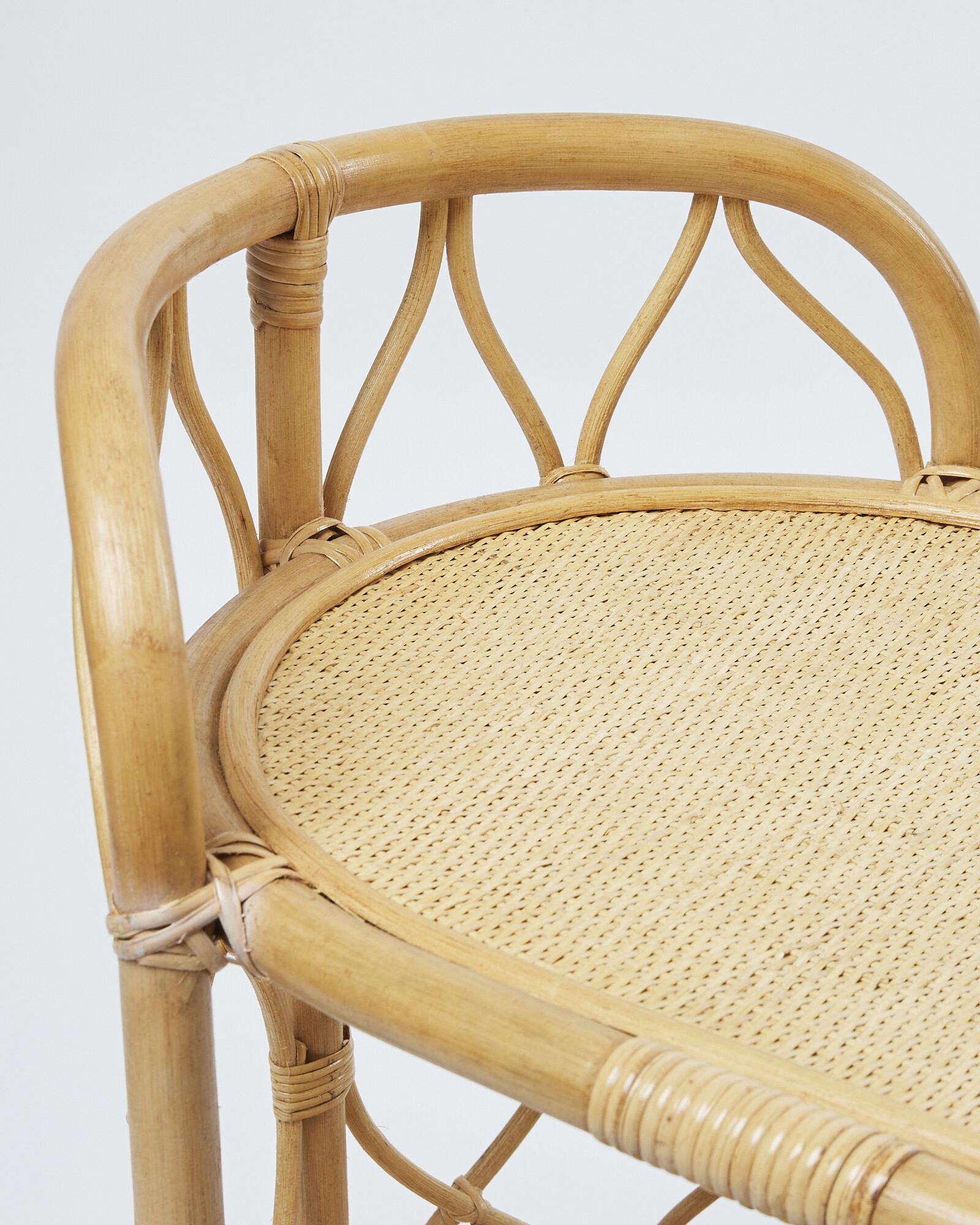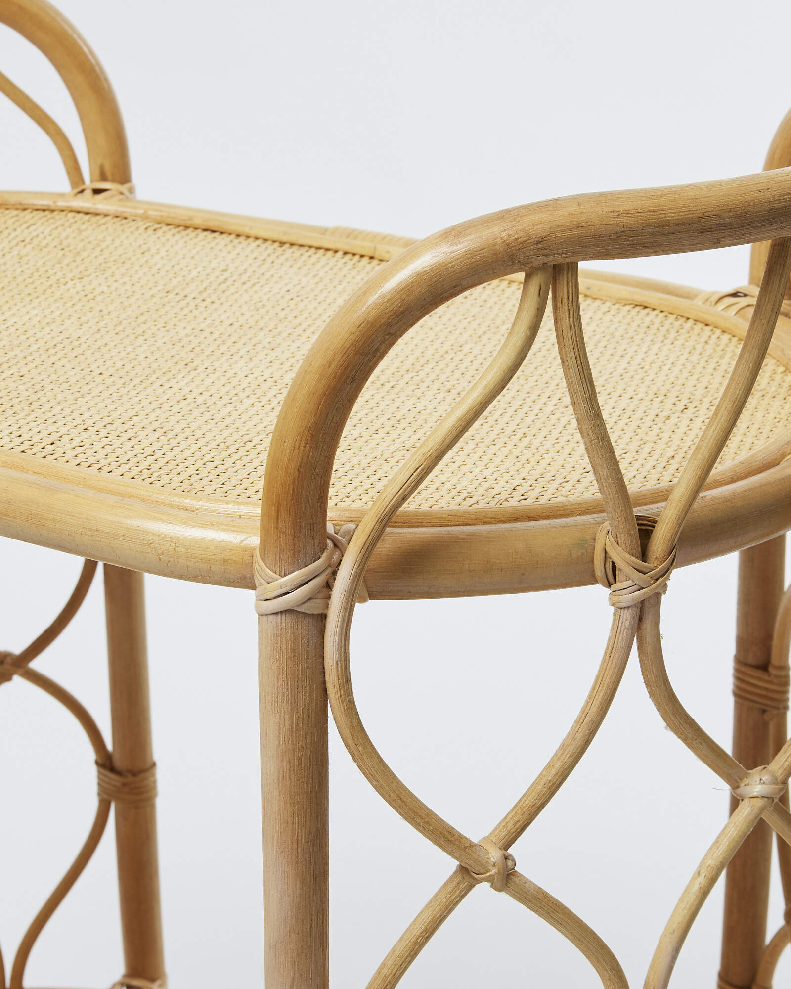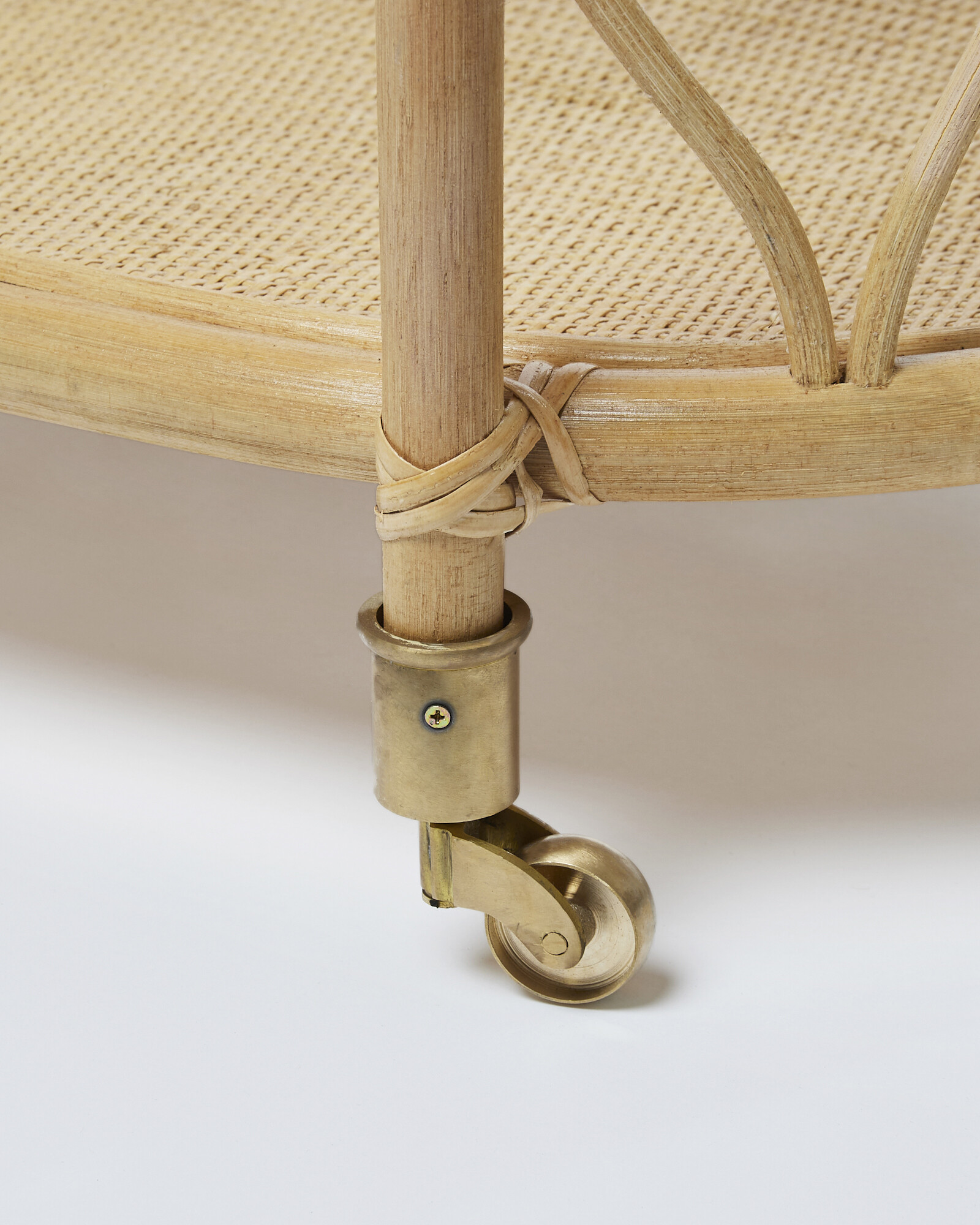 Our Bali collection pairs natural rattan weaving with lightly-stained bamboo wood, for vintage-inspired pieces that will create a bohemian statement in your home. The Bali Natural Rattan Drinks Trolley features a curved silhouette with two woven rattan shelves and finished with smooth bamboo lashing. Completed with gold-toned wheels, you'll be ready to wow your guests at your next dinner party.