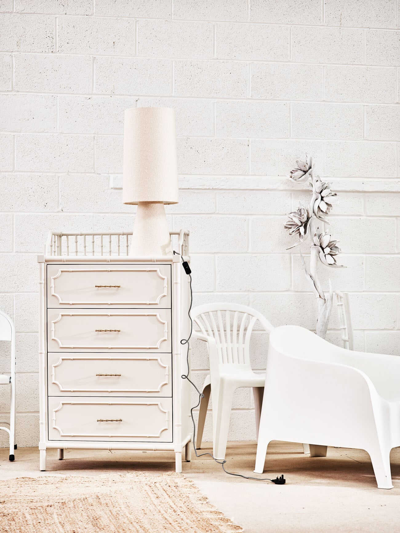 Bambou Cream Mahogany Tallboy Chest of Drawers