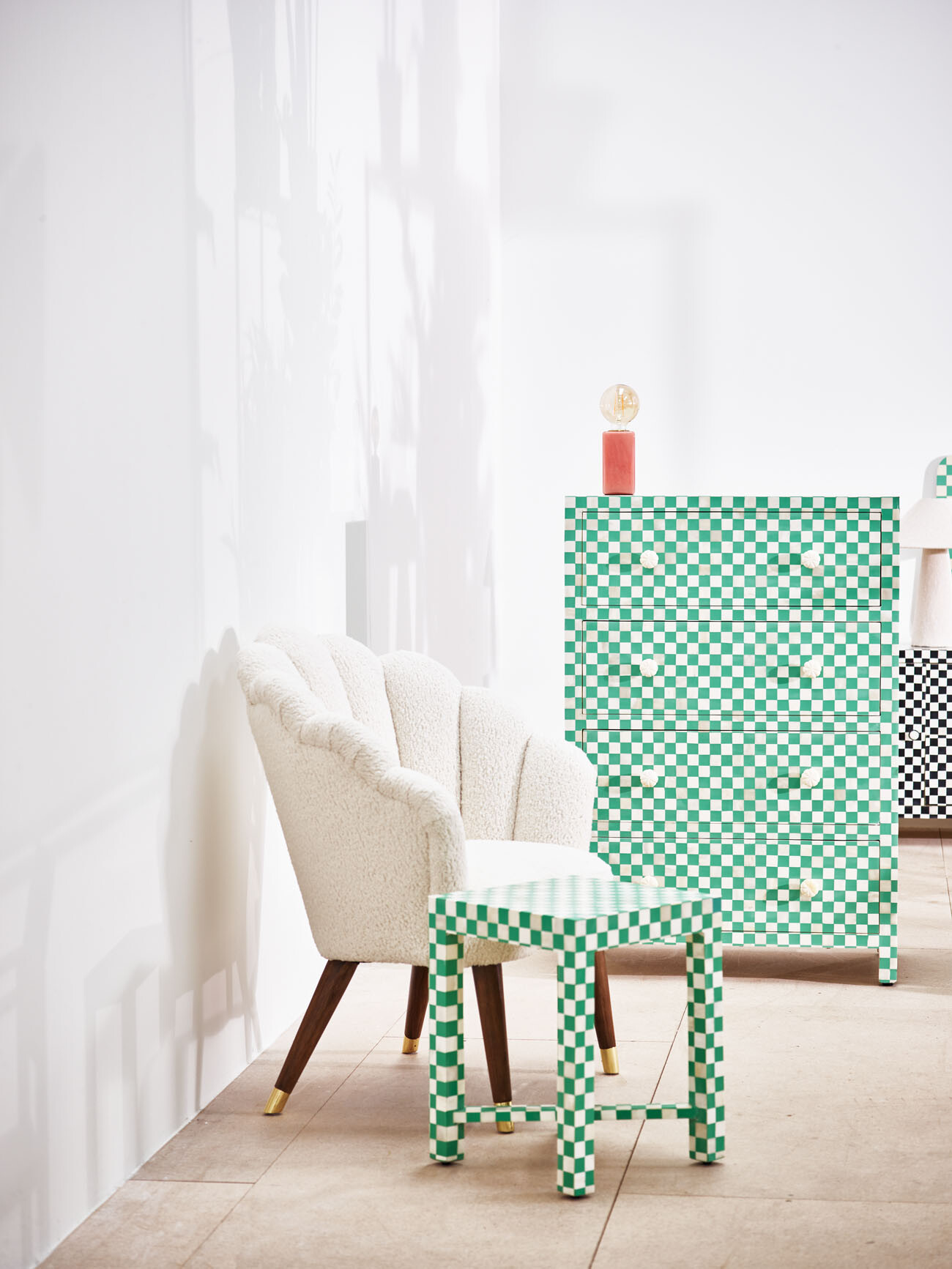 Chequerboard Green Bone & Resin Tallboy Chest of Drawers