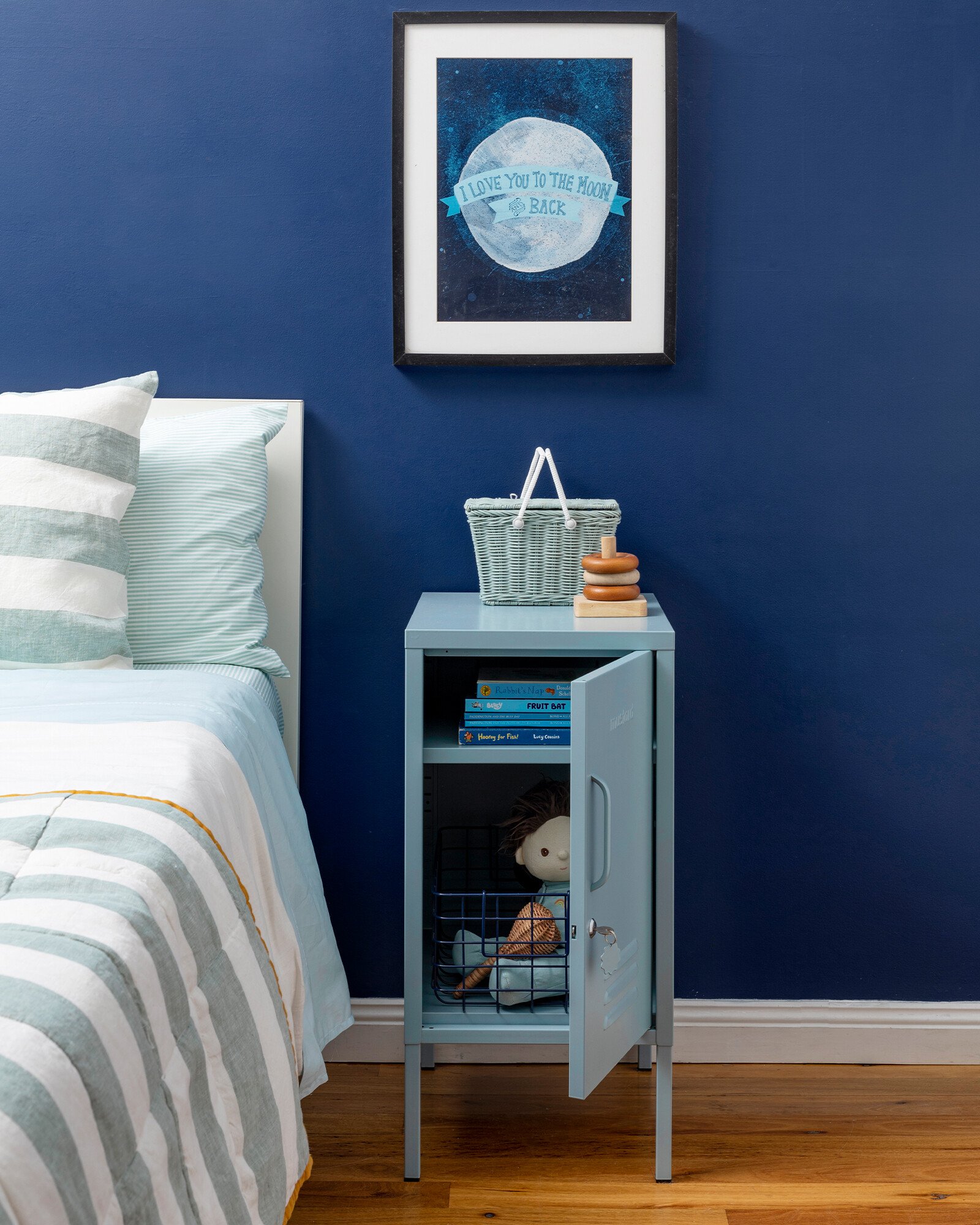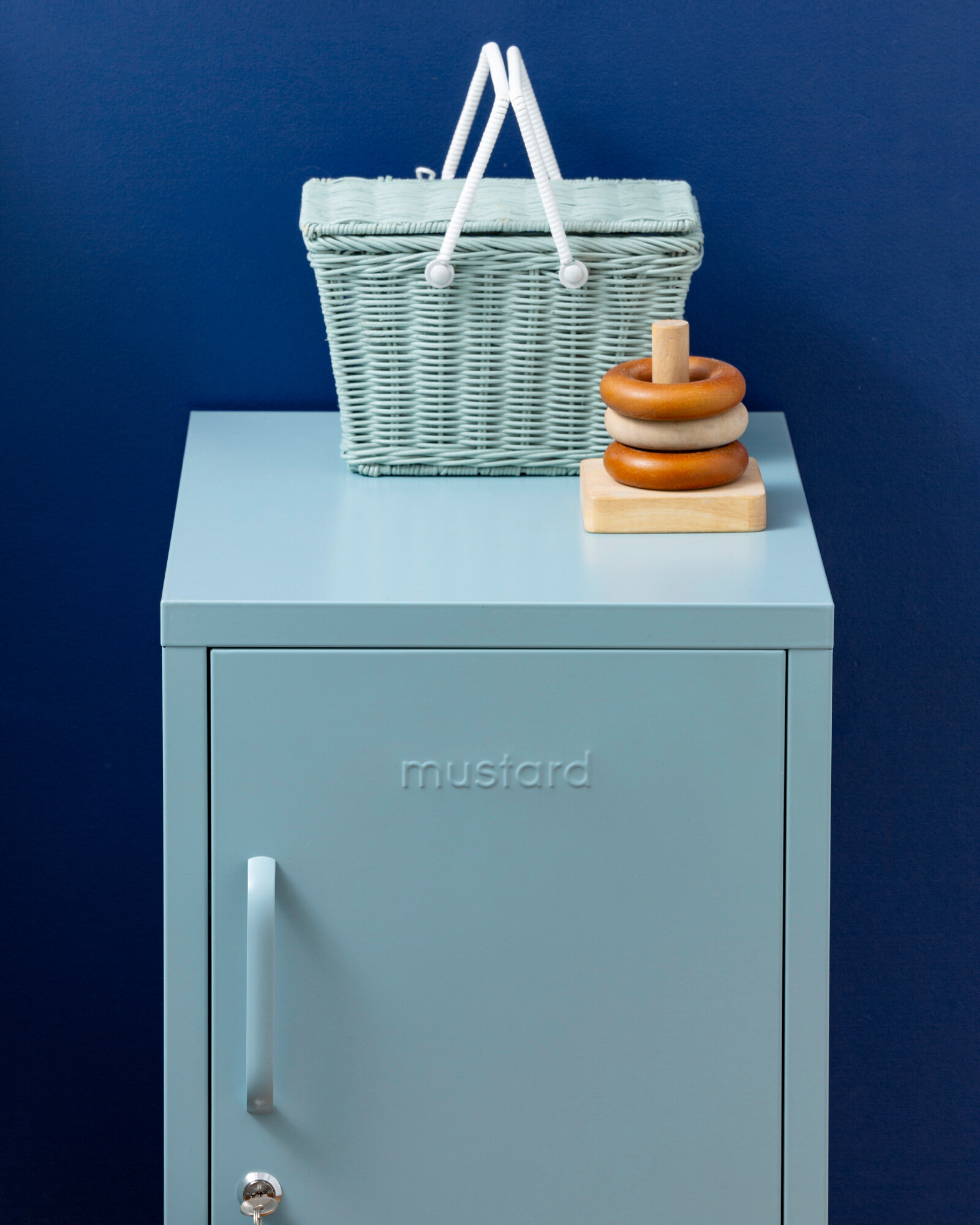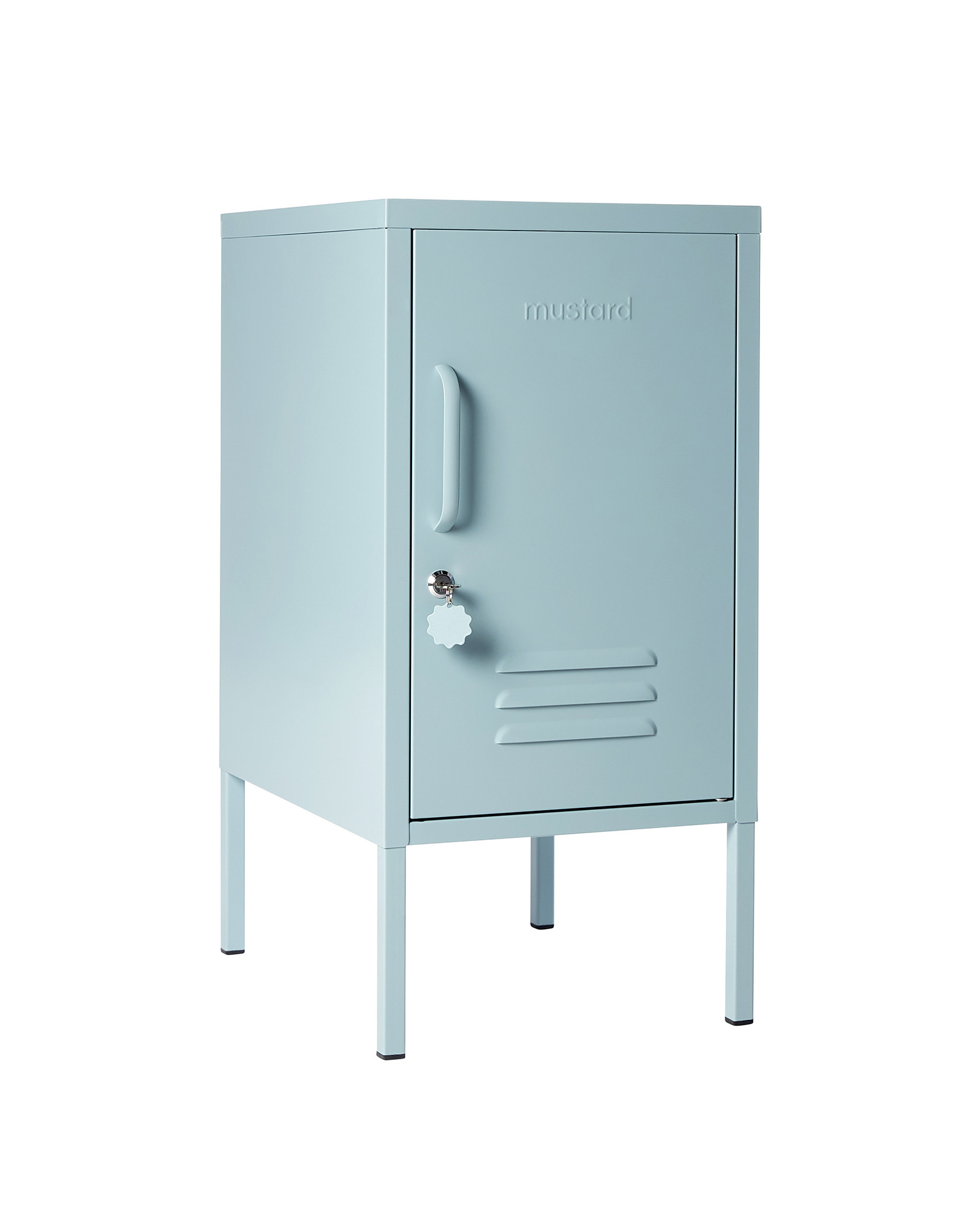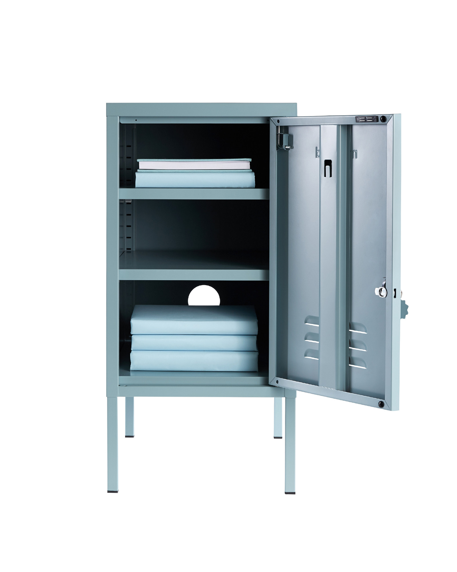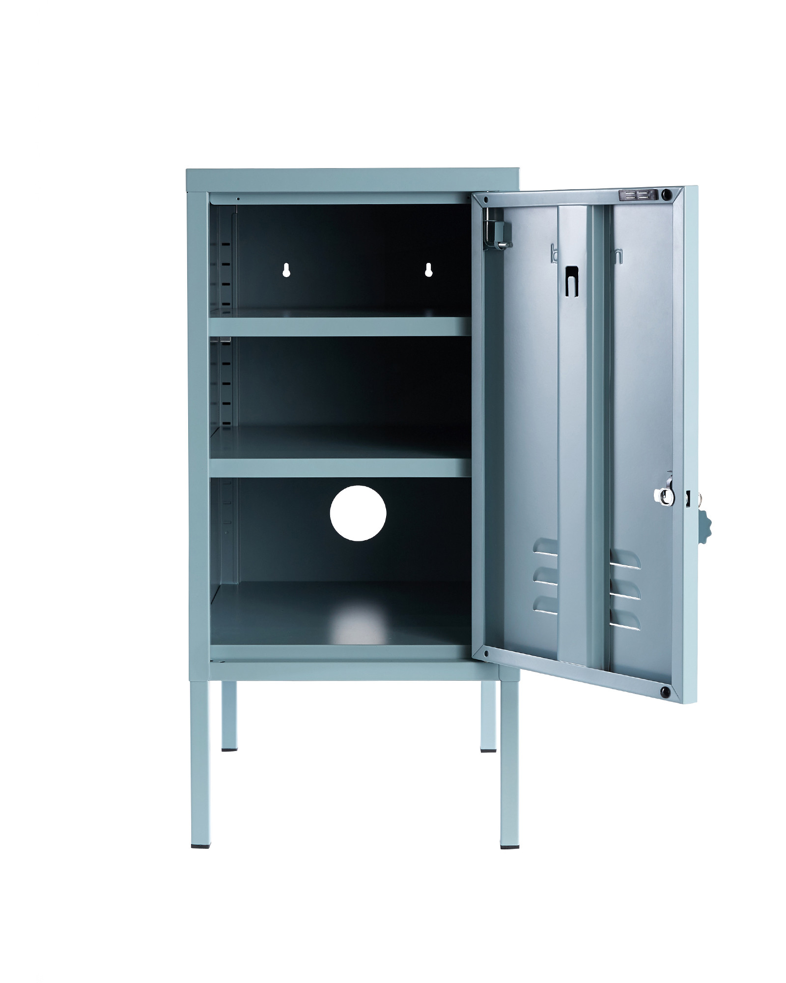Add an urban industrial vibe to your living space with the Ocean Blue Shorty Locker, a storage solution with a difference. Made from steel, this little sturdy locker has two adjustable shelves, one hook and a cable hole on the inside, providing efficient but eye-catching storage space for accessories, magazines, books, and much more. Use as a bedside table, or as a handy side table for slim spaces.