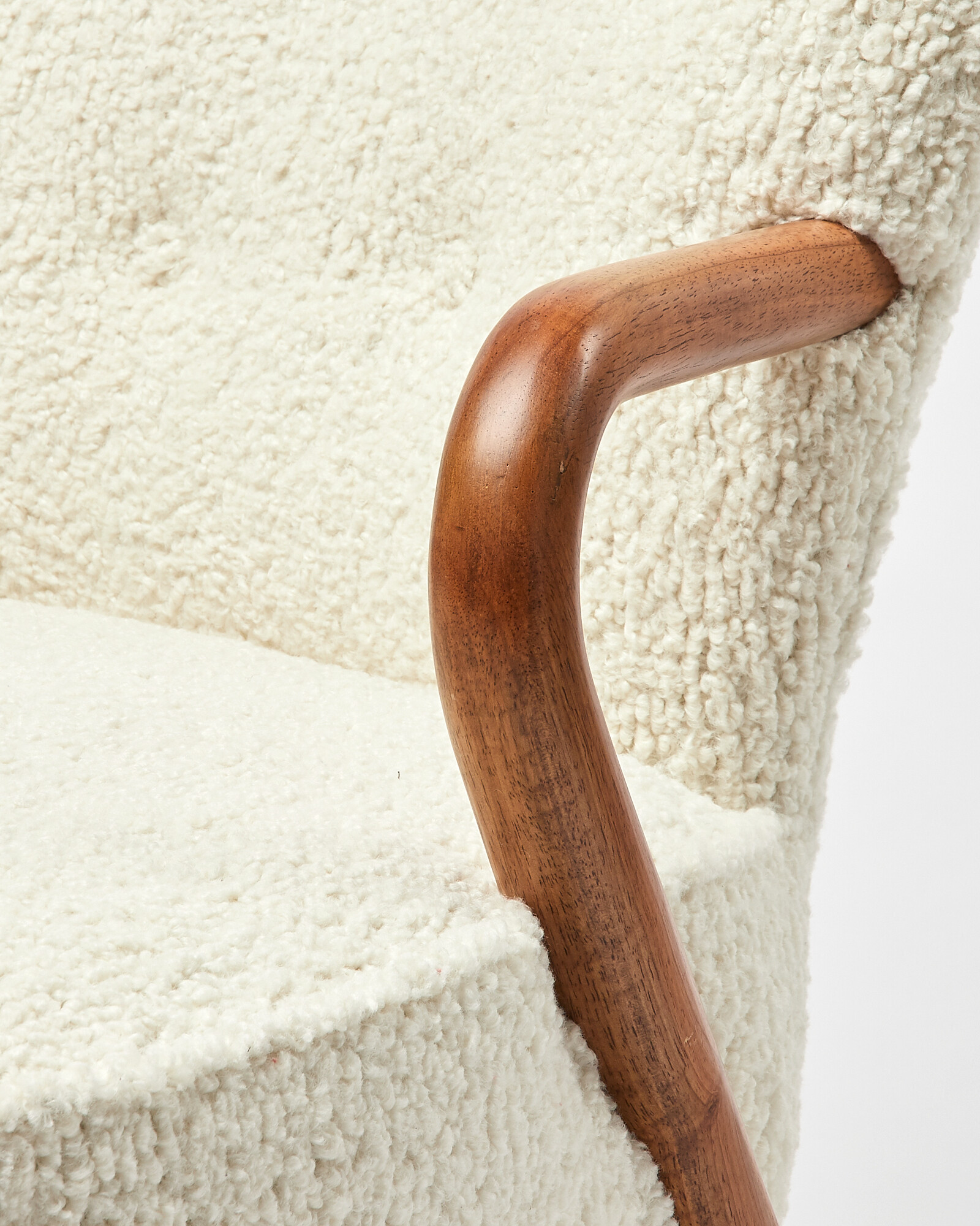 Whether placed in the bedroom or the living room, this boucle armchair is great for curling up in with a book and unwinding.