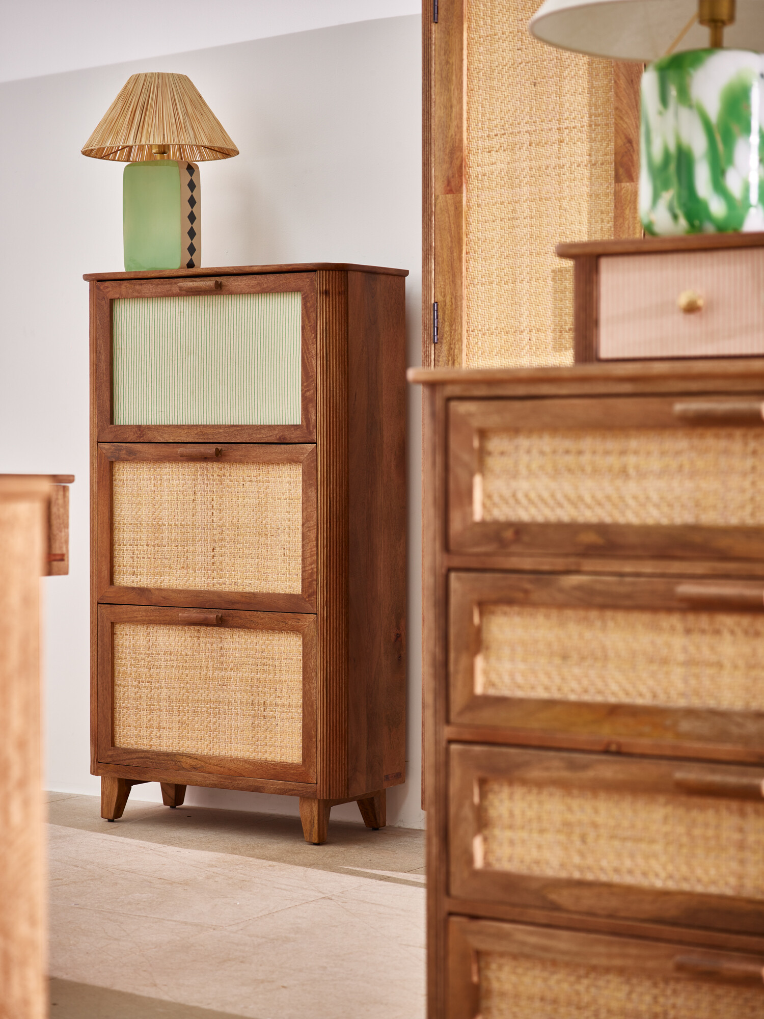 Tinta Green Stripe Mango Wood Shoe Cabinet